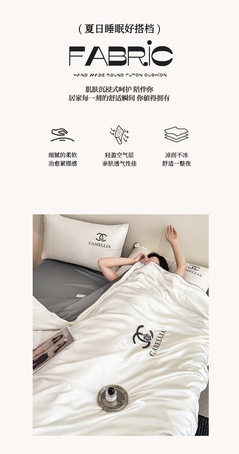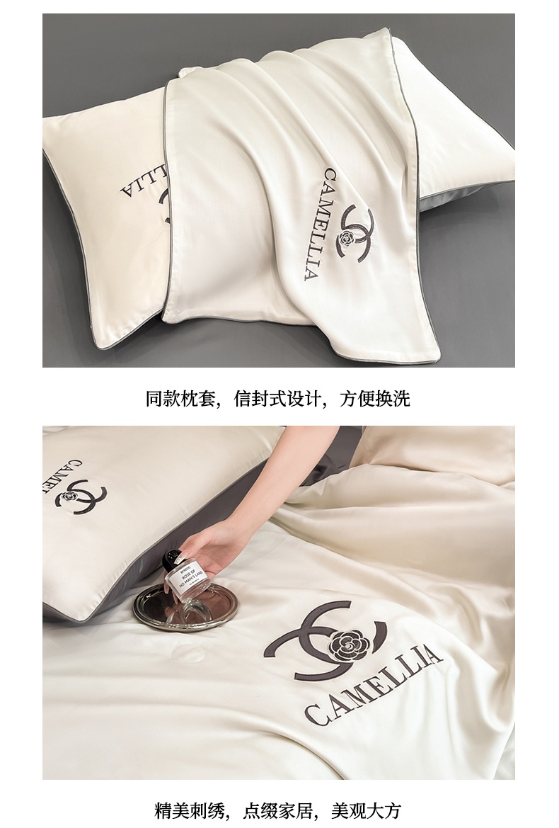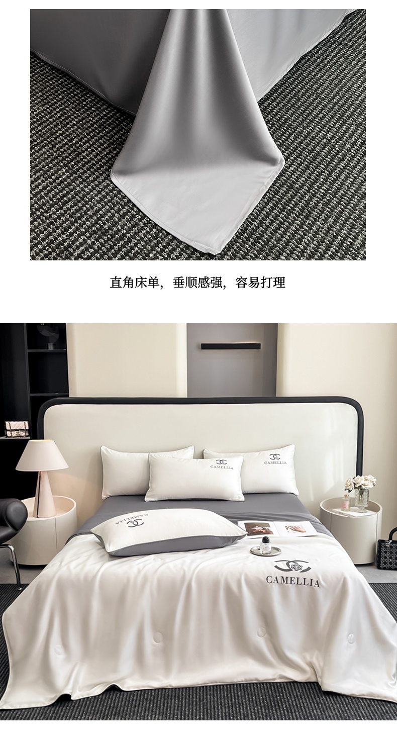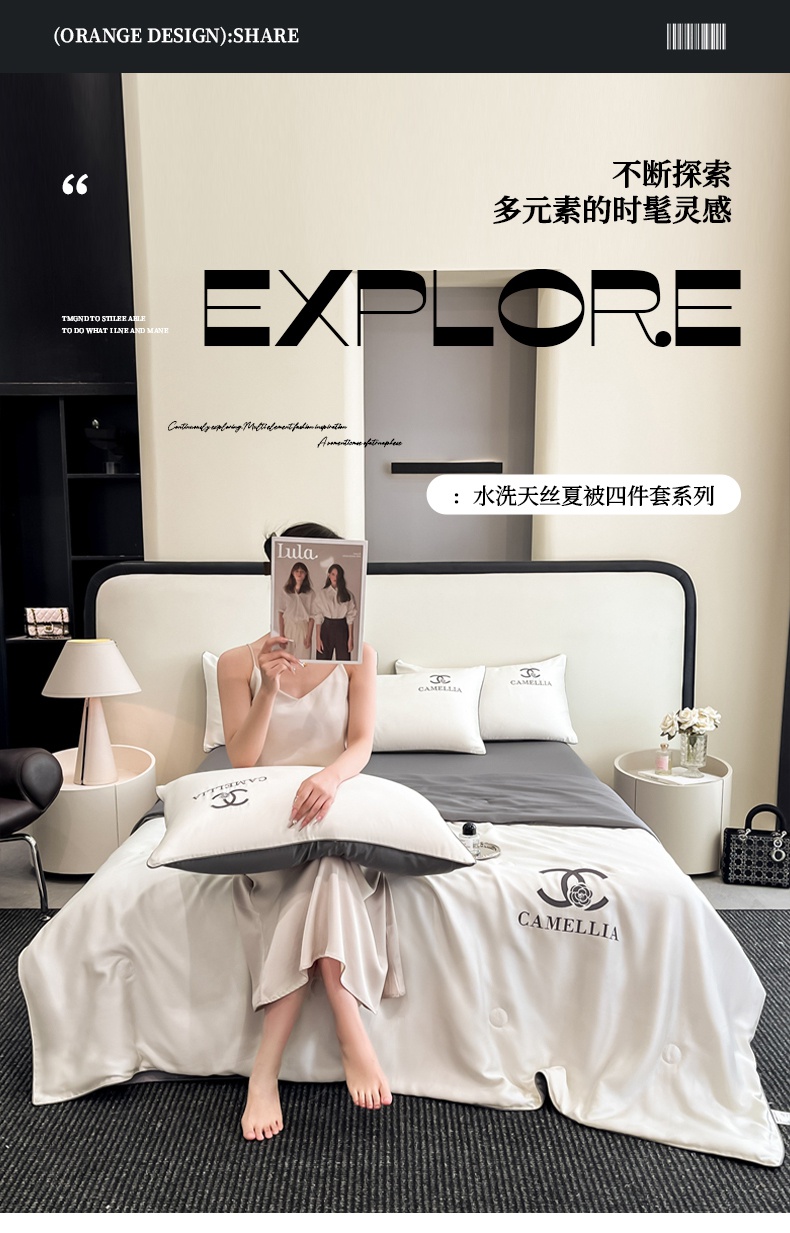 • 91家纺网 家纺一手货源 找家纺 利欧 2025新款茶花水洗天丝夏被四件套 茶花-米黄+摩卡灰