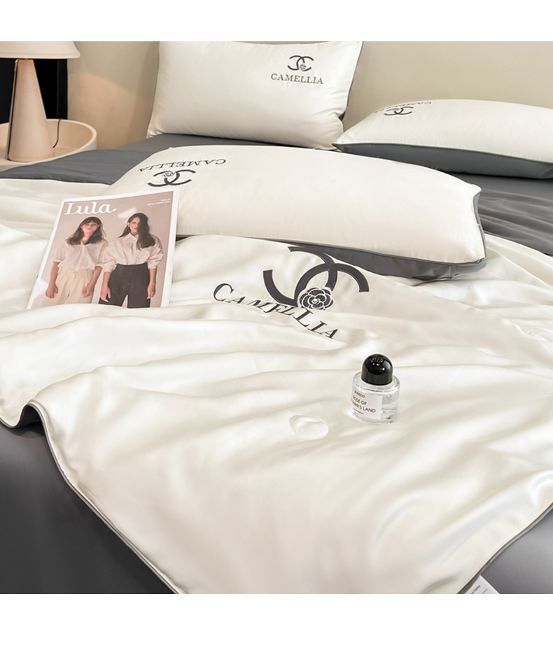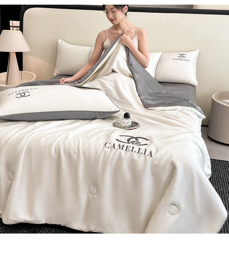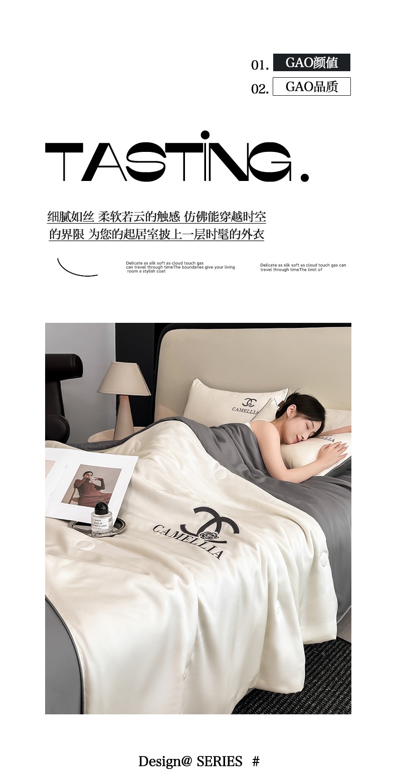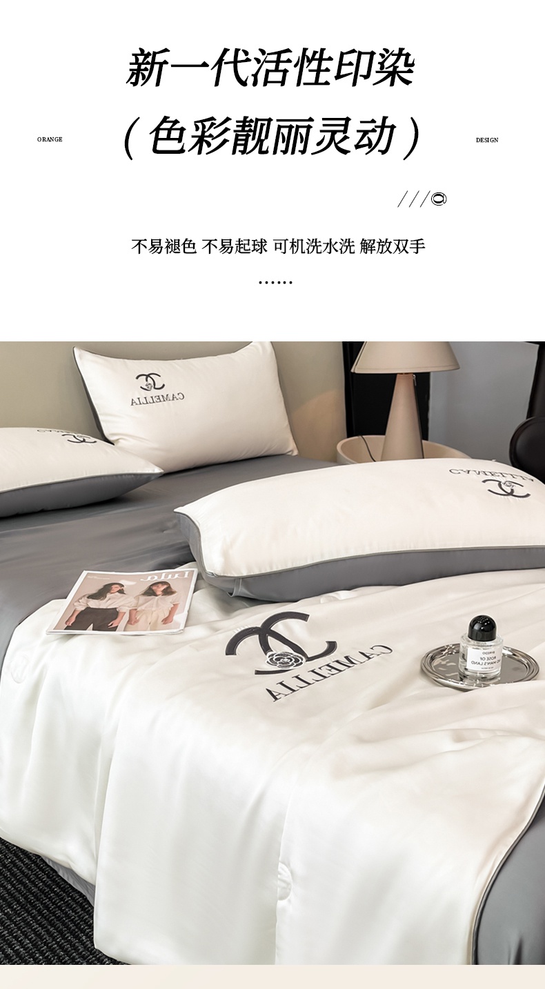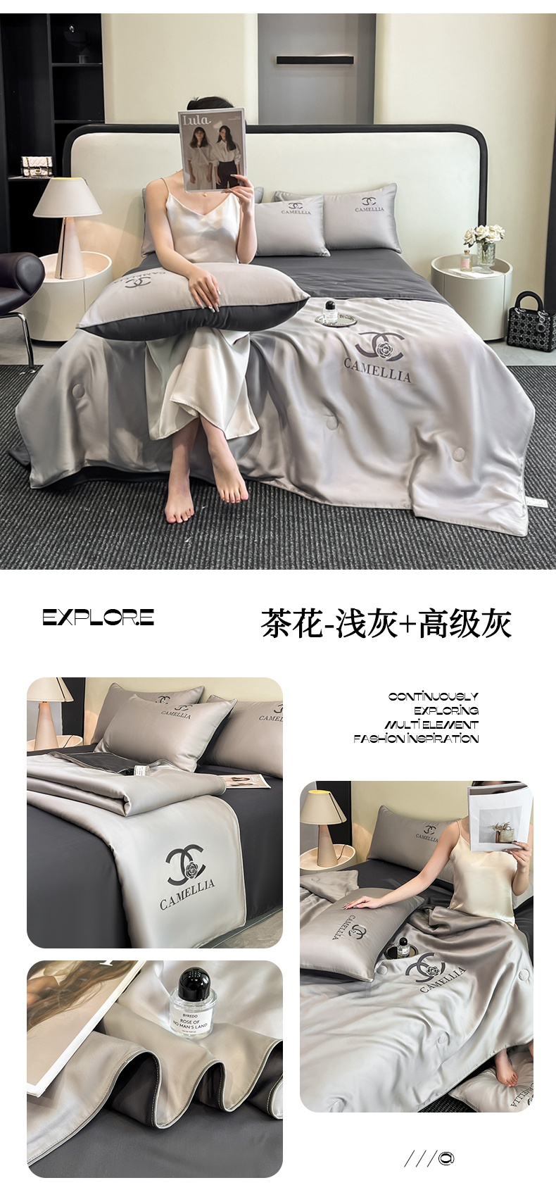 • 91家纺网 家纺一手货源 找家纺 利欧 2025新款茶花水洗天丝夏被四件套 茶花-米黄+摩卡灰