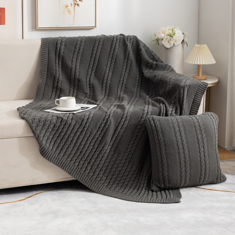 商品名称:肖恩毯业 2025新款鹿毛绒针织毯纯色素色螺纹镂空苏头北欧毛毯复古沙发毯休闲毯子 中灰色