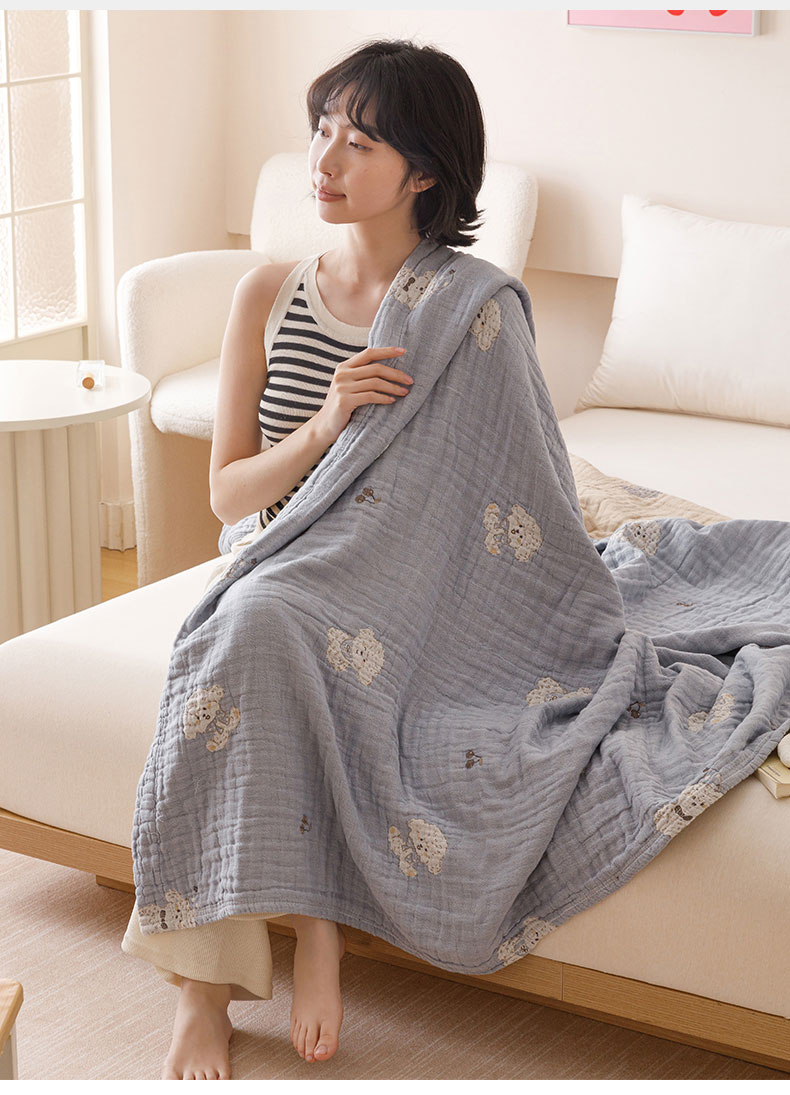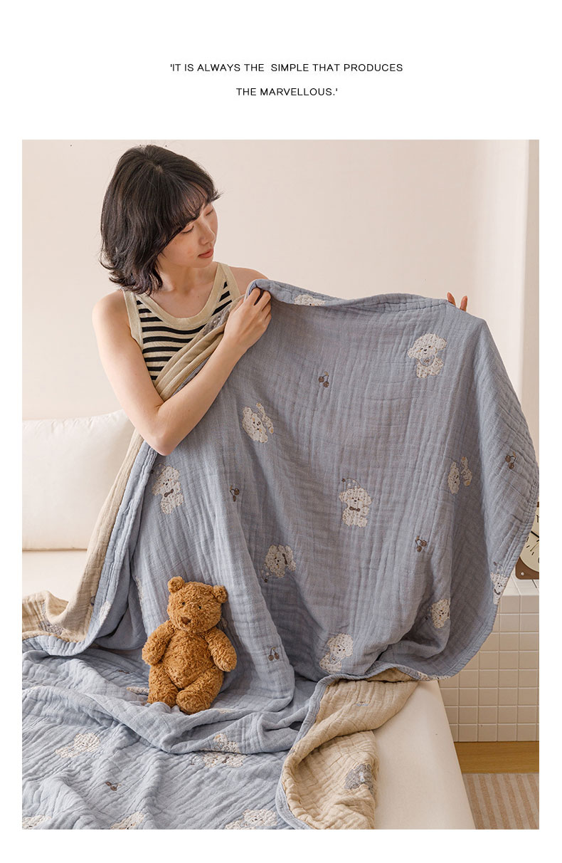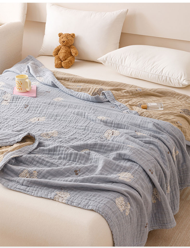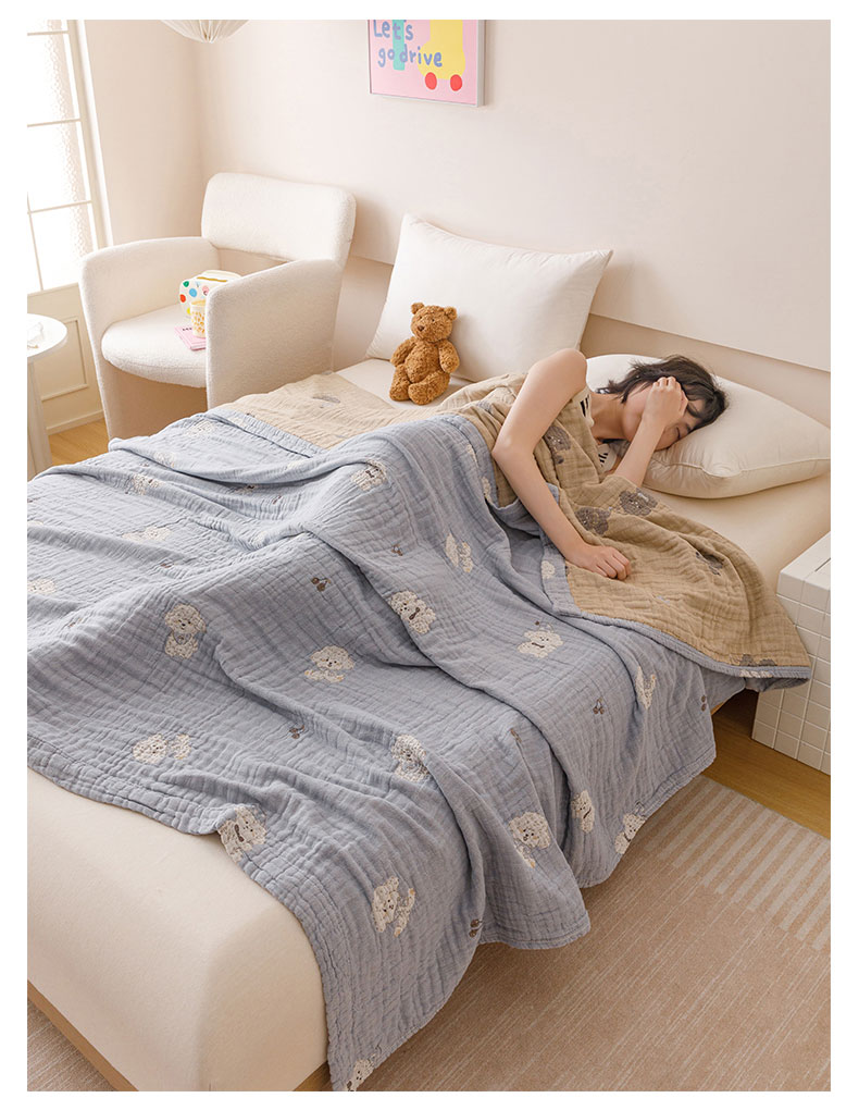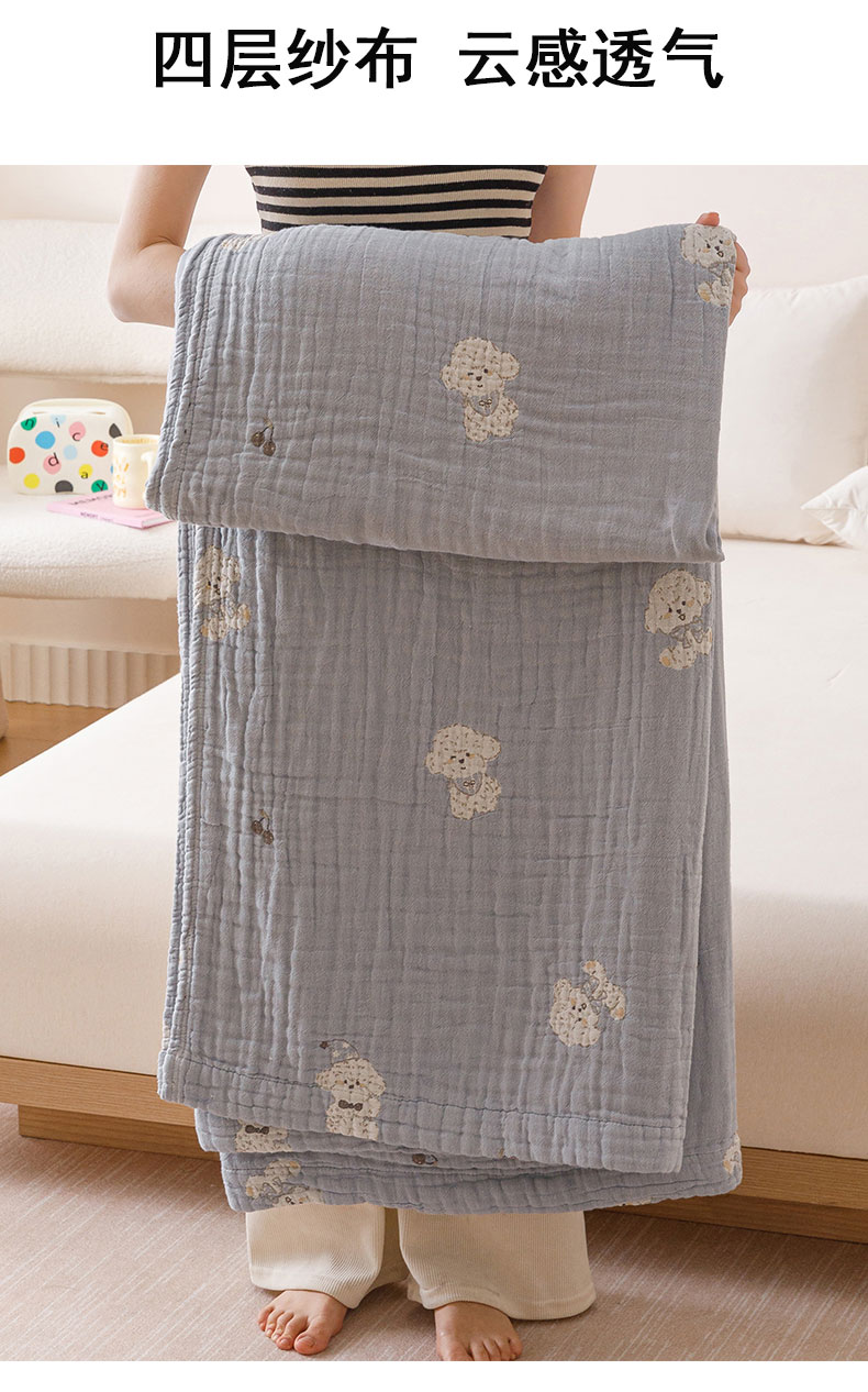 商品名称:麻依 2025新款四层全棉纱布毯盖毯毛巾被子被芯 软萌小狗