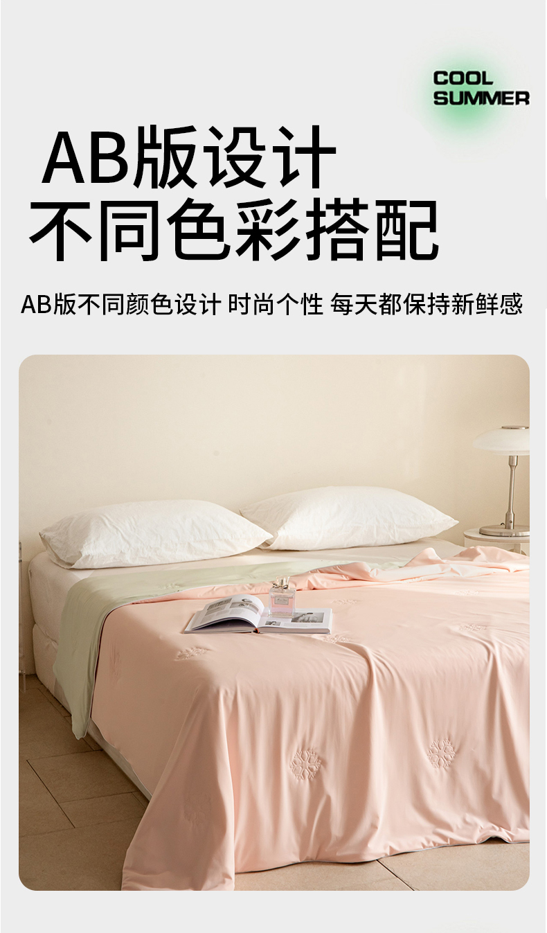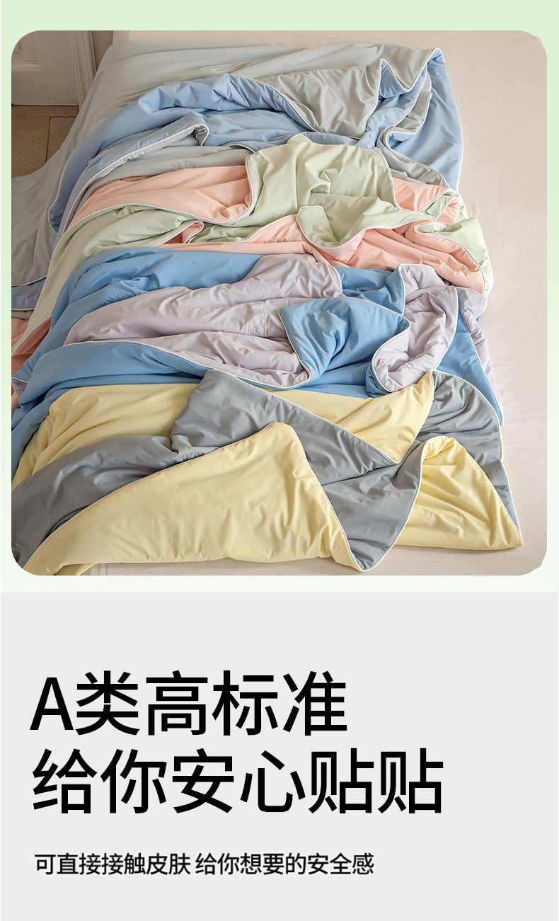 (总)法芙娜家纺 2025新品雪花冰皮被170克锦纶氨纶空调被夏被,粉+绿,黄+灰,浅灰+浅蓝,深蓝+紫