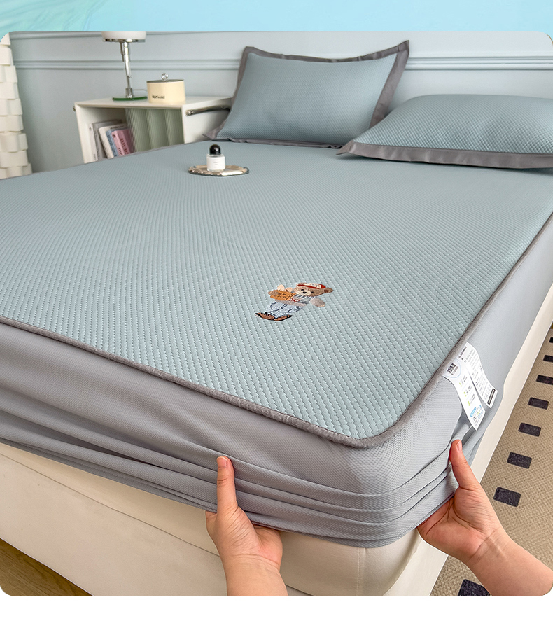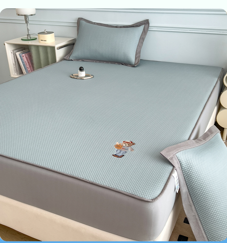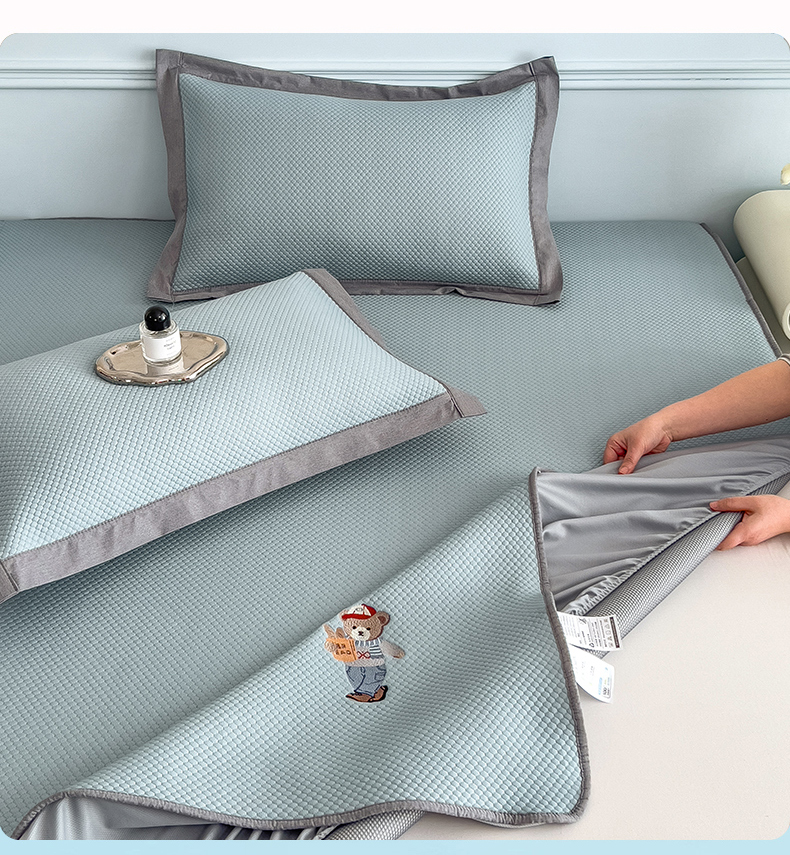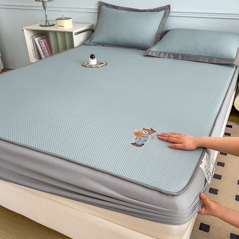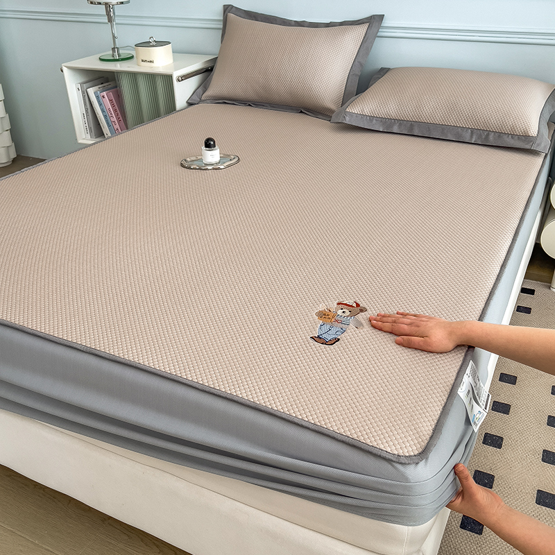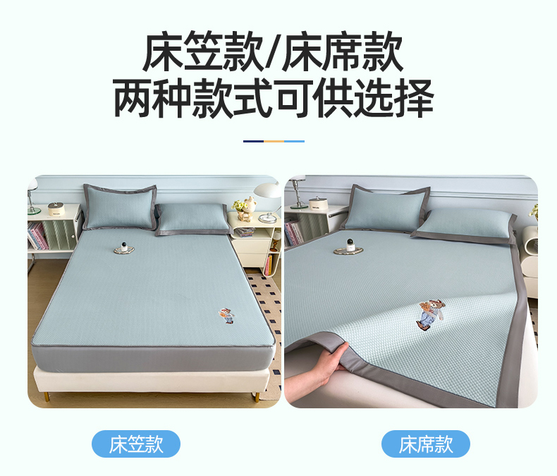 (总)卡初家居2022新款1500D提花床笠款凉席三件套,千鸟格粉,千鸟格咖,千鸟格蓝,千鸟格米,小星星粉,小星星蓝,小熊维尼粉,小熊维尼灰,小熊维尼咖,小熊维尼蓝,小熊维尼绿