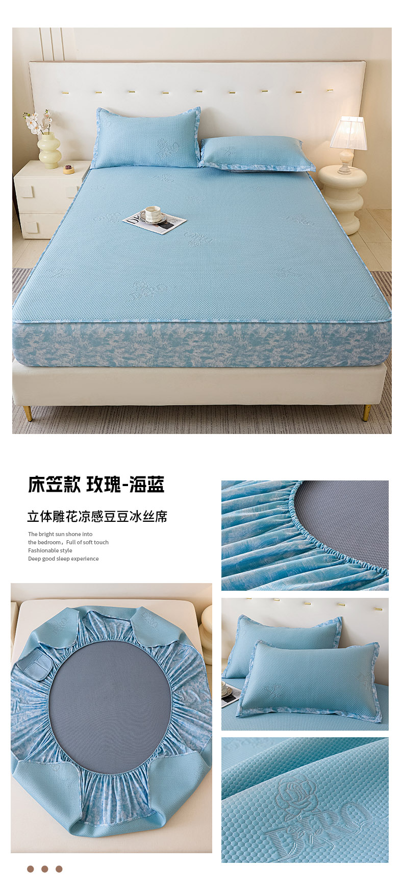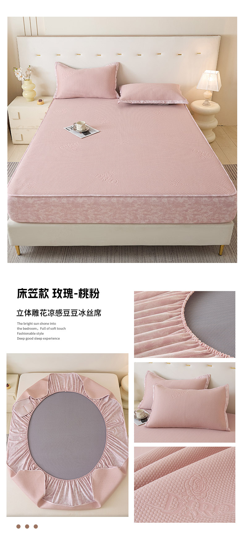 (总)鑫琪莱 2025新款5D立体雕花凉感豆豆冰丝床裙三件套,床裙D款-粉,床裙D款-灰,床裙D款-蓝,床裙H款-粉,床裙H款-灰,床裙H款-蓝,床裙H款-绿