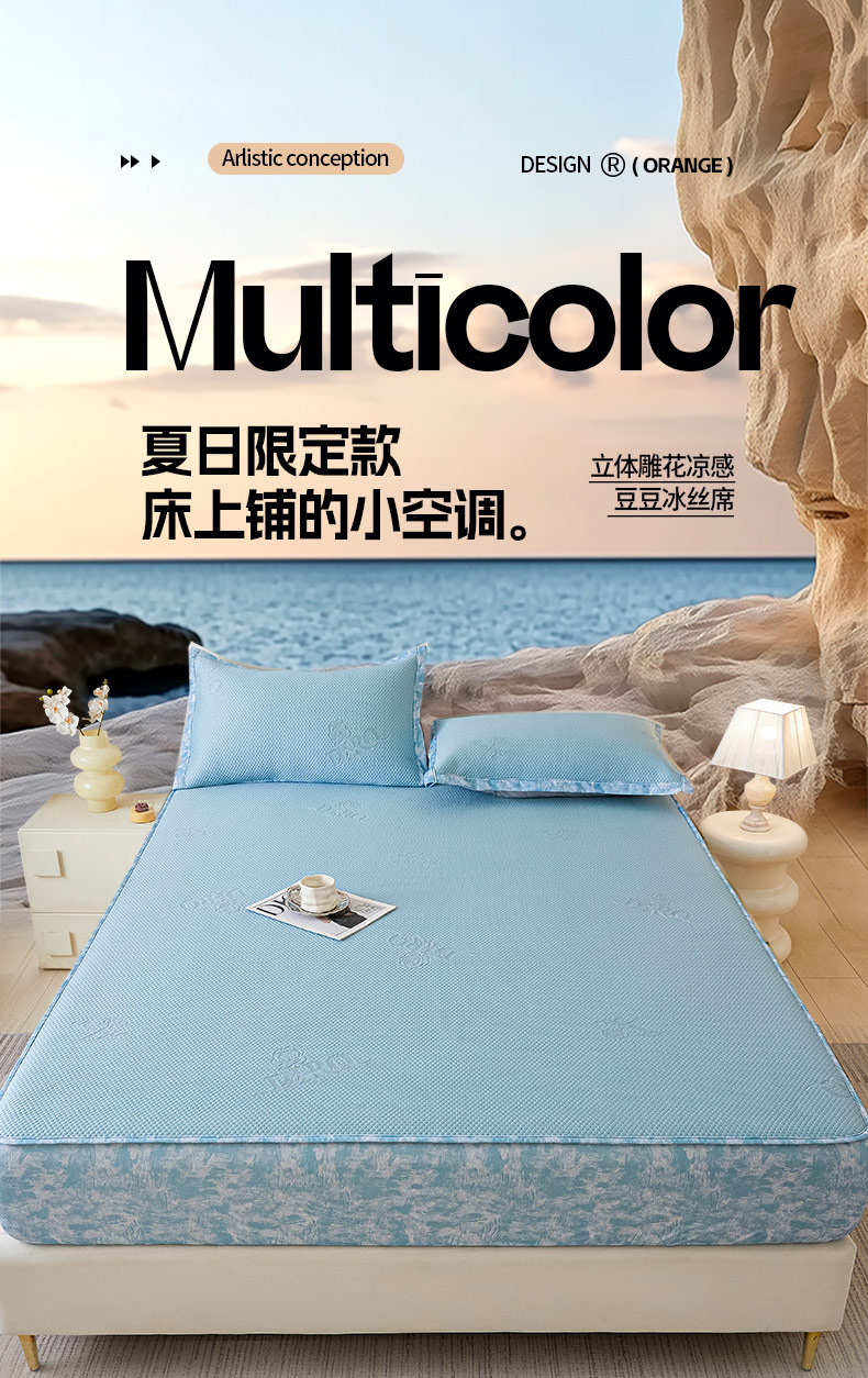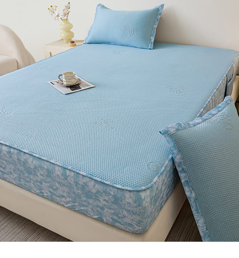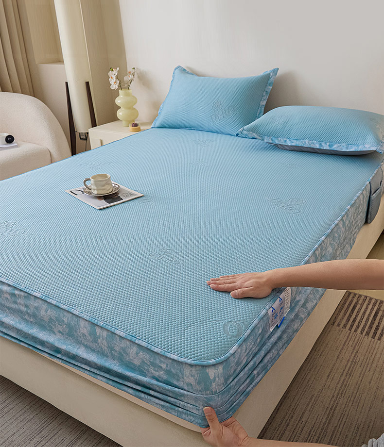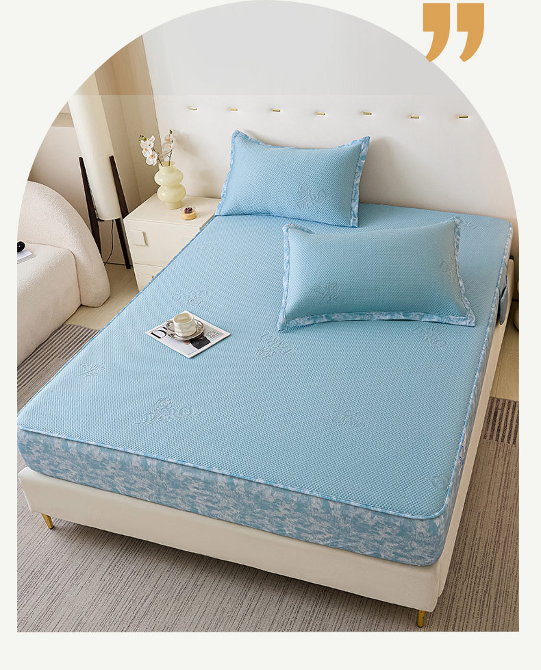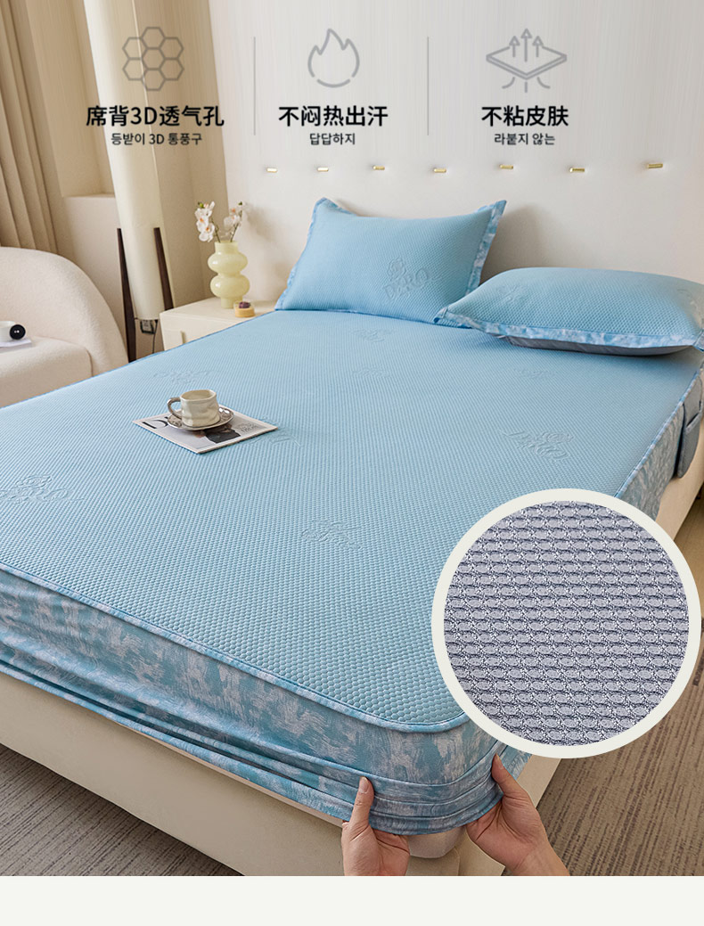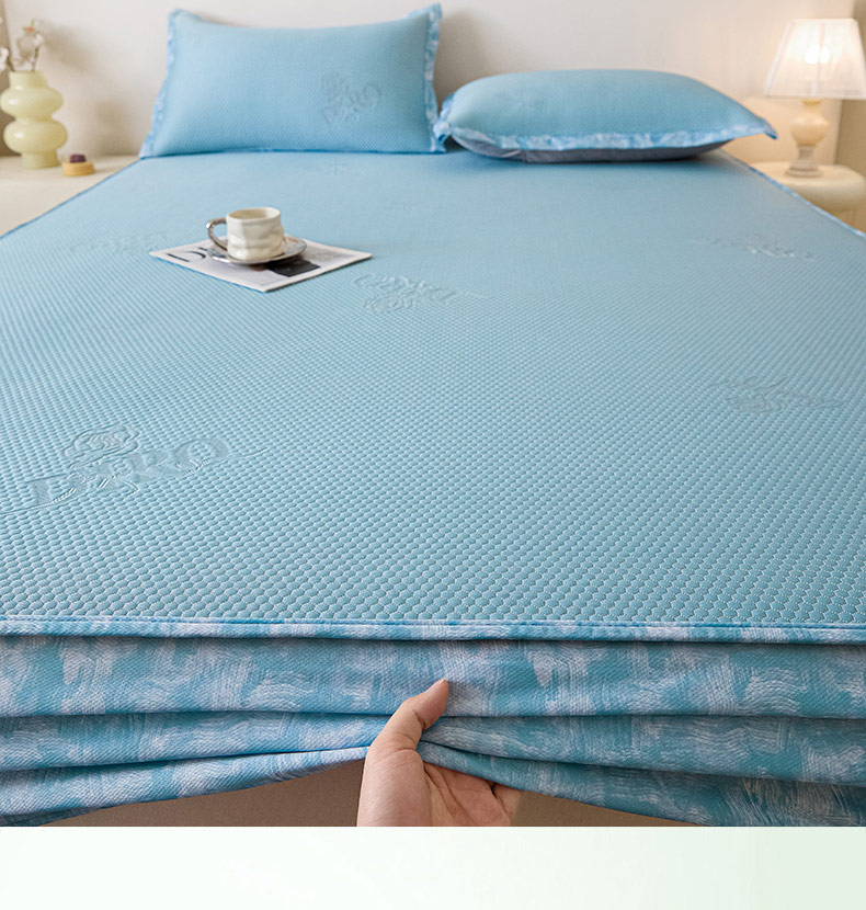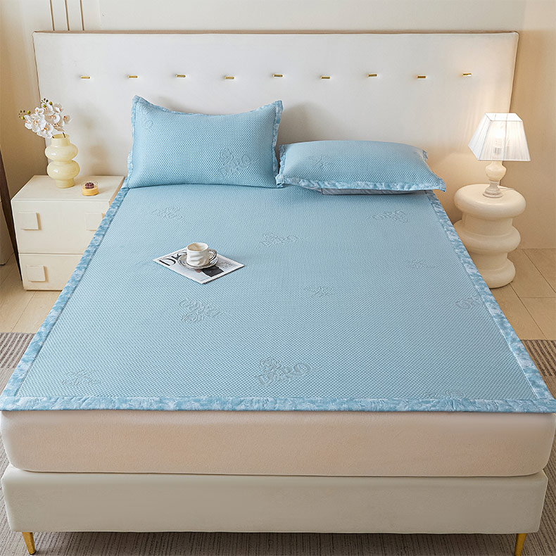 鑫琪莱 2025新款5D立体雕花凉感豆豆冰丝席凉席席子系列 床席款-玫瑰-海蓝