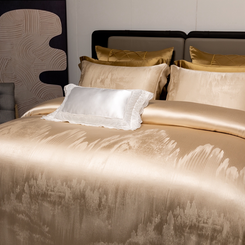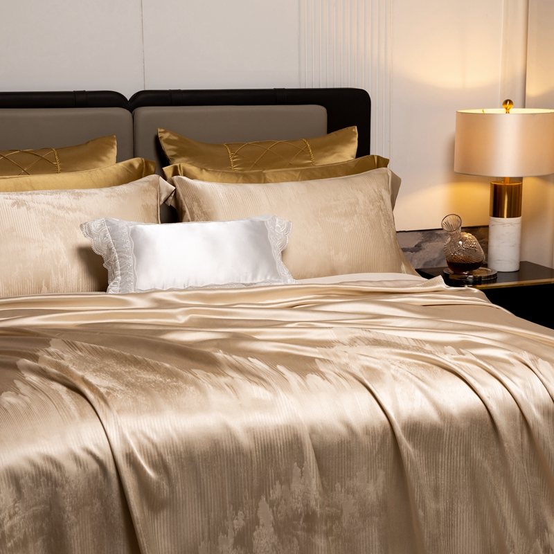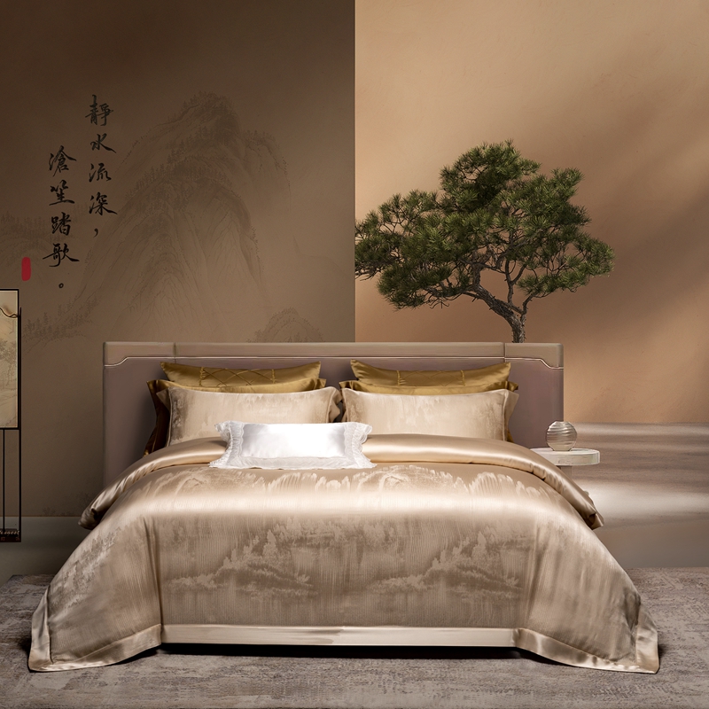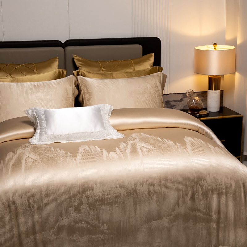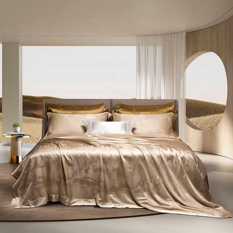 商品名称:晋瑞 红顶鹅绒馆 2025真丝天丝大提花四件套 山间意香槟