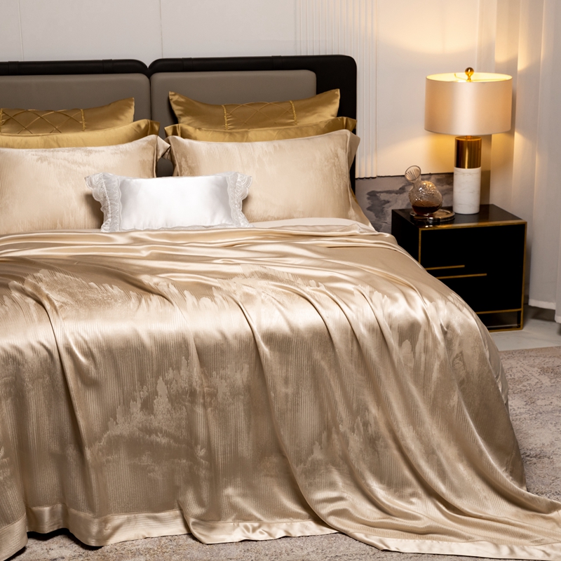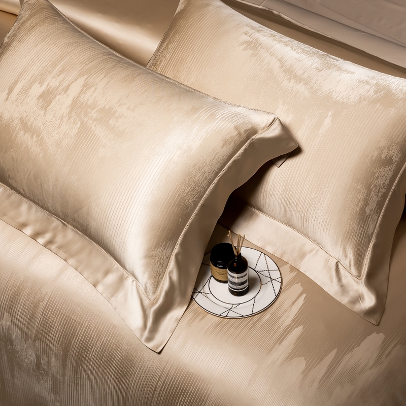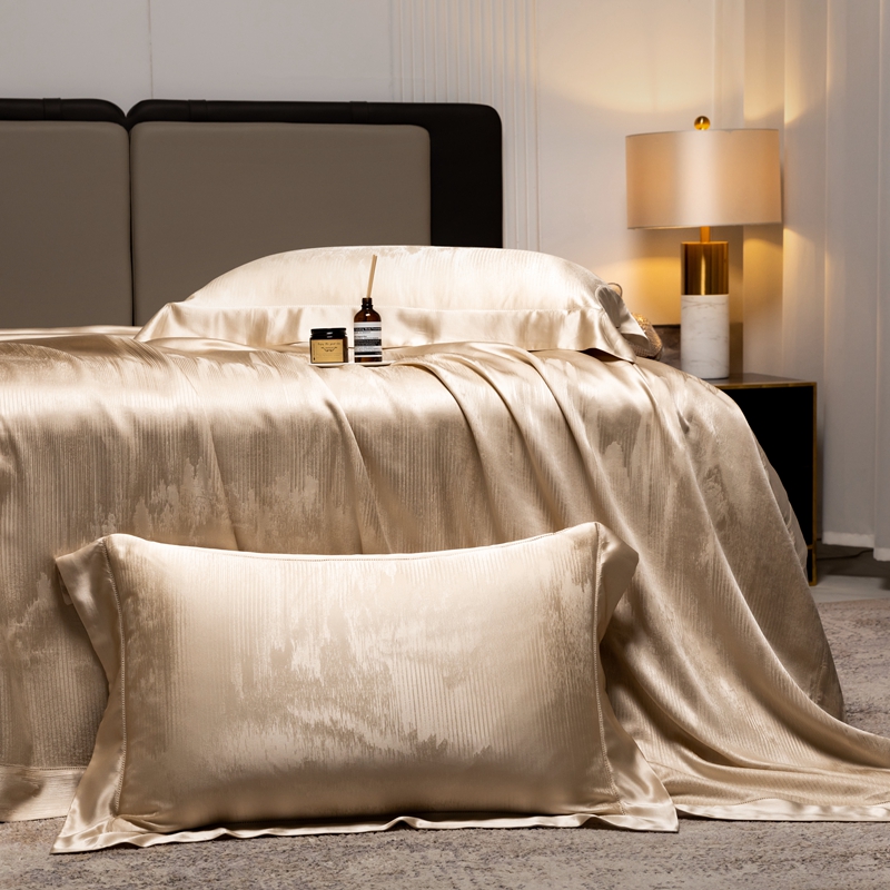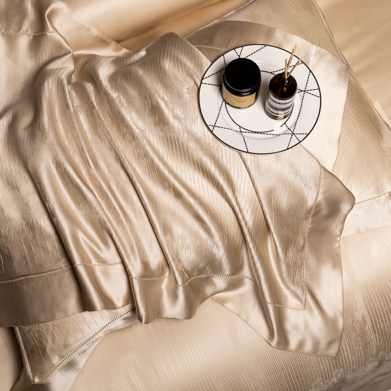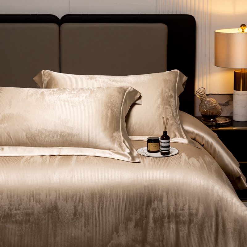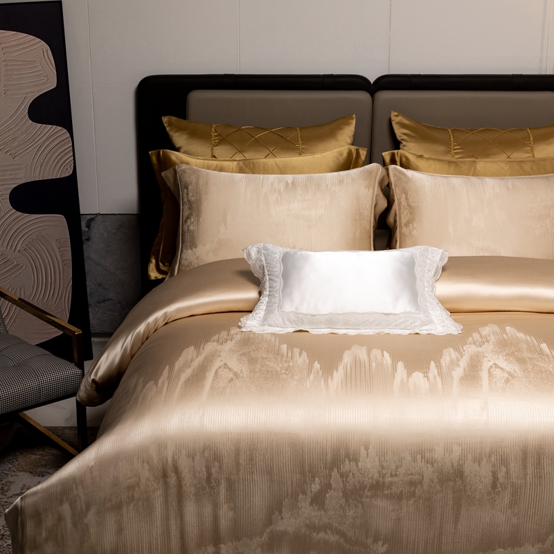 商品名称:晋瑞 红顶鹅绒馆 2025真丝天丝大提花四件套 山间意香槟
