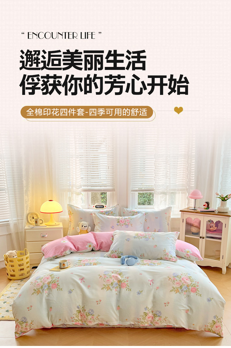 世爵 2025新款全棉印花小清新套件系列-四件套 繁花