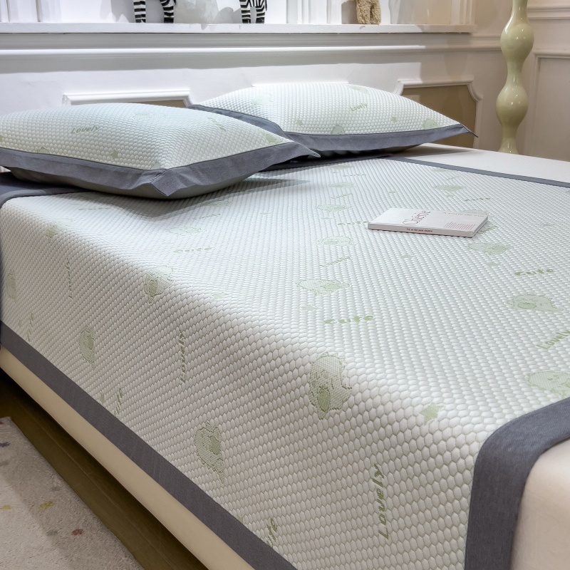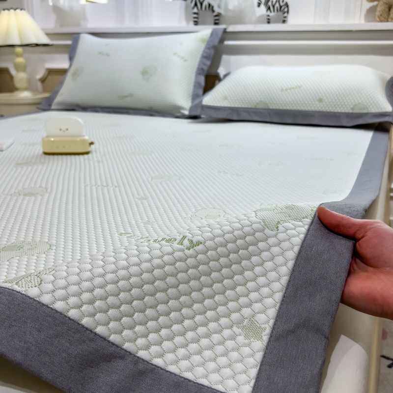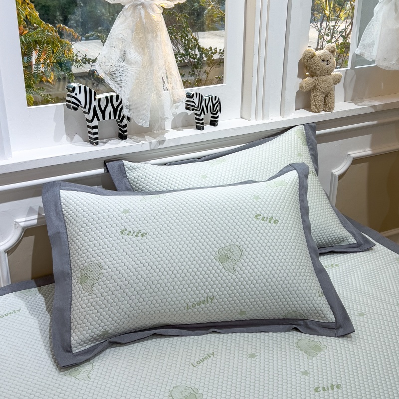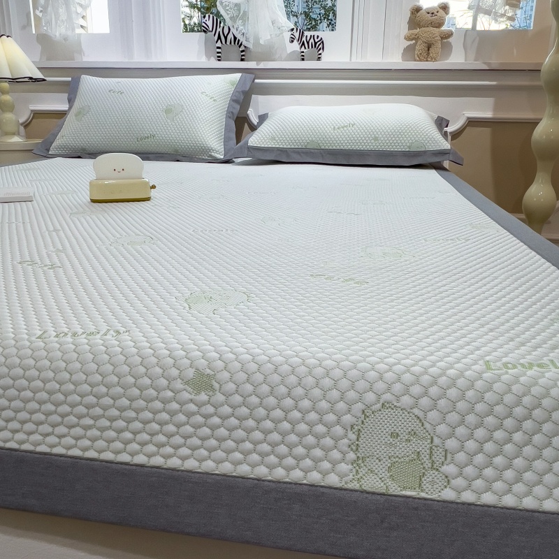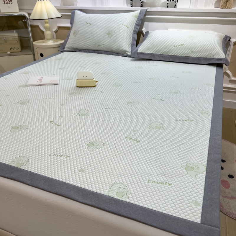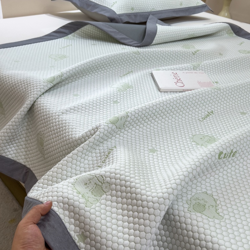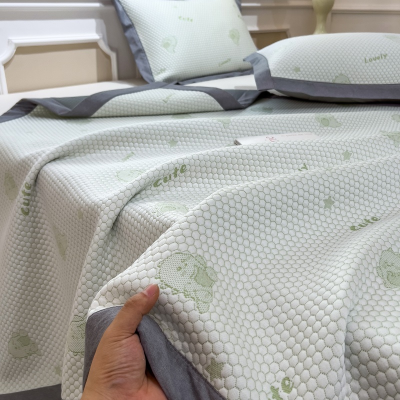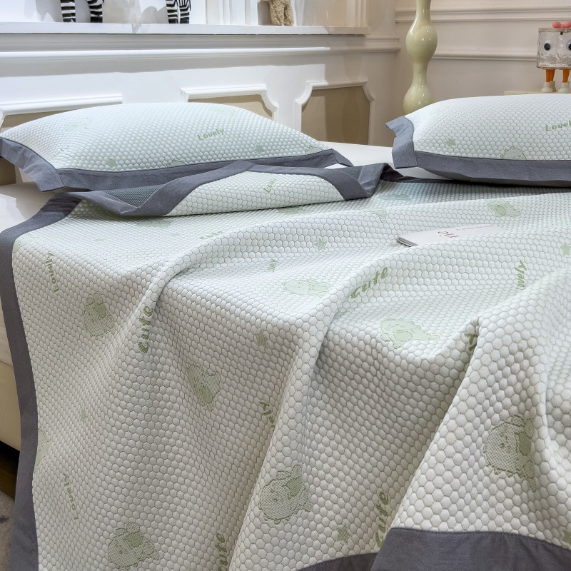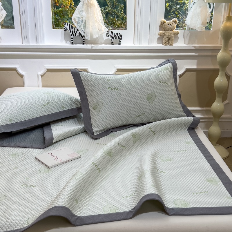 • 91家纺网 家纺一手货源 找家纺 孩子王家纺 2025新款冰丝席提花冰豆豆床单床笠-抱抱龙系列 抱抱龙-沁雅绿