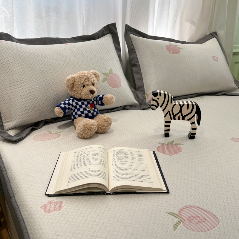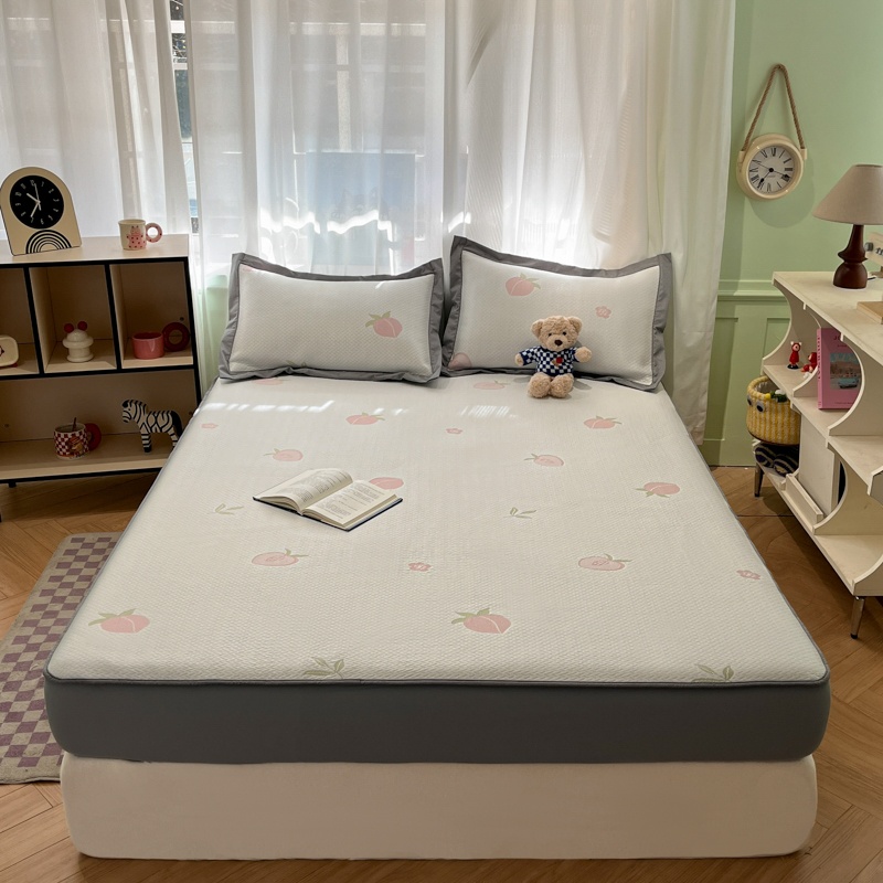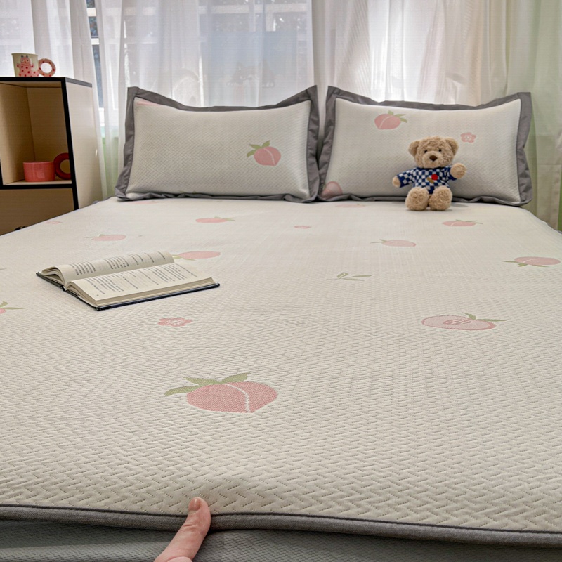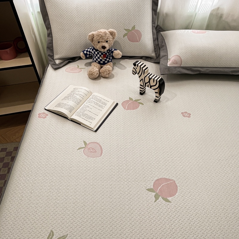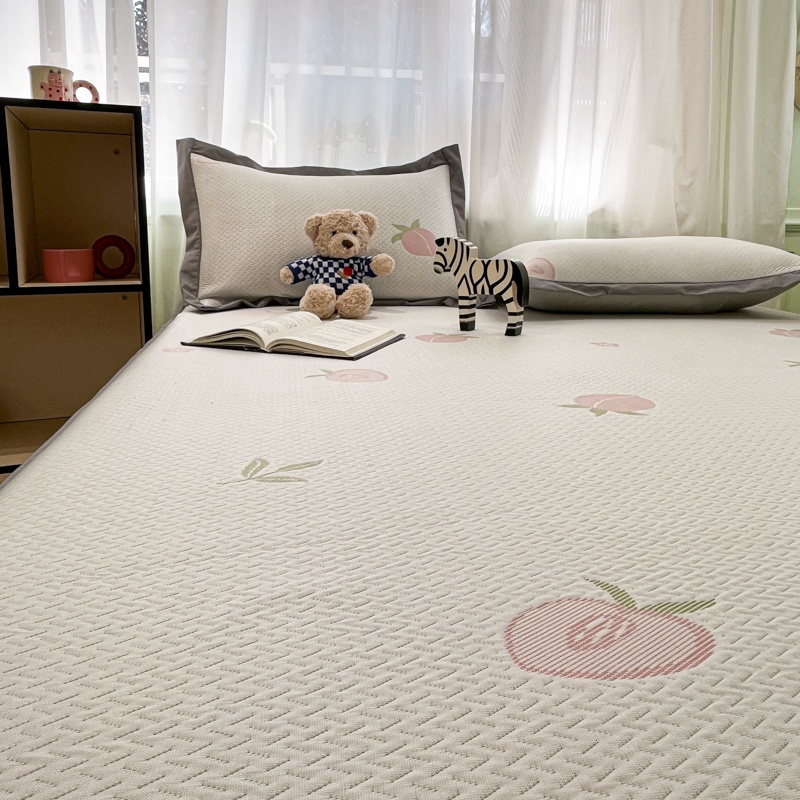 • 91家纺网 家纺一手货源 找家纺 孩子王家纺 2025新款冰丝席提花冰豆豆系列床单床笠 桃桃床笠