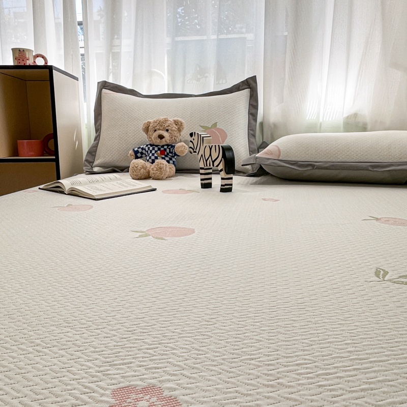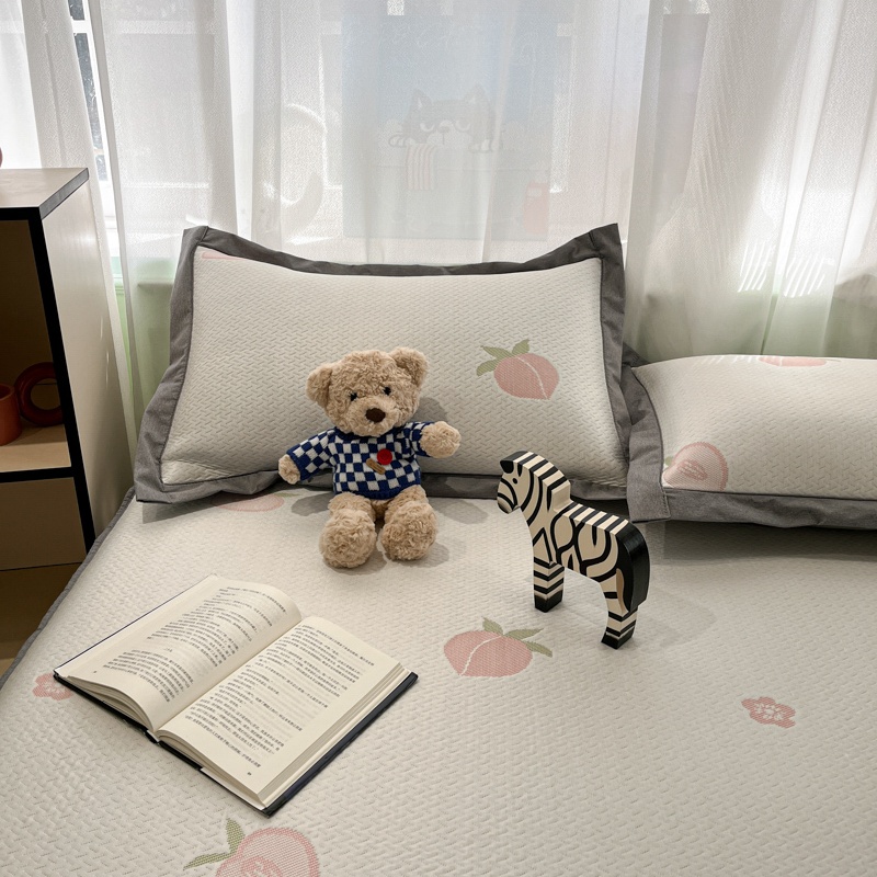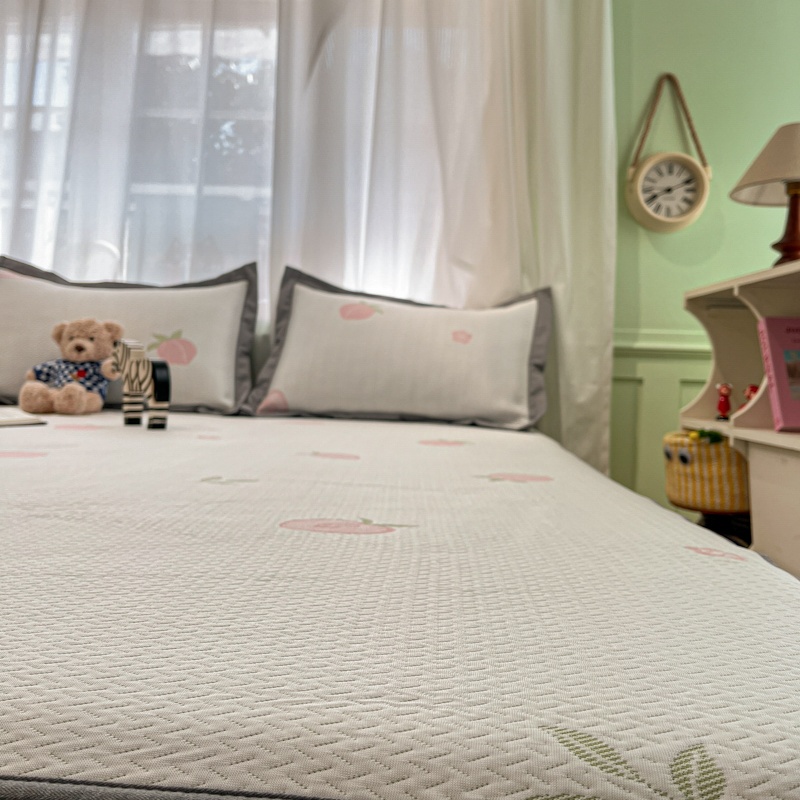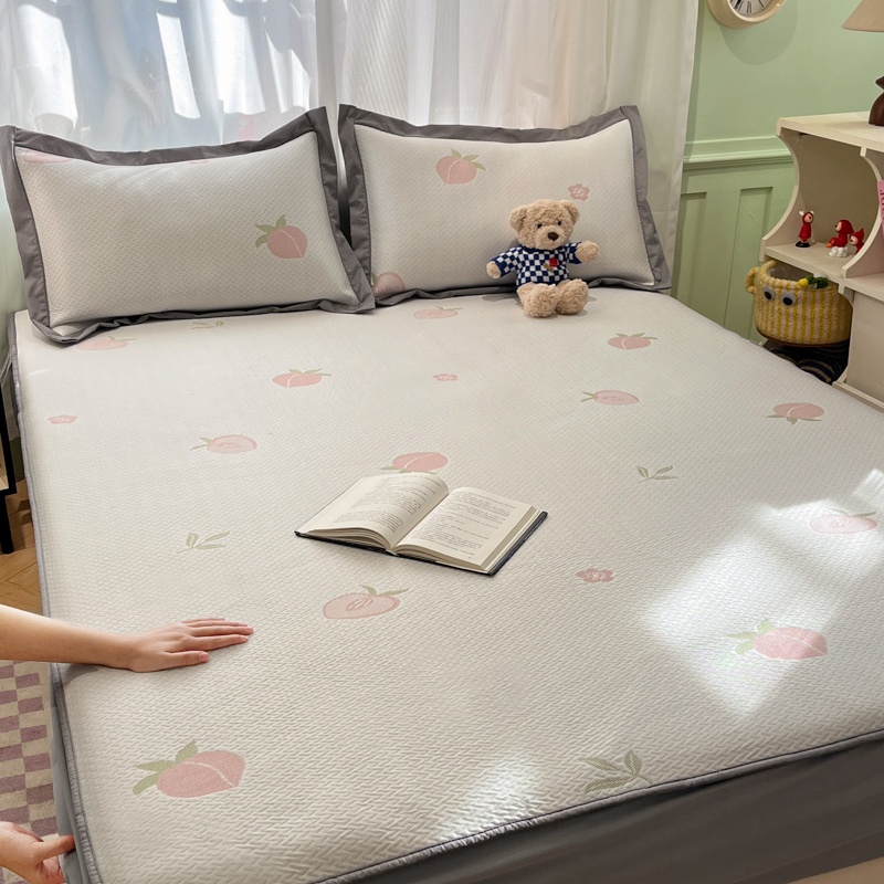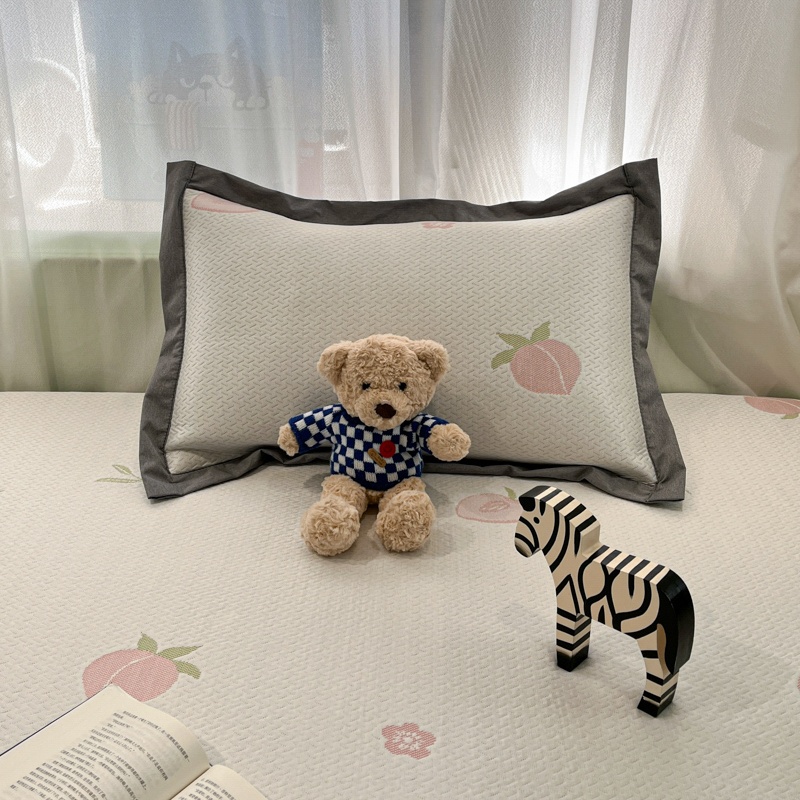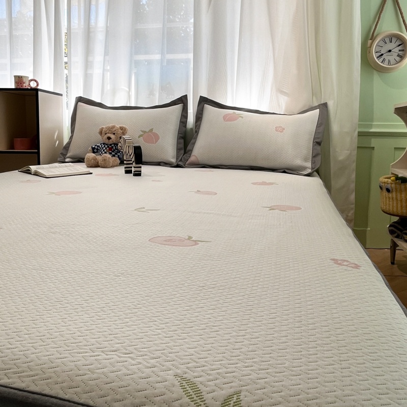 • 91家纺网 家纺一手货源 找家纺 孩子王家纺 2025新款冰丝席提花冰豆豆系列床单床笠 桃桃床笠
