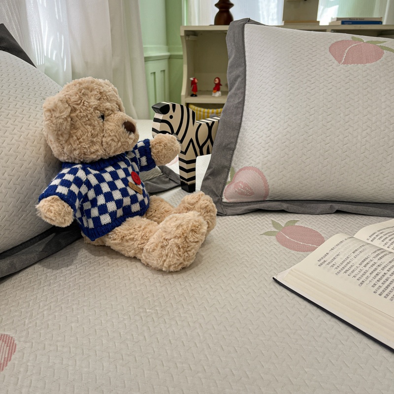 孩子王家纺 2025新款冰丝席提花冰豆豆系列床单床笠 桃桃床笠