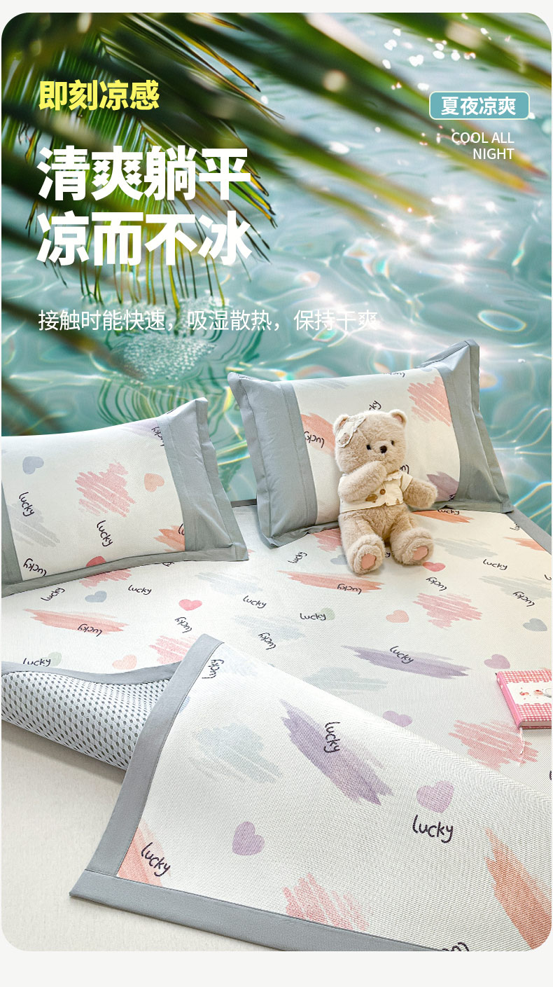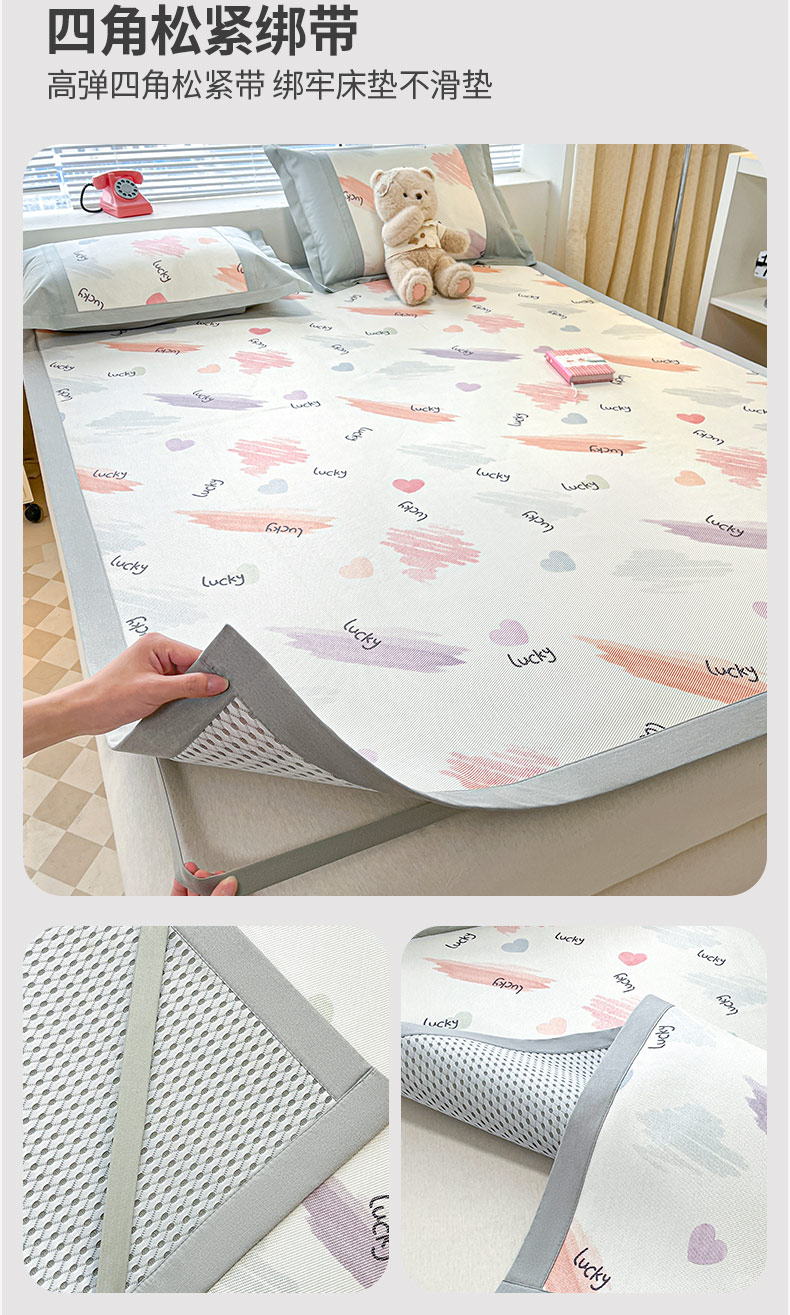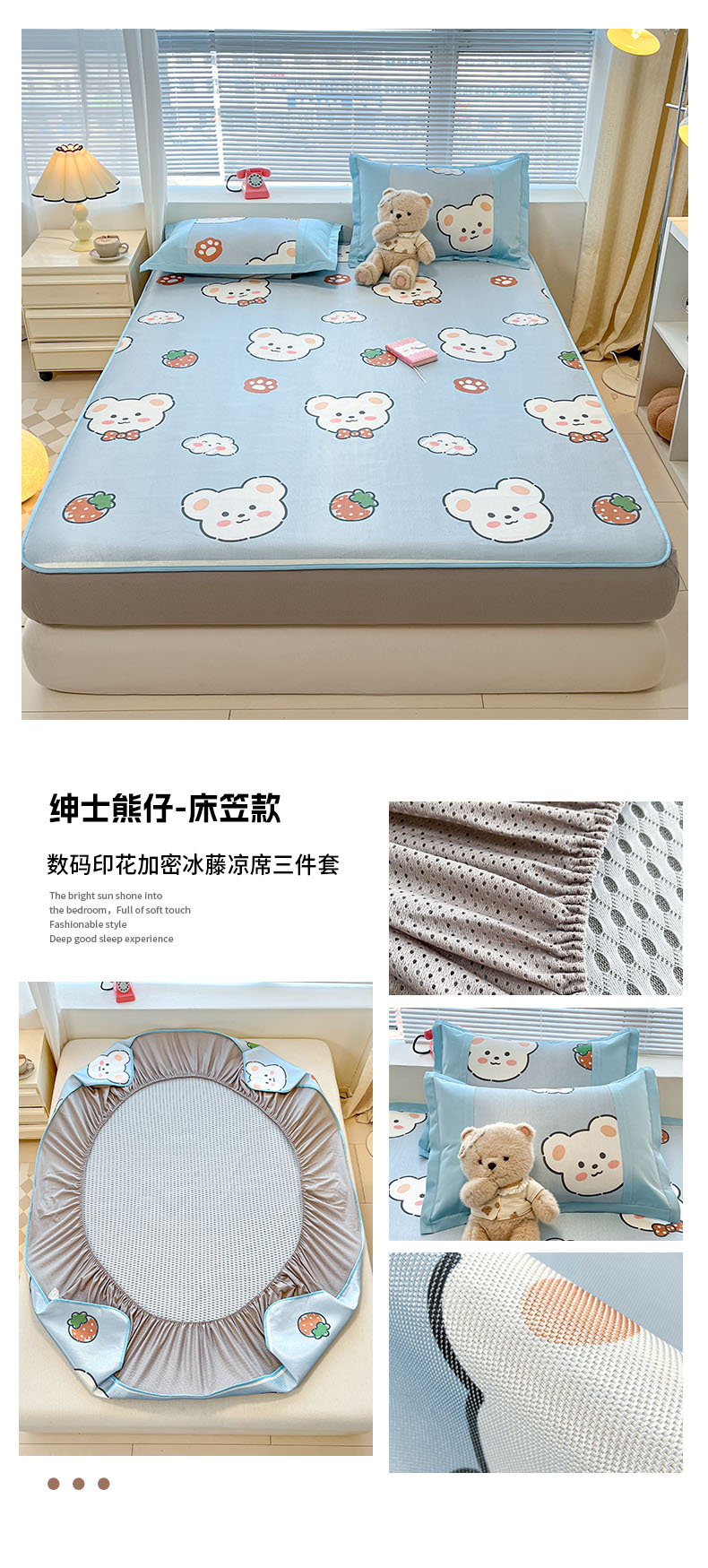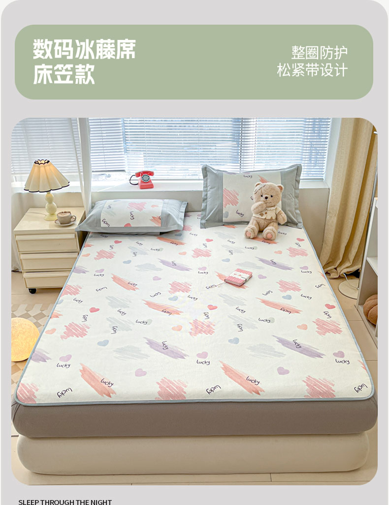 鑫琪莱家纺 2025新款数码印花加密冰藤凉席三件套 床笠款-遇见彩虹