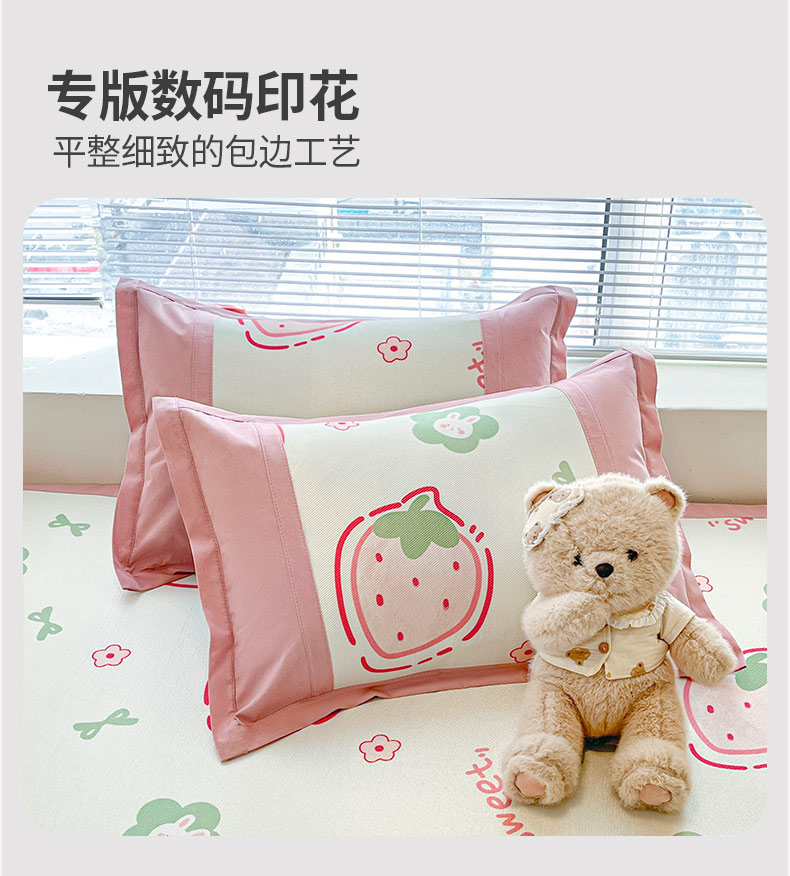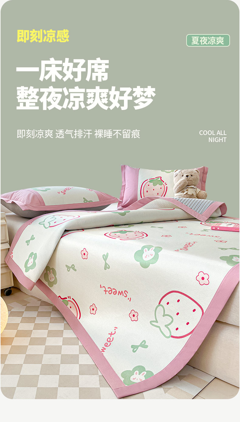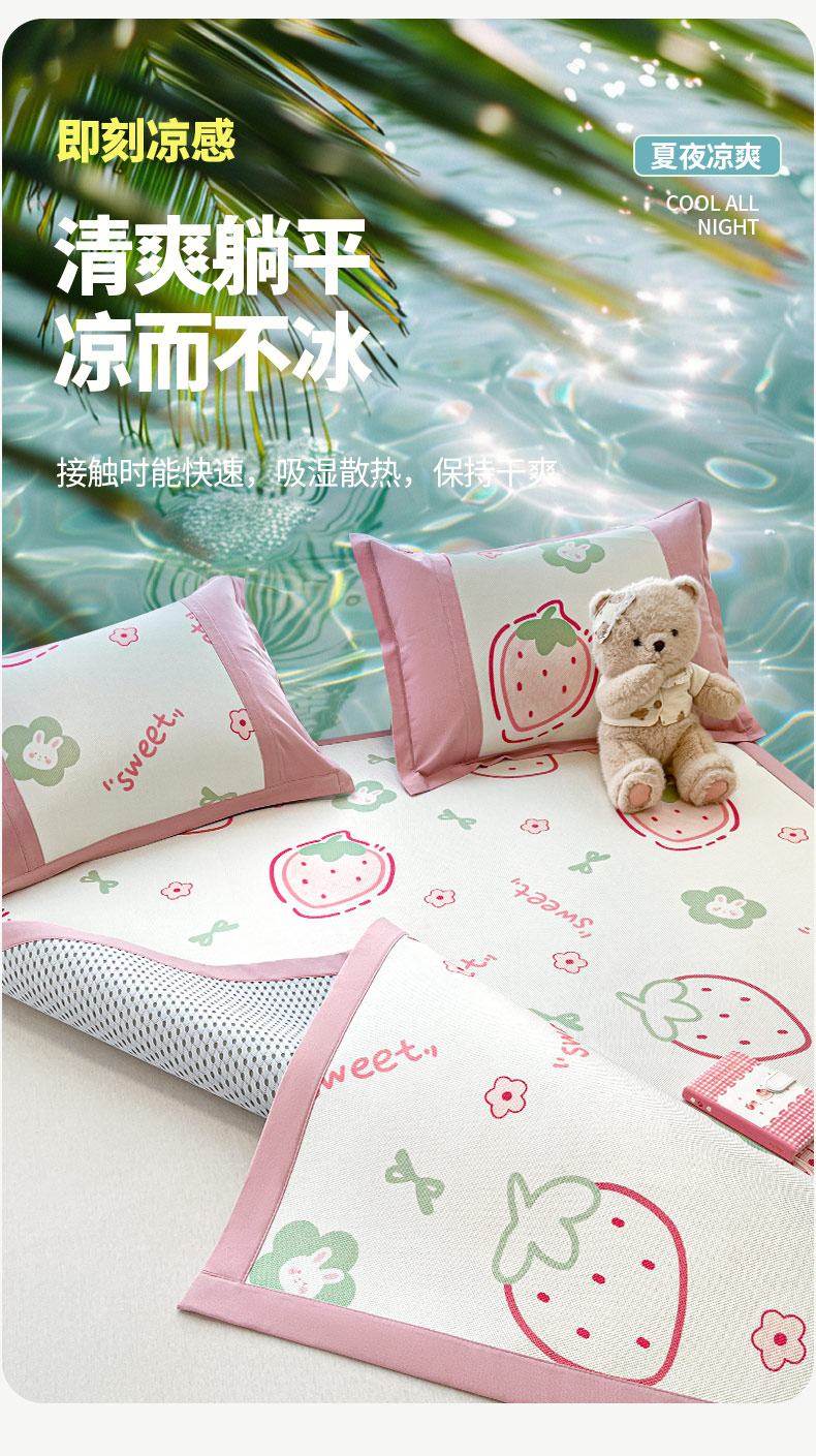 商品名称:鑫琪莱家纺 2025新款数码印花加密冰藤凉席三件套 床席款-甜心草莓