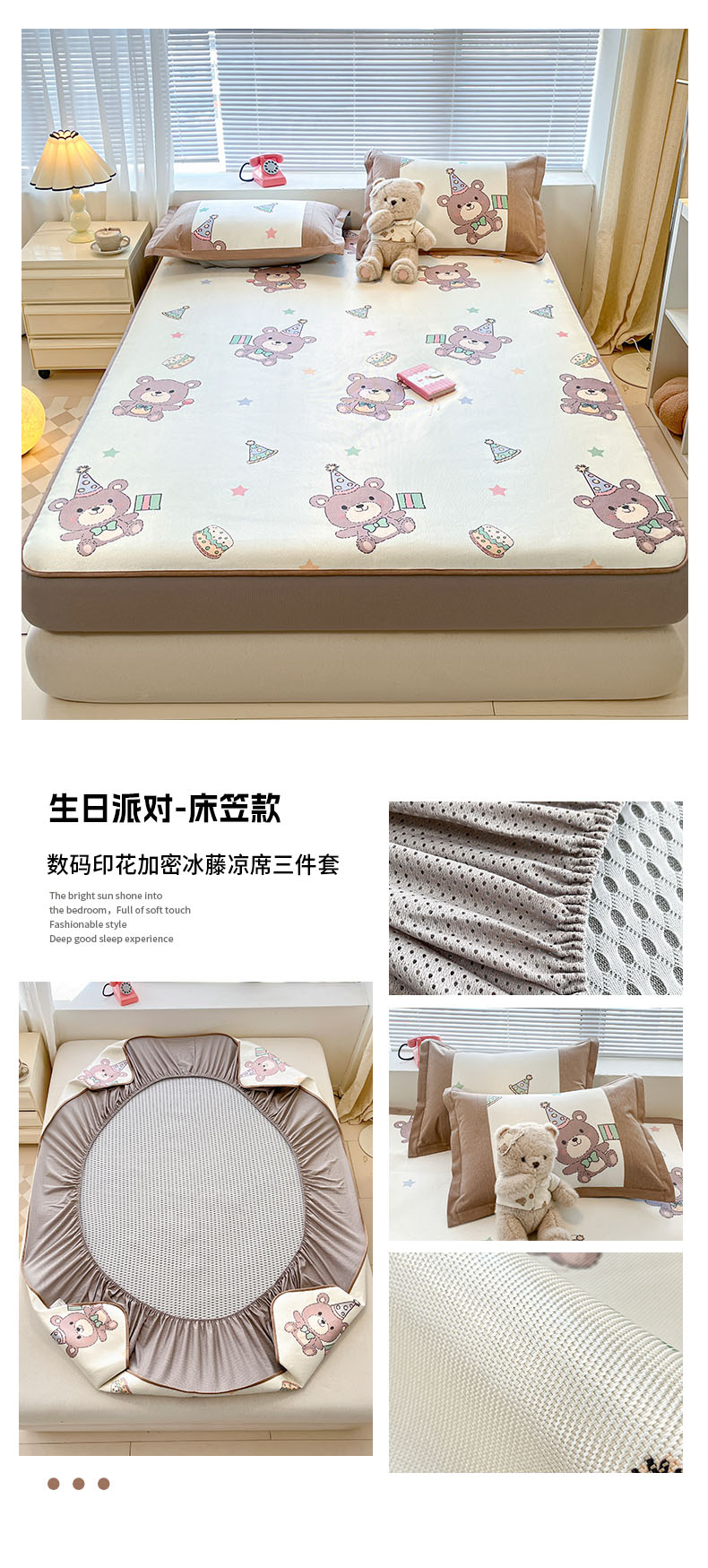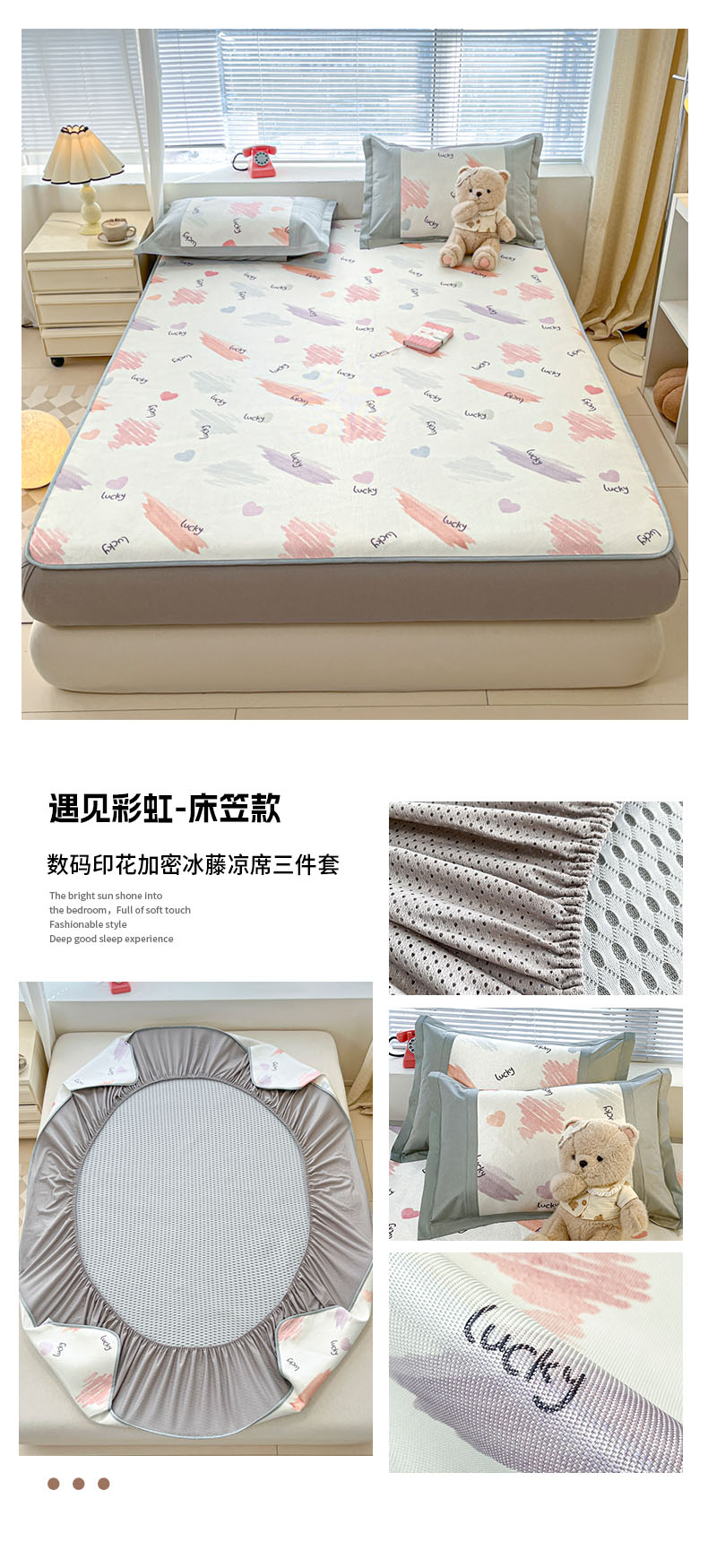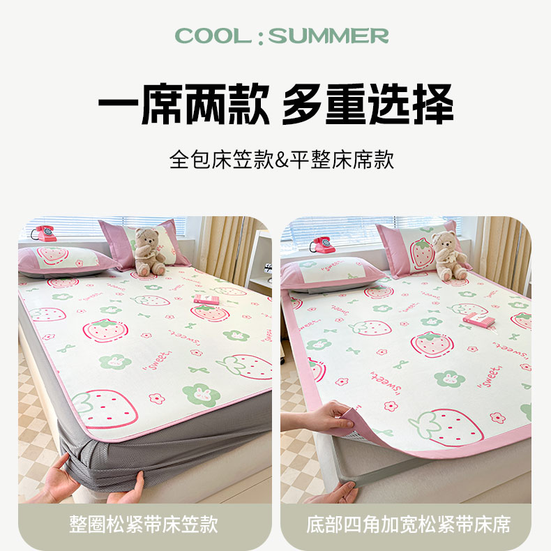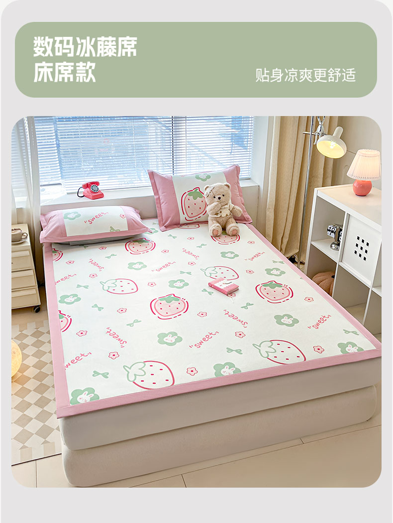 鑫琪莱家纺 2025新款数码印花加密冰藤凉席三件套 床席款-甜心草莓