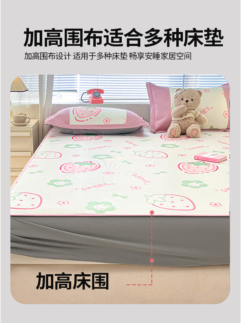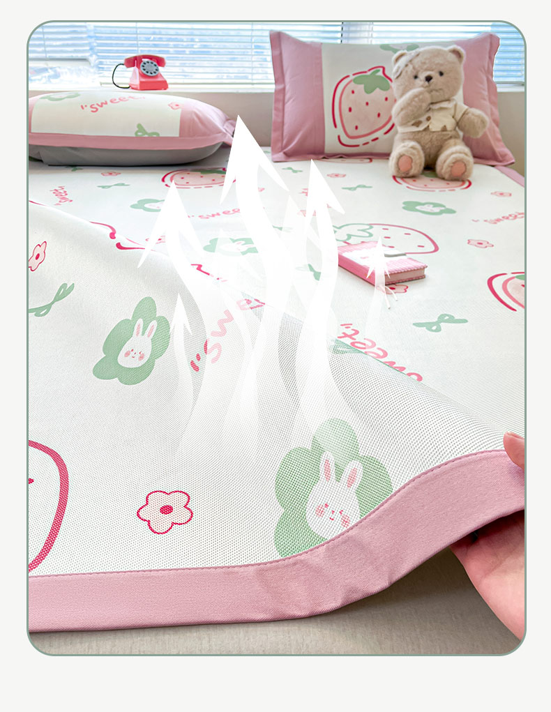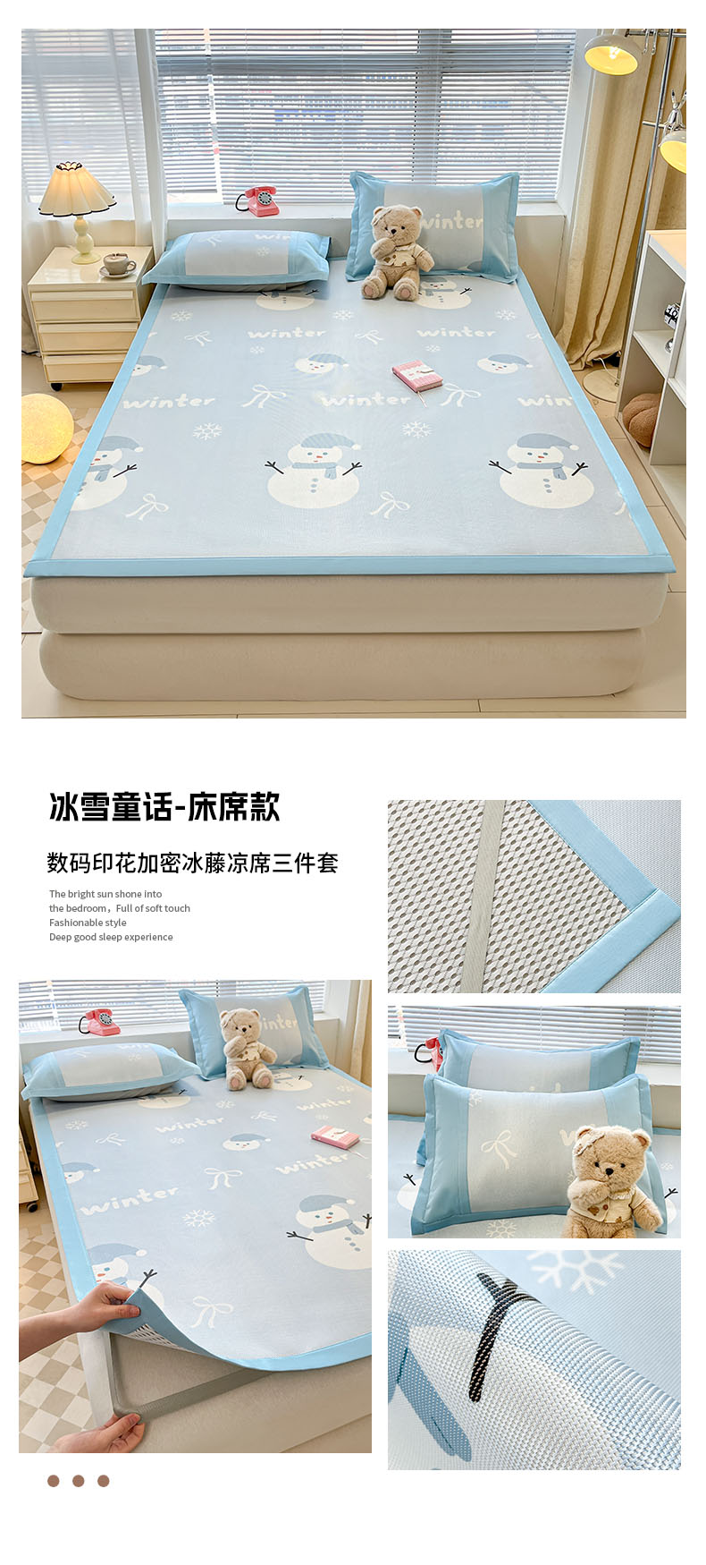 鑫琪莱家纺 2025新款数码印花加密冰藤凉席三件套 床席款-甜心草莓