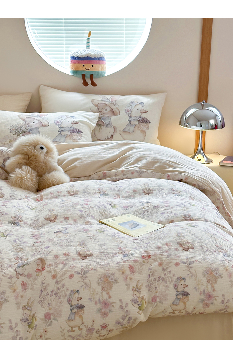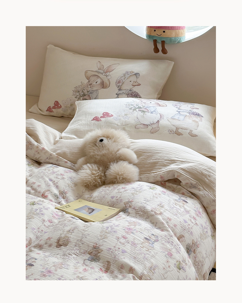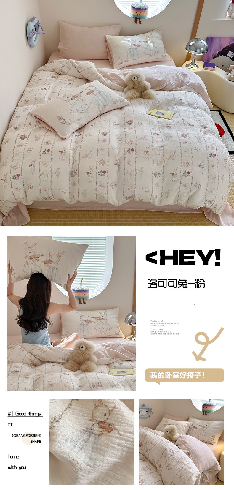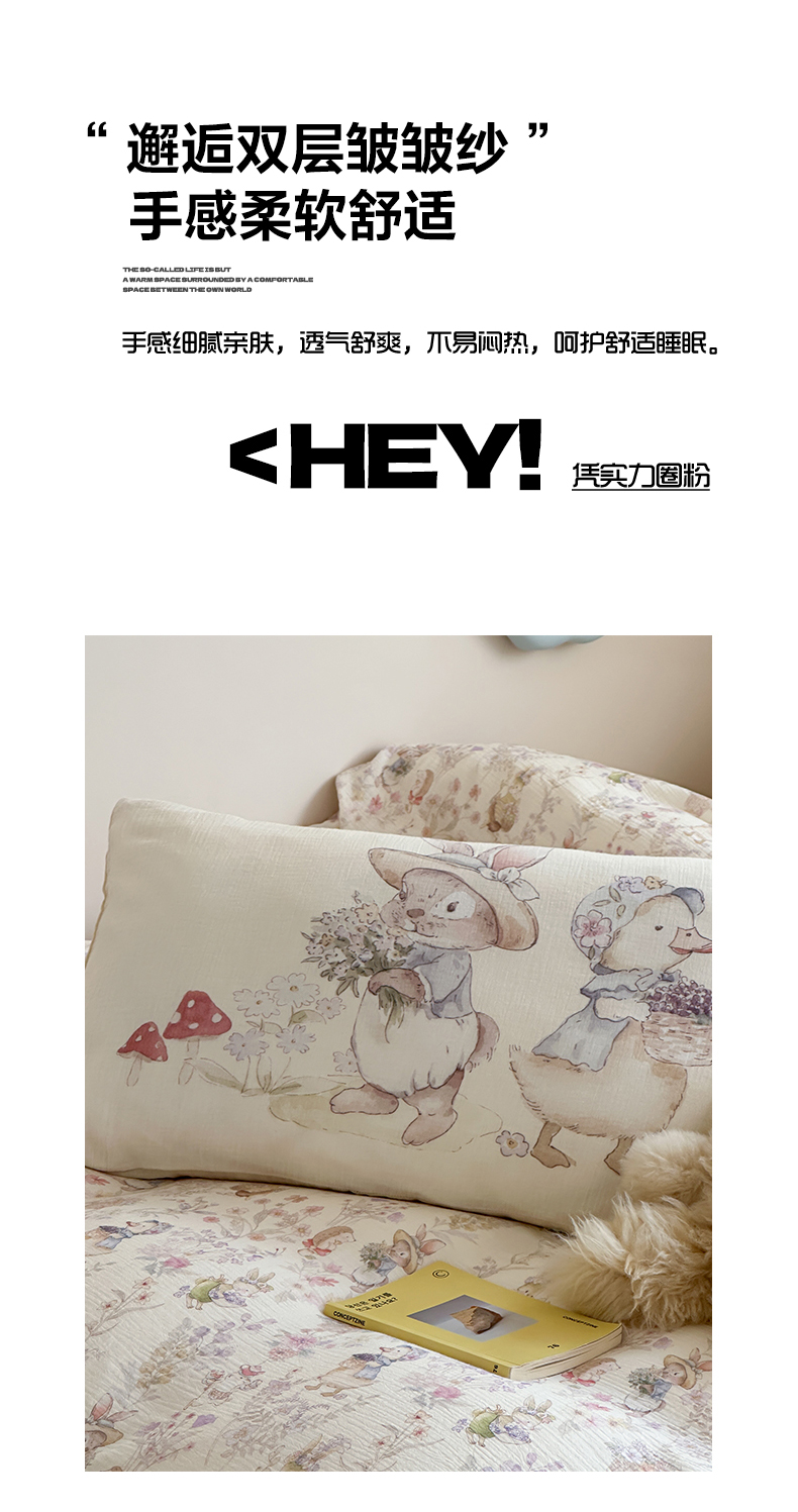 (总)卡巴伦家纺 2025新款全棉皱皱纱大版卡通数码印花款四件套一,洛可可兔-粉,班尼的花园-粉,班尼的花园-黄,漂亮的领结-绿,漂亮的领结-米白,熊猫噗噗-绿,樱桃真甜-奶白