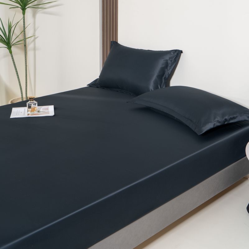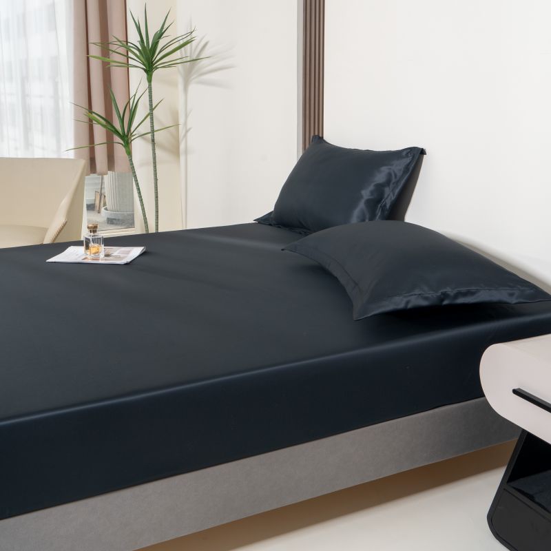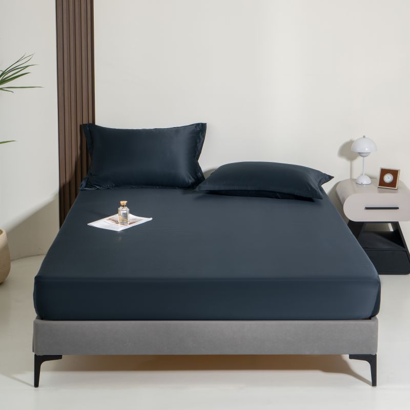 • 91家纺网 家纺一手货源 找家纺 馨乐家纺 2025款水洗天丝纯色床笠 至尊黑
