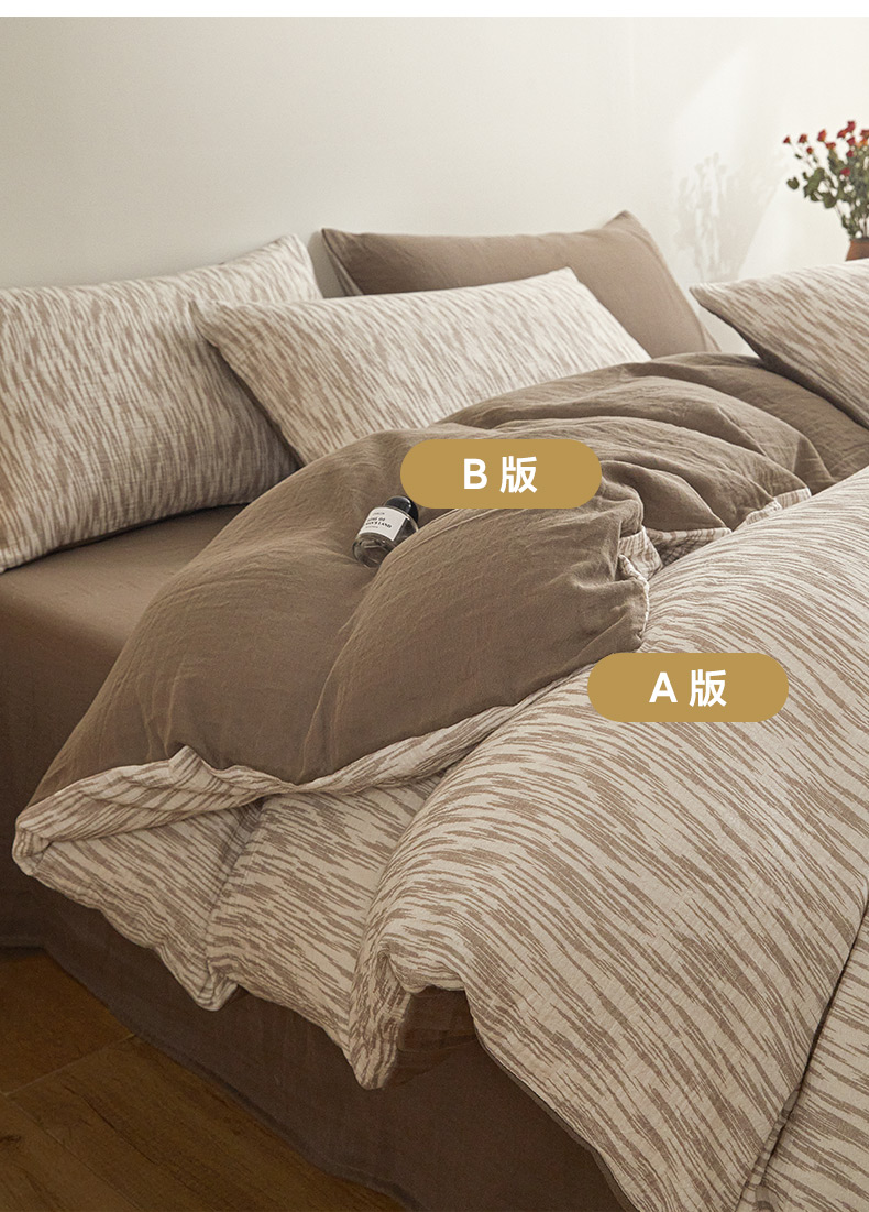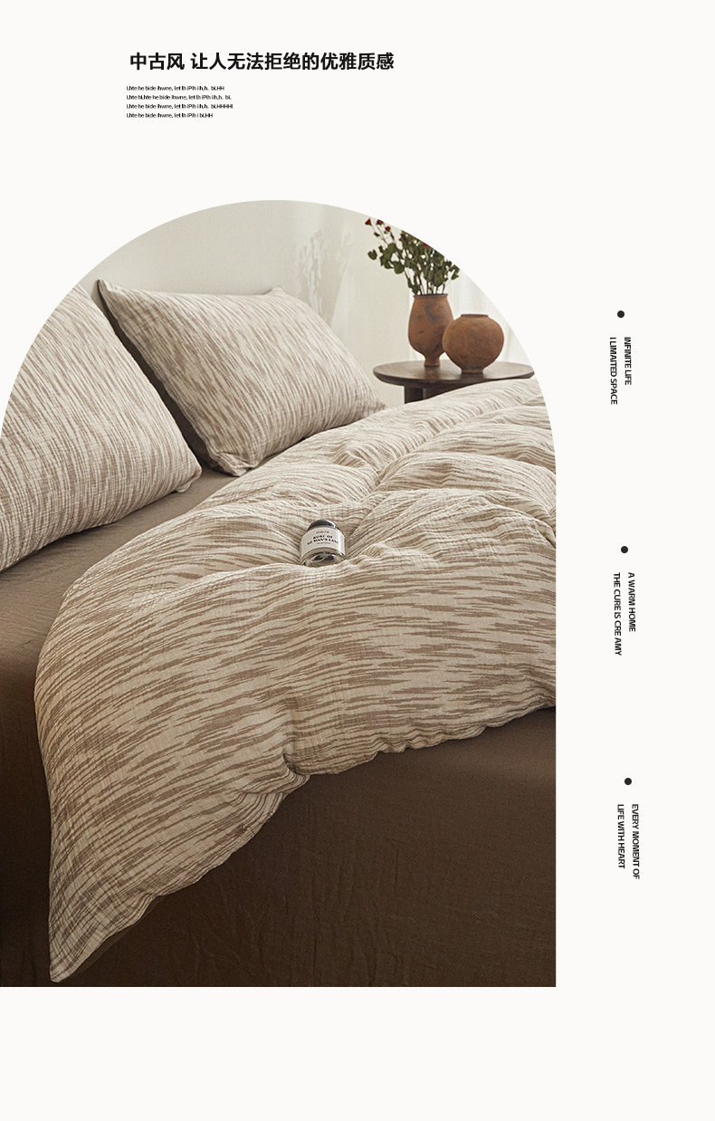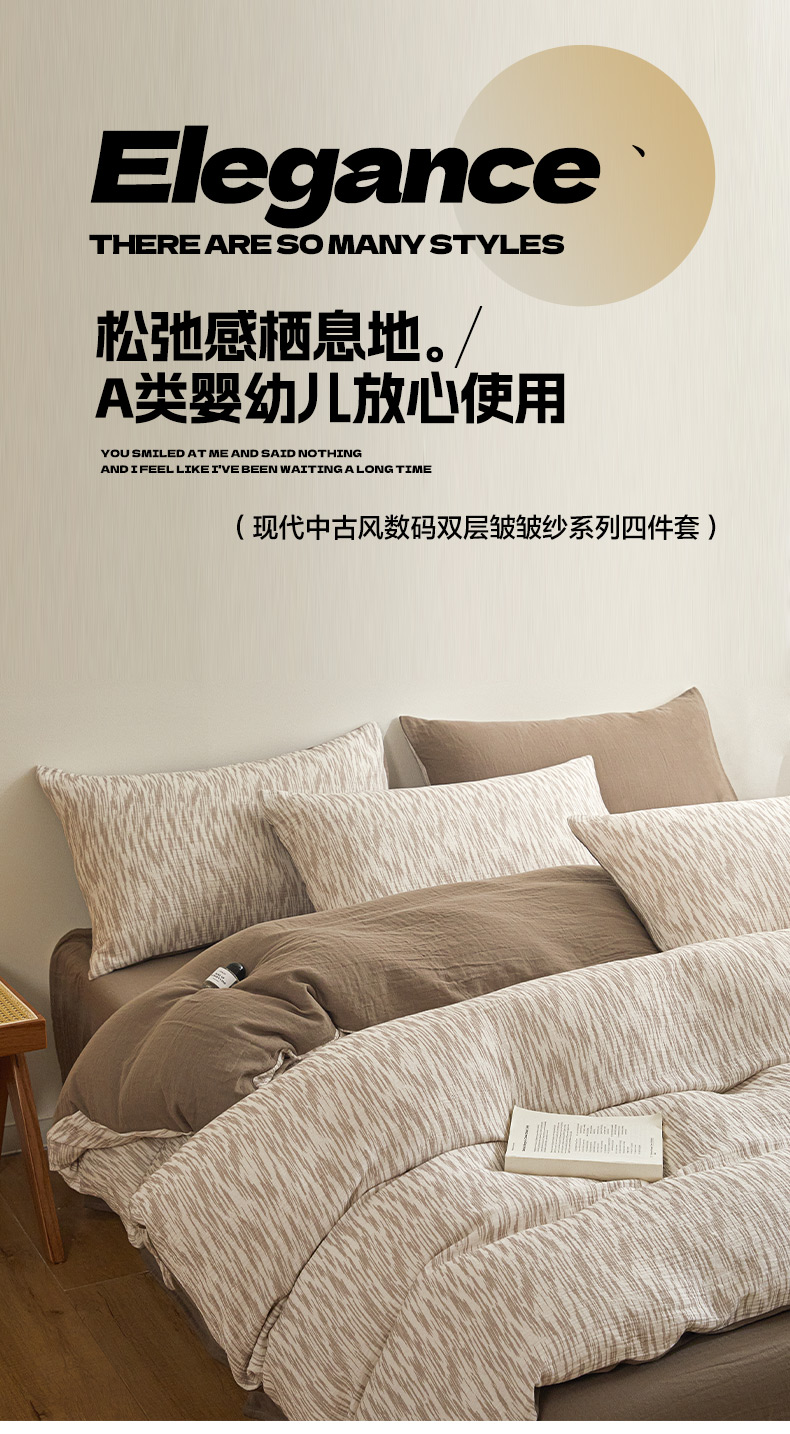 卡巴伦家纺 2025新款全棉双层皱皱纱现代中古风数码四件套 织兮