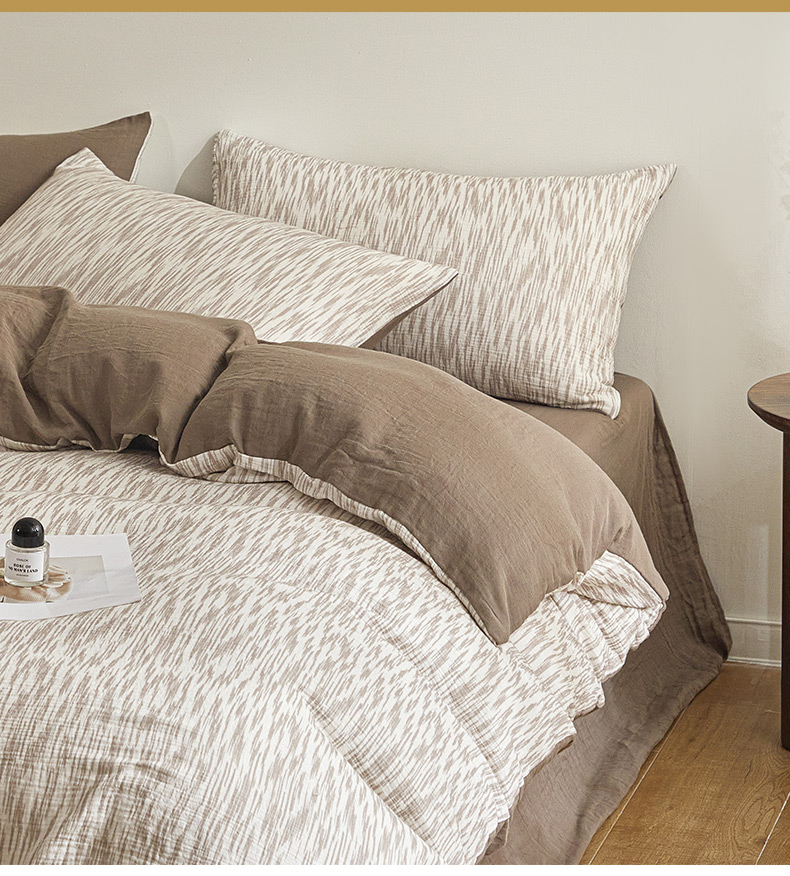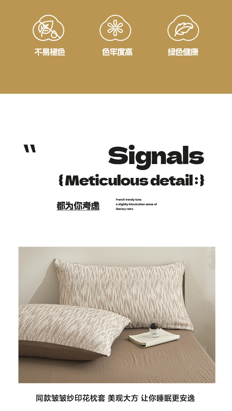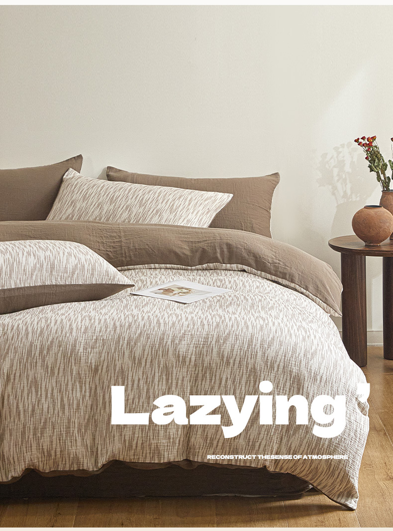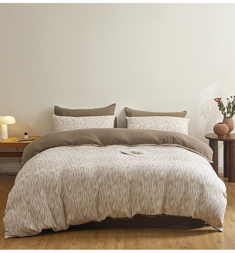卡巴伦家纺 2025新款全棉双层皱皱纱现代中古风数码四件套 织兮