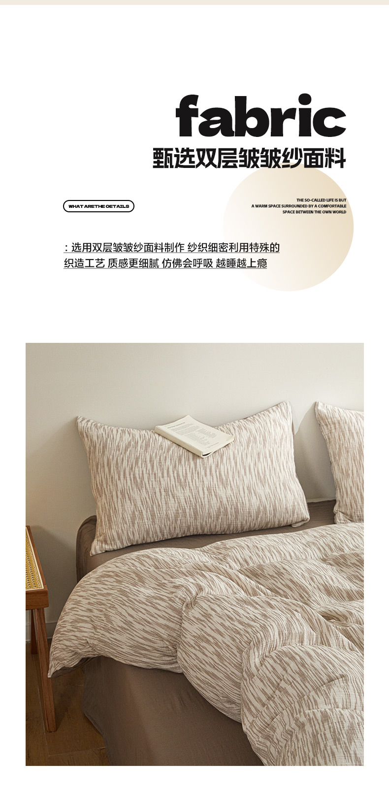 商品名称:卡巴伦家纺 2025新款全棉双层皱皱纱现代中古风数码四件套 织兮