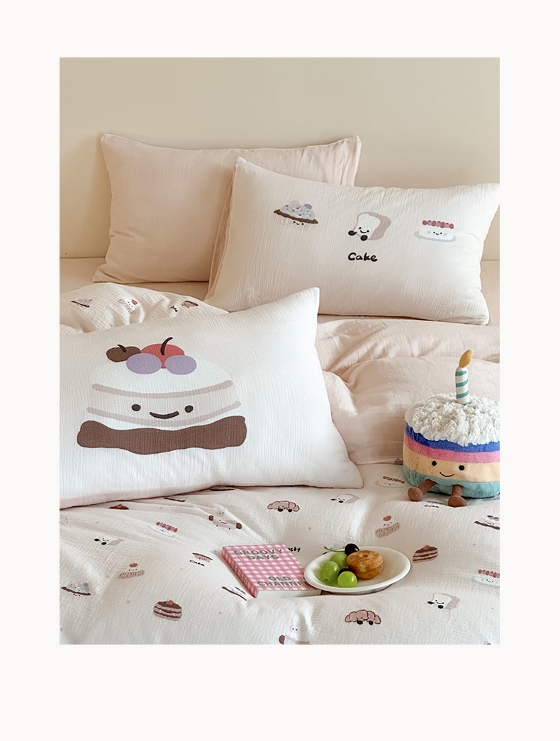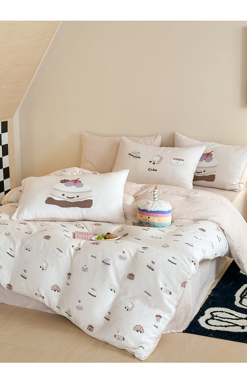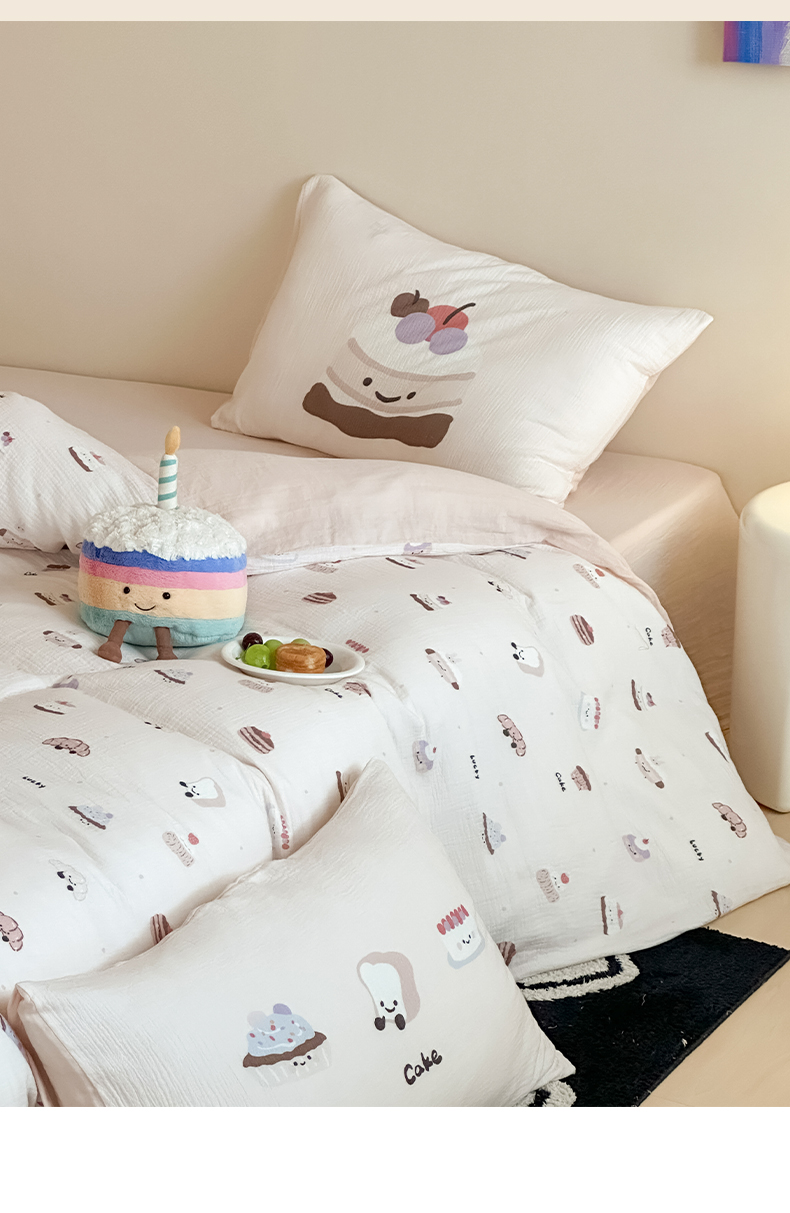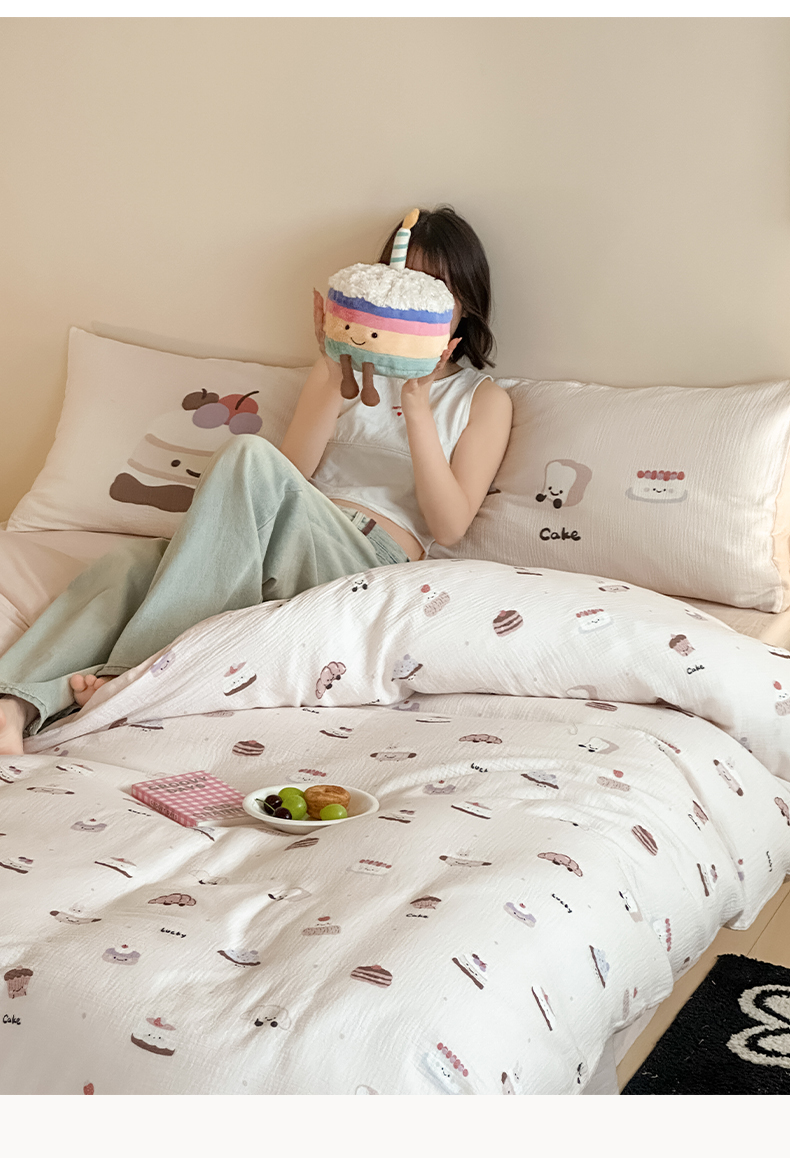 商品名称:卡巴伦家纺 2025新款全棉皱皱纱大版卡通数码印花款四件套二 生日万岁-粉