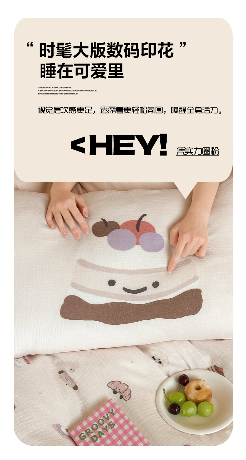 (总)卡巴伦家纺 2025新款全棉皱皱纱大版卡通数码印花款四件套二,酥酥熊-粉,腊肠总裁,生日万岁-粉,生日万岁-蓝,生日万岁-米,酥酥熊-米黄,汪汪掀被-灰,汪汪掀被-绿,小狗没烦恼