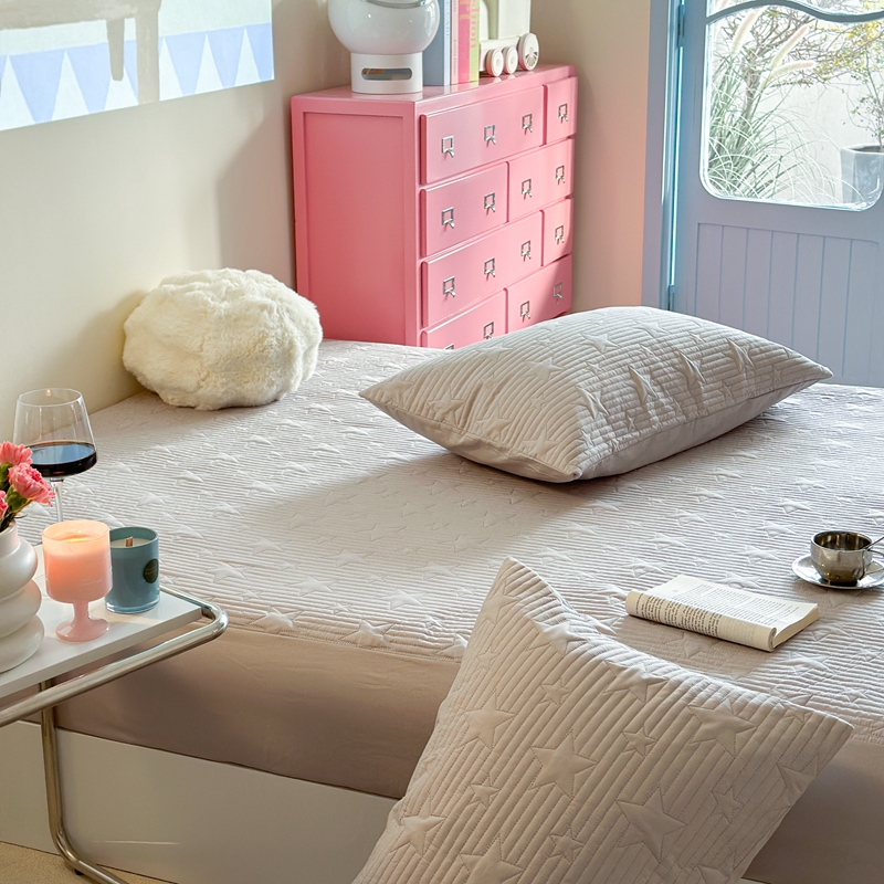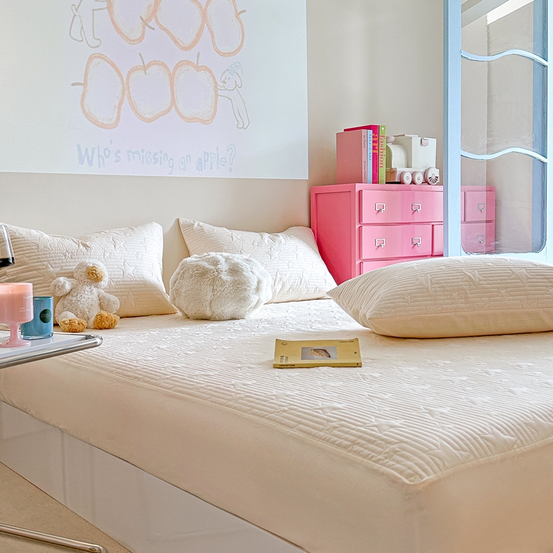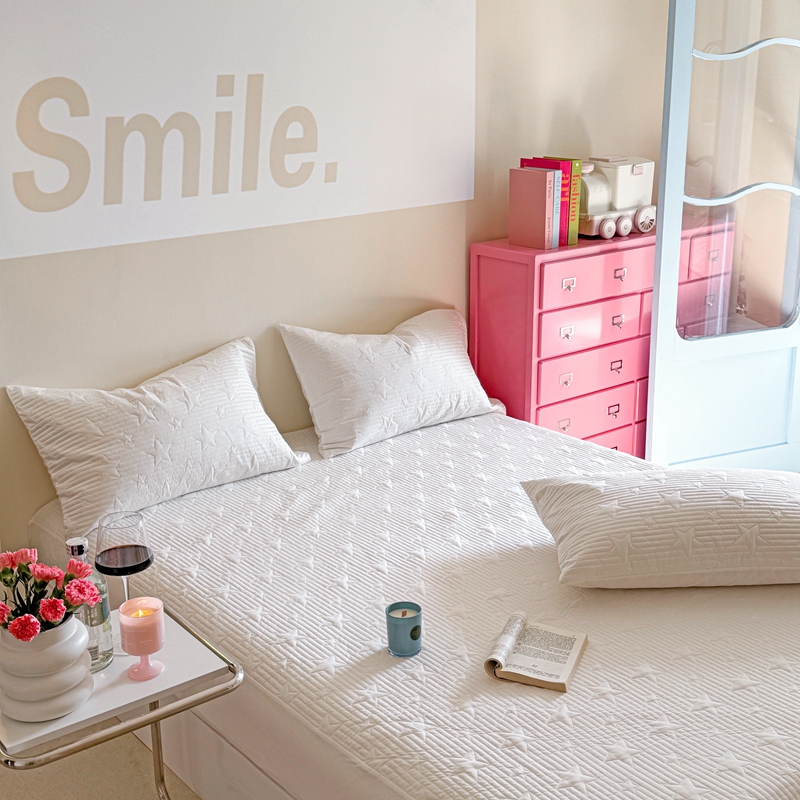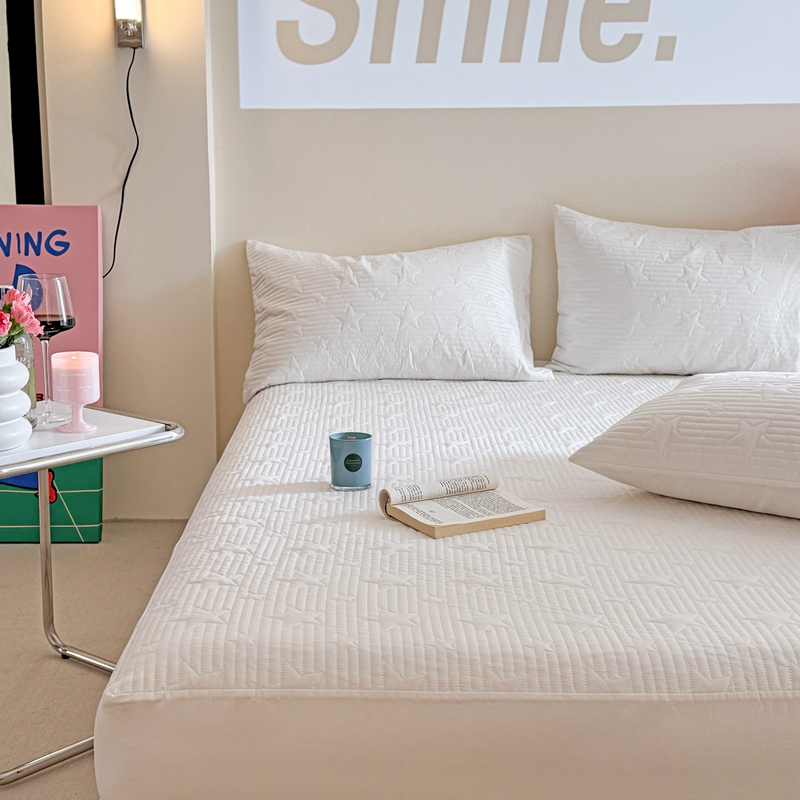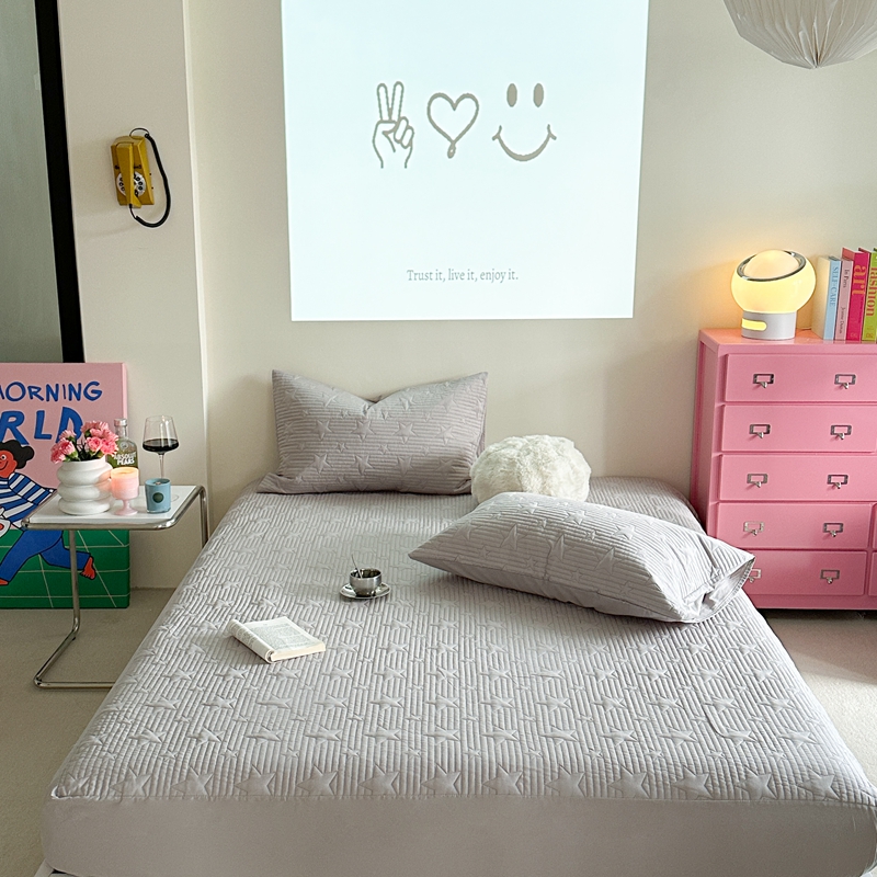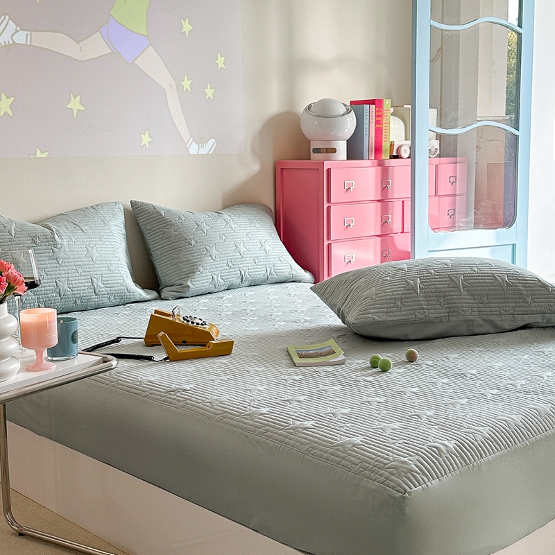 (总)漫调2025新款全棉星星床垫保护套夹棉床笠-繁星,组合图仅供参考,繁星白,繁星粉,繁星灰,繁星咖,繁星绿,繁星杏