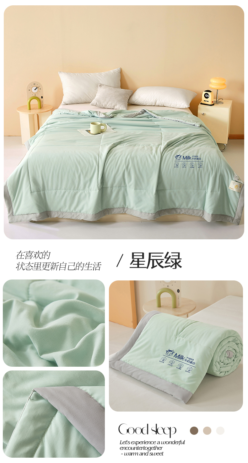 商品名称:猎鹿人家纺 2025新款牛奶蛋白夏被 星辰绿