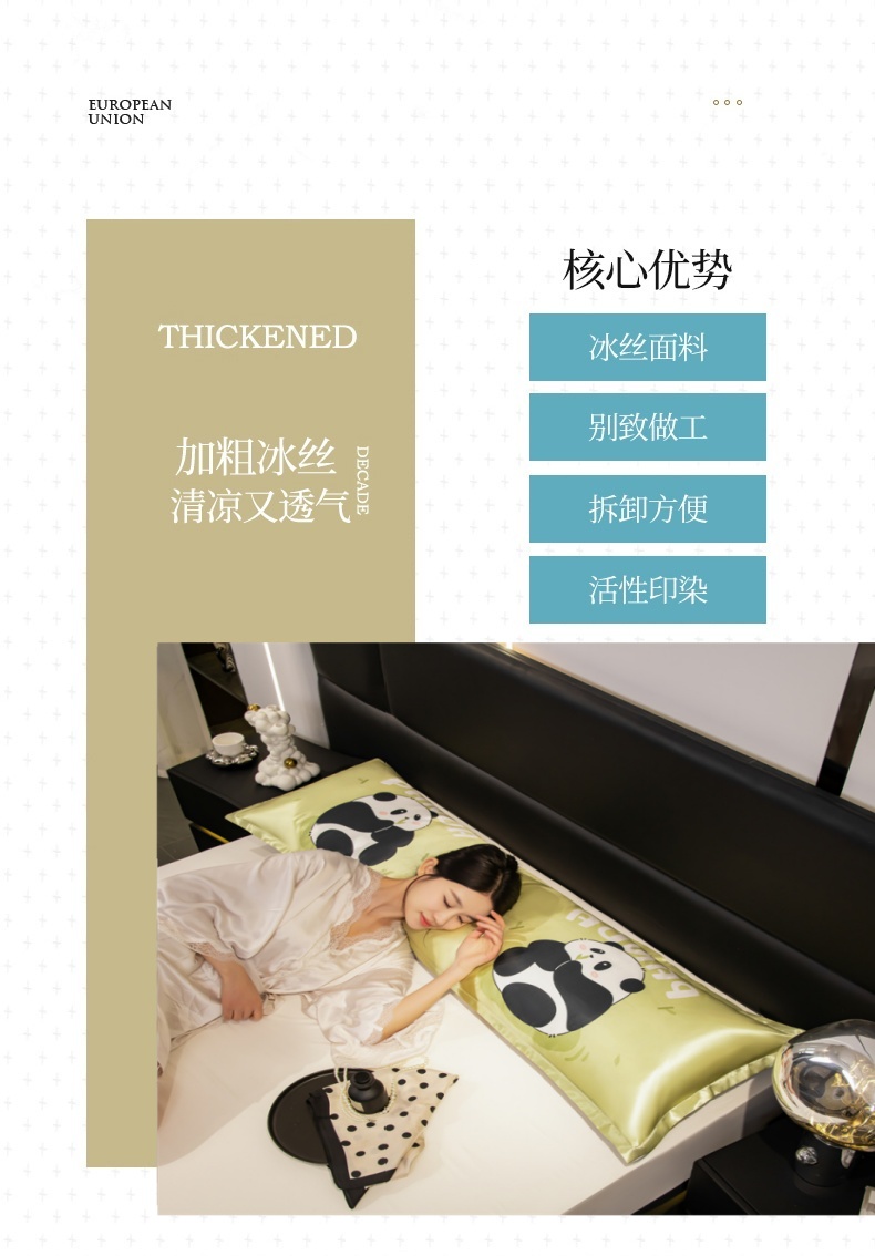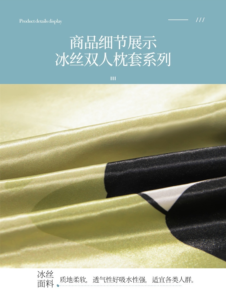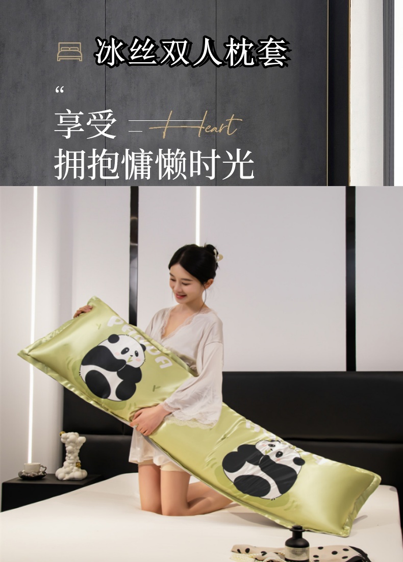 商品名称:梦舒羽 2025新款可水洗冰丝双人枕套凉爽情侣枕头套枕芯套 快乐熊猫