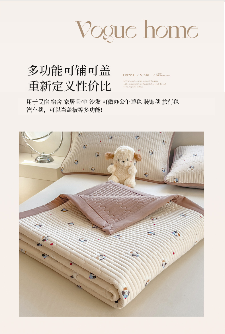 当前位置: 91家纺网 > 商品网购 > 床品套件 > 四件套 > 针织棉四件套 > 慕木家纺 2025新款A类高克重四季款针织棉双层纱多功能床盖可铺可盖 开心小狗
