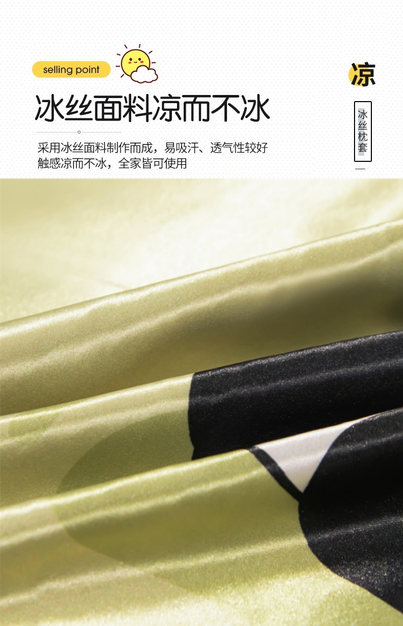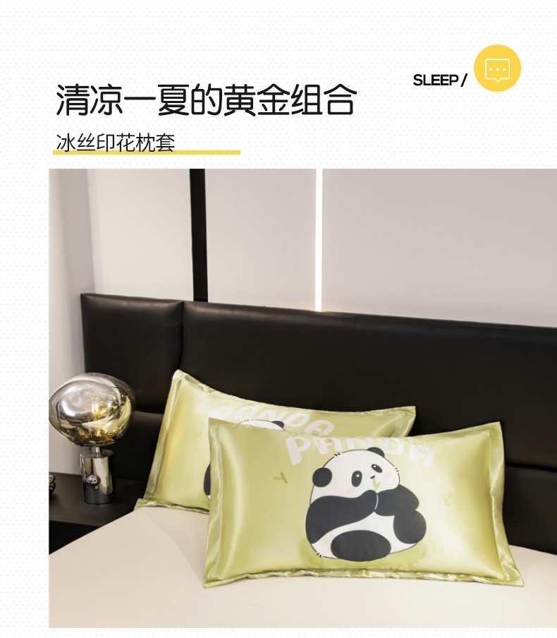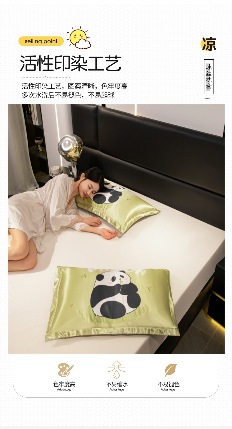商品名称:圣比熊 2025新款可水洗冰丝卡通枕套宿舍48x74cm单人凉爽枕头套 快乐熊猫