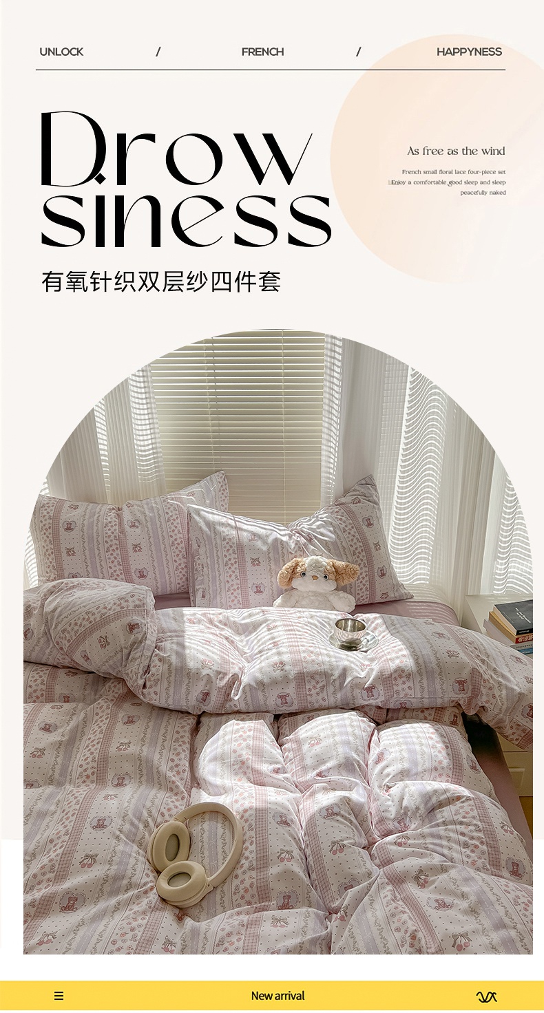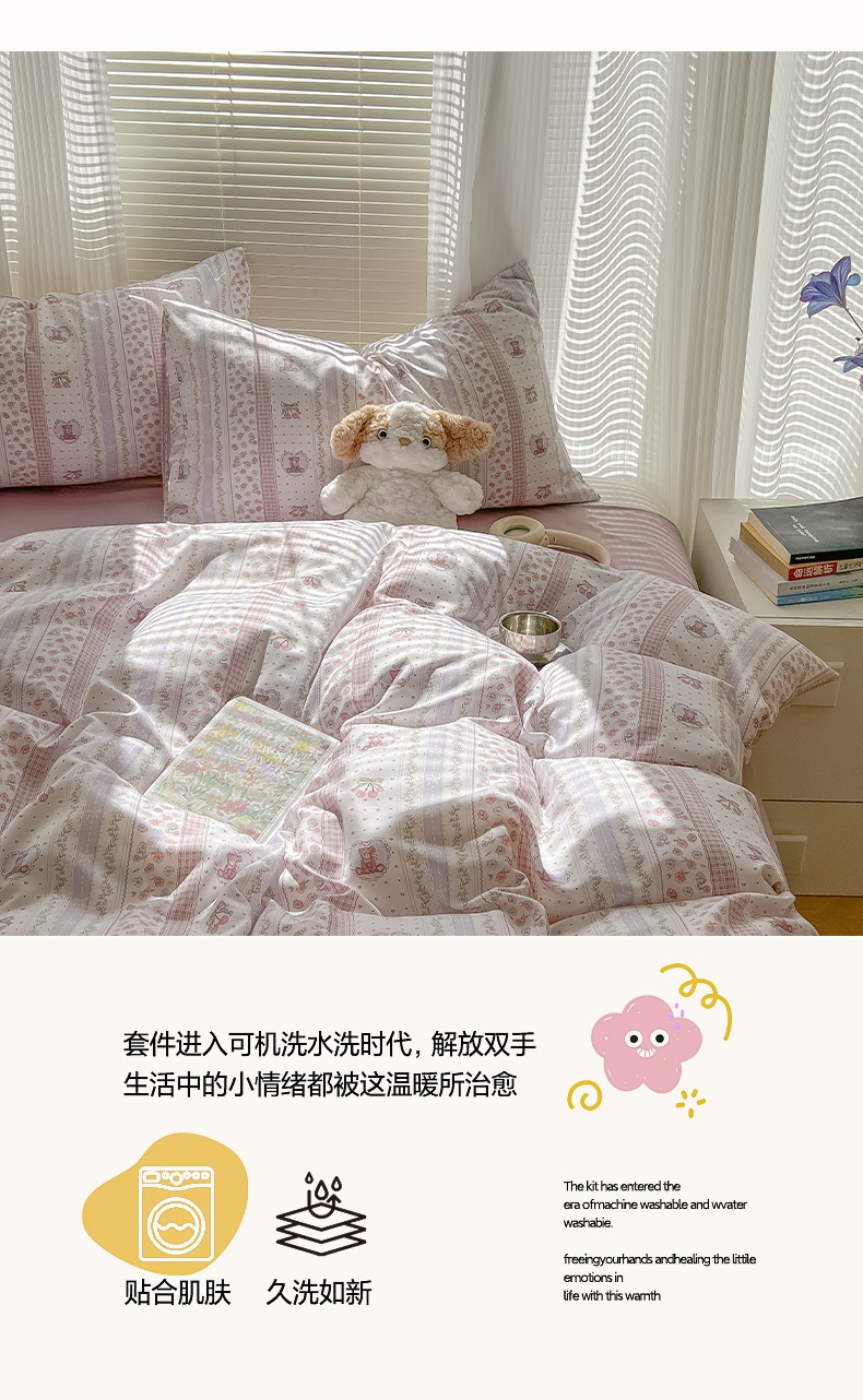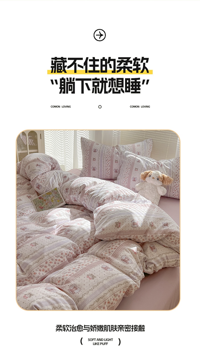 当前位置: 91家纺网 > 商品网购 > 床品套件 > 四件套 > 全棉普通四件套 > 悦织湾家纺 2025新款A类有氧针织棉印花四件套印花轻奢时尚学生宿舍单双人床上用品四件套 A类有氧针织棉枕边童话