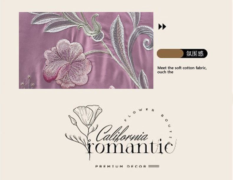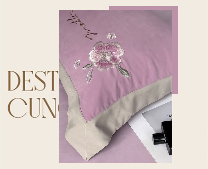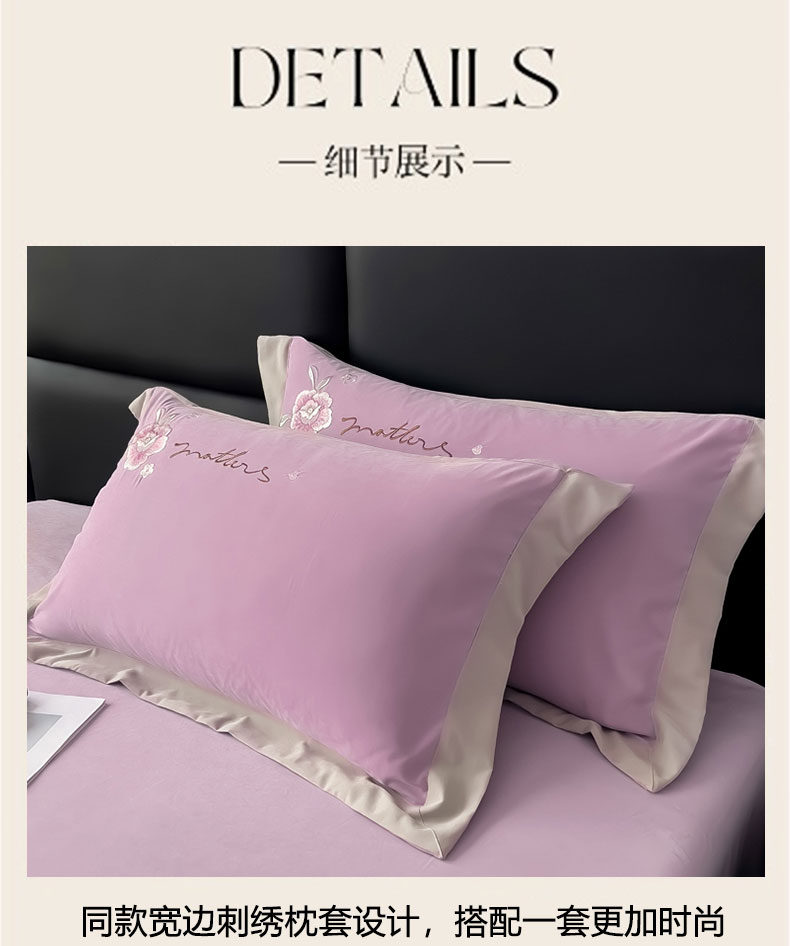 商品名称:曲之慕 2025新品四季款高端刺绣四件套简约可水洗轻奢纯色刺绣四件套 馨花漫舞烟紫