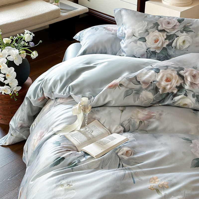 2025春夏新品数码印花60兰精天丝宽边工艺款四件套 倾城-灰
