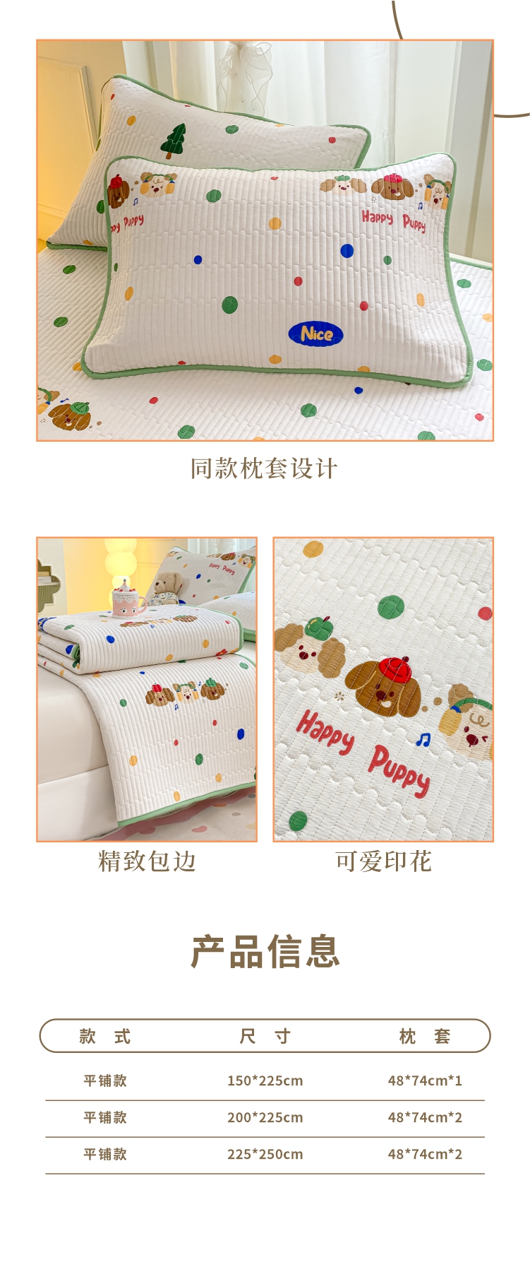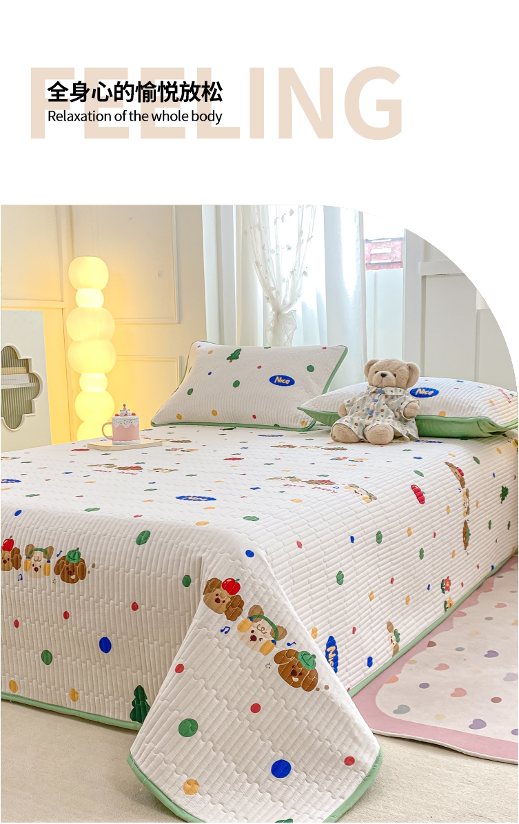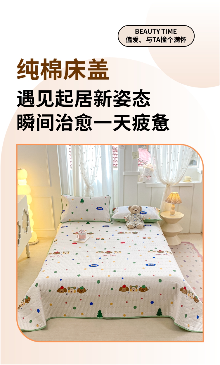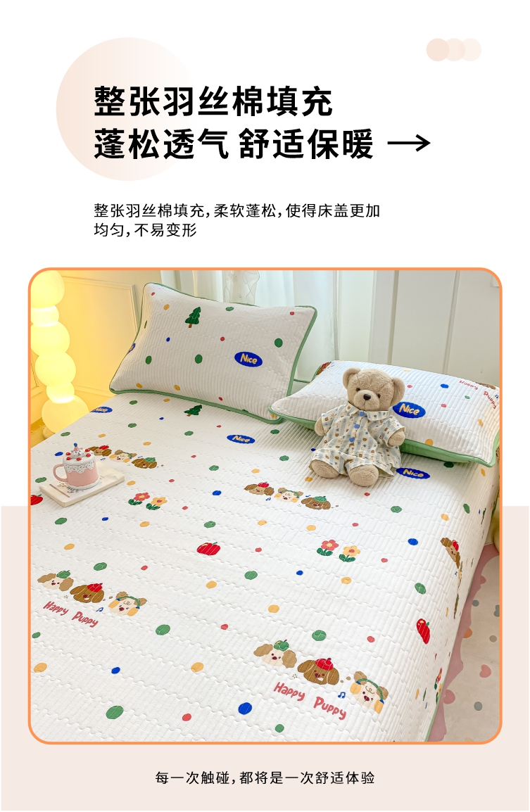 顺顺家纺 2025新款全棉卡通夹棉床盖 狗狗之家