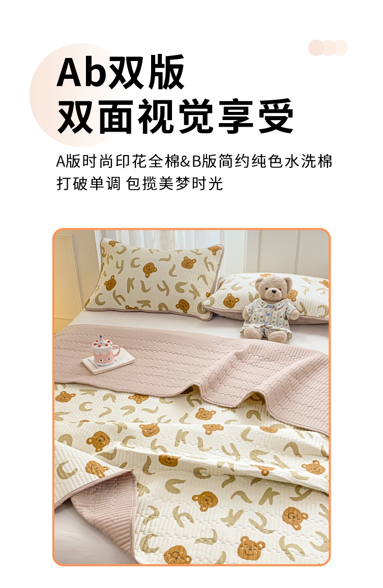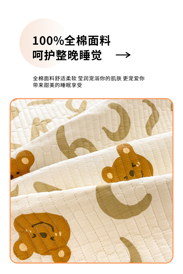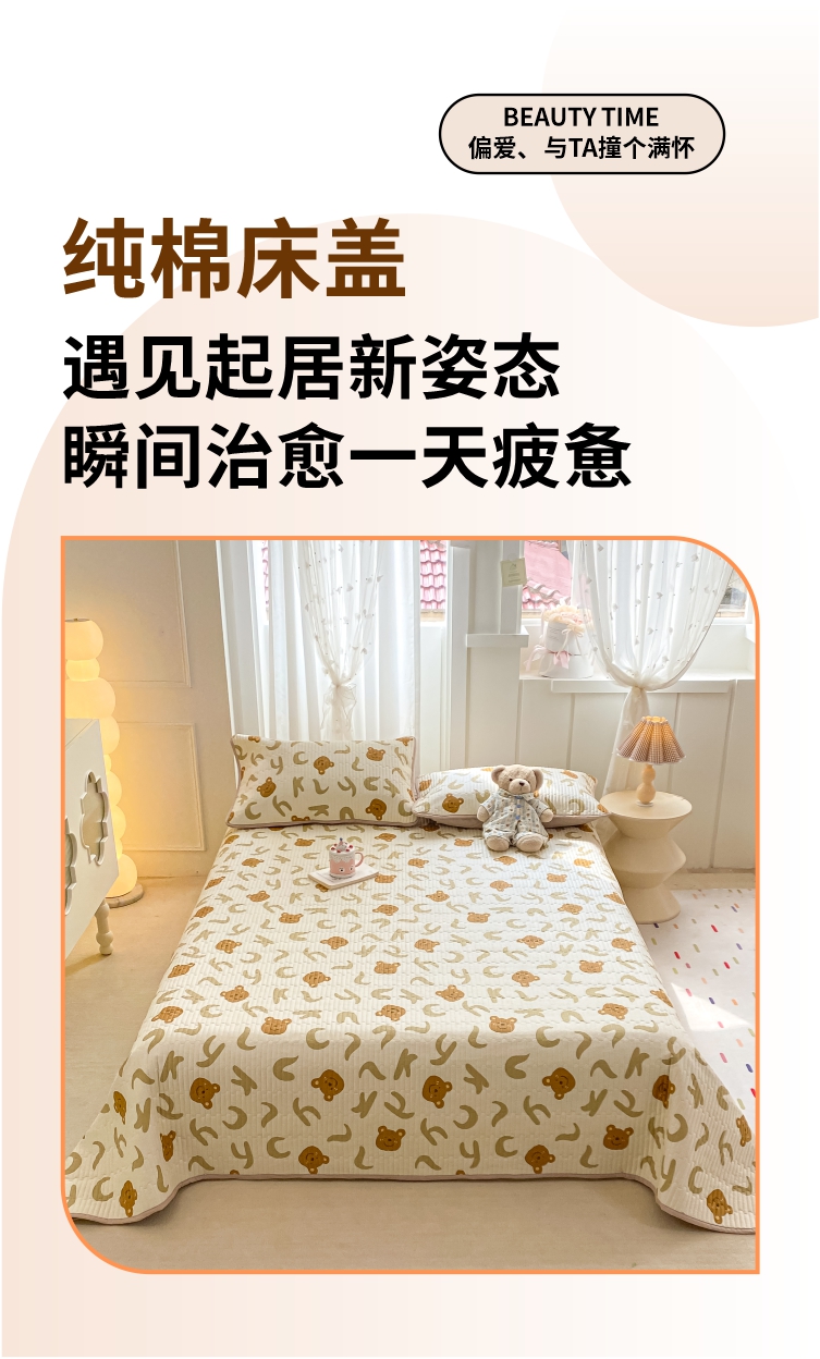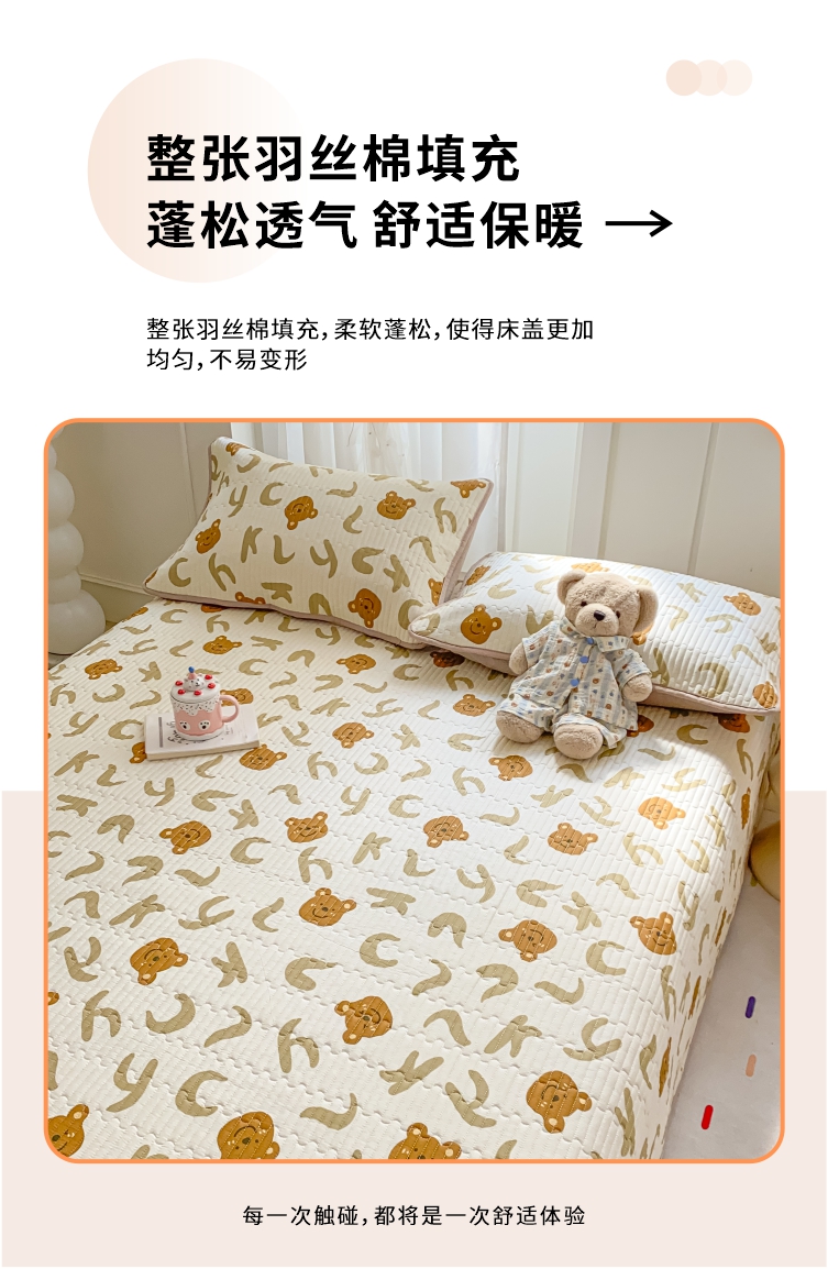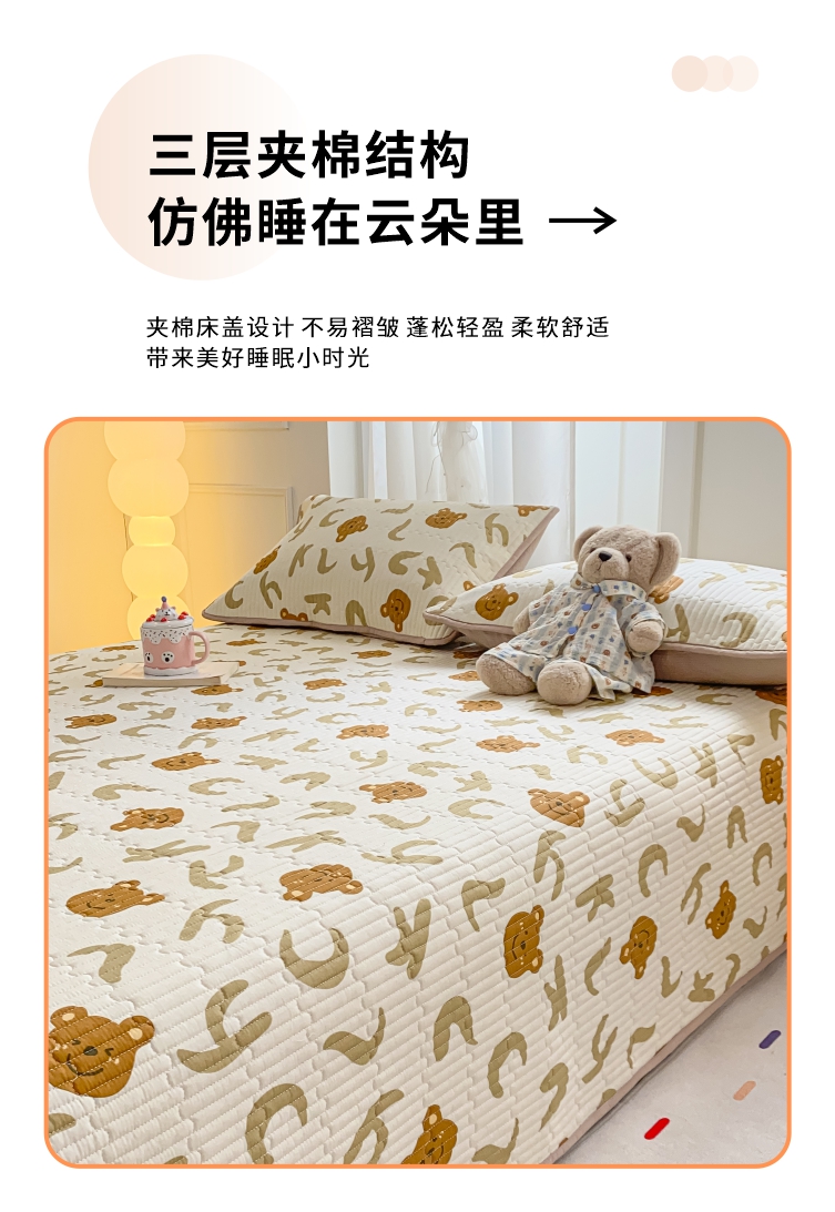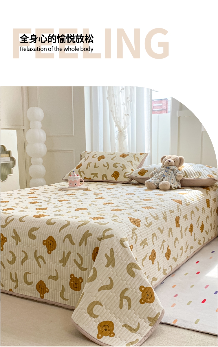 顺顺家纺 2025新款全棉卡通夹棉床盖 熊熊降临