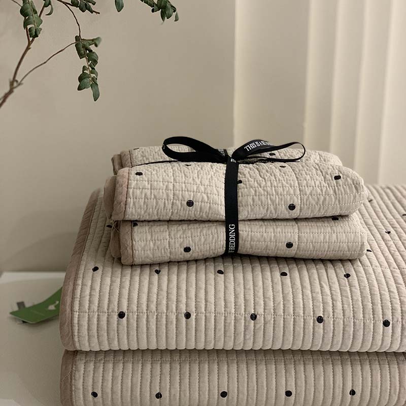 汇庭 2025新款全棉床盖三件套-实拍 巧克力波点