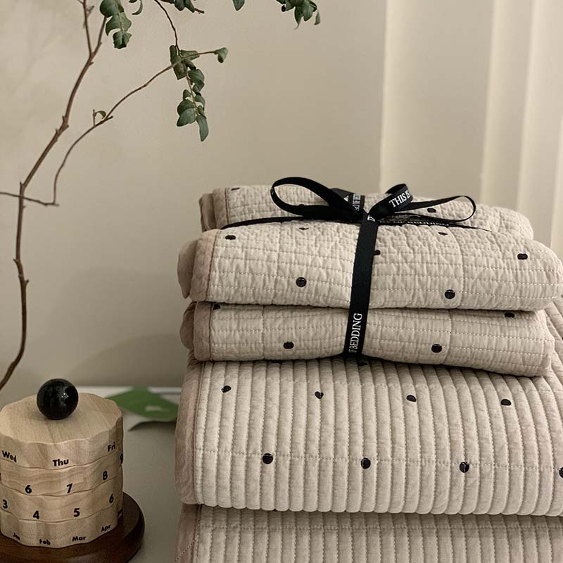 (总)汇庭 2025秋冬新款麻三月床盖三件套系列,黑点点,花絮粉,锦绣,梨花雨,青舍,三月,苏梨士,夜曲,组合