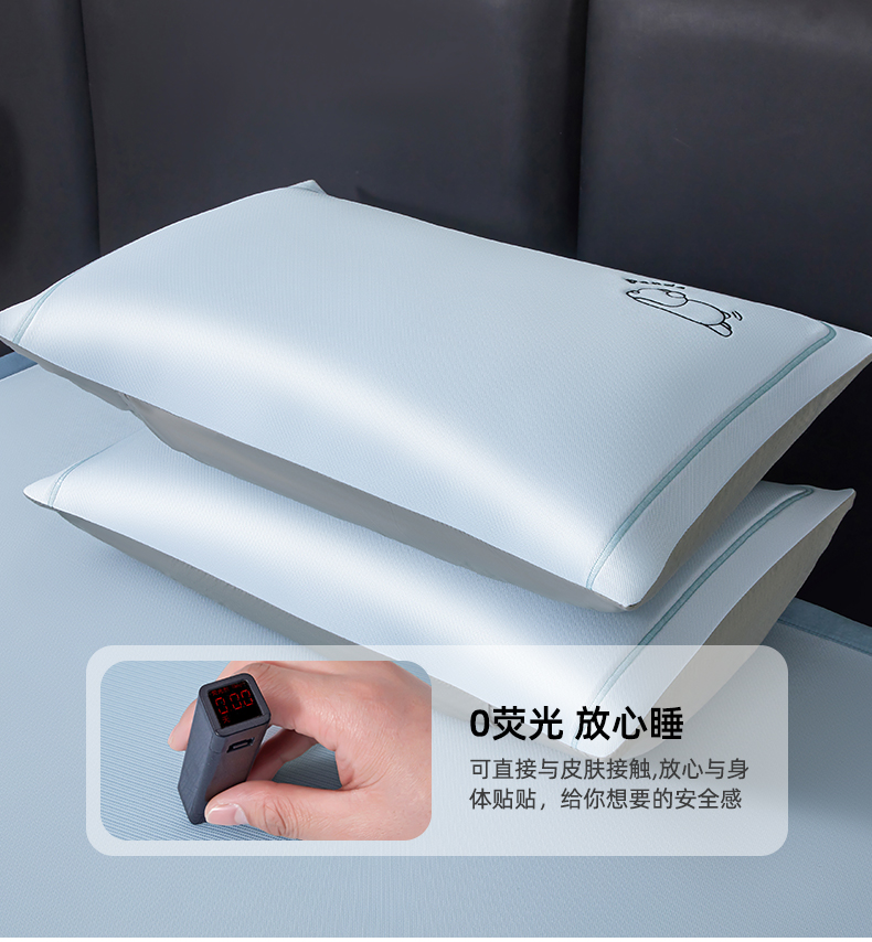 (总)全季家居 2023新款纯色凉感丝刺绣凉席,天蓝,灰色,粉色,绿色,草绿