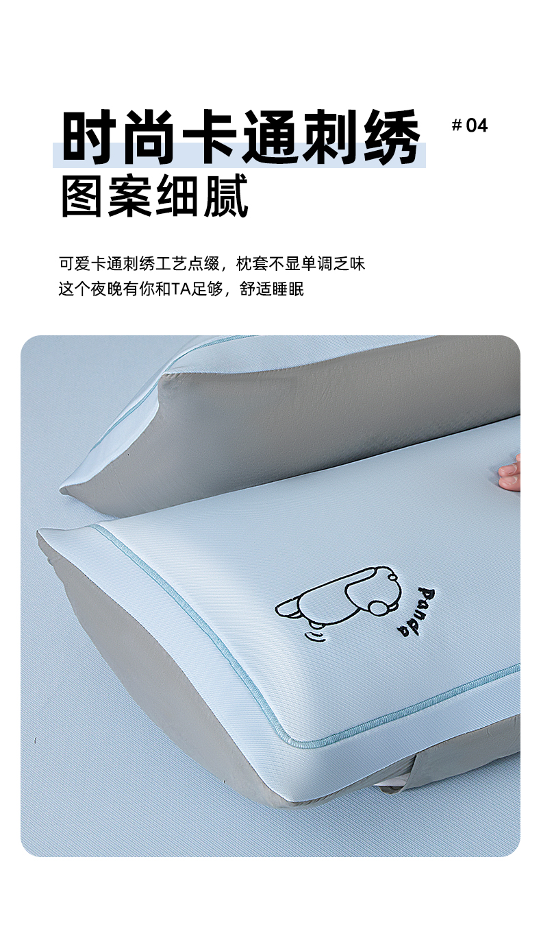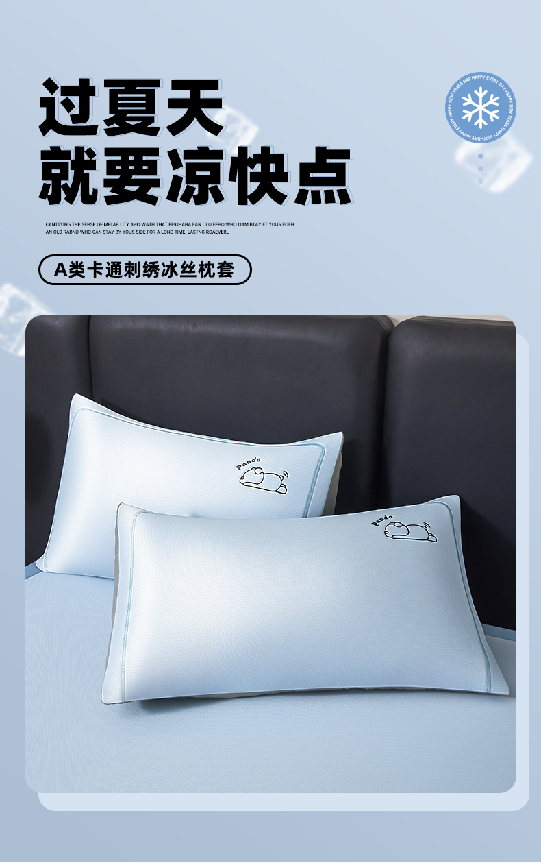 商品名称:全季家居 2025新款全季家居A类碳光萌趣熊猫刺绣枕套 天蓝