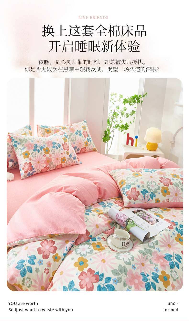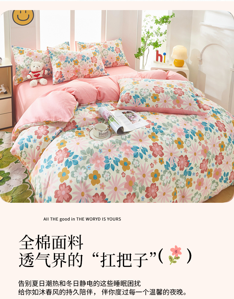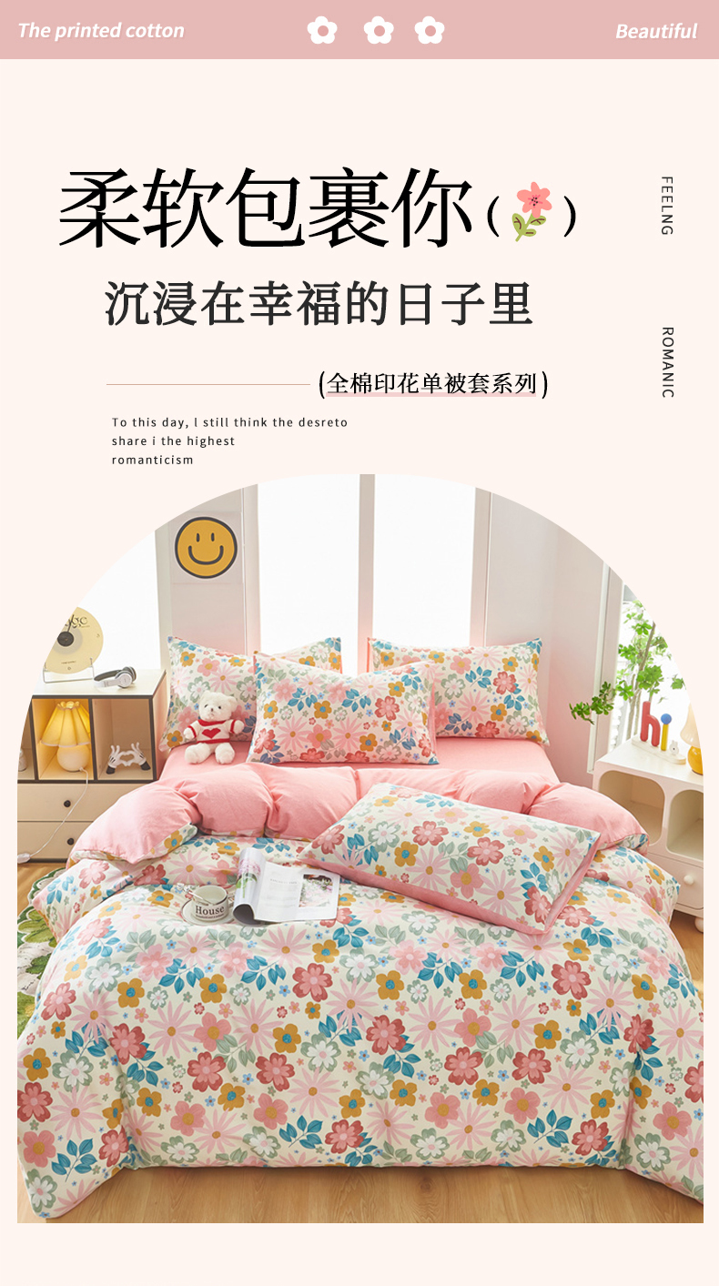 • 91家纺网 家纺一手货源 找家纺 黛妮雅 2025新款AB版全棉印花单被套床单枕套 米兰春天