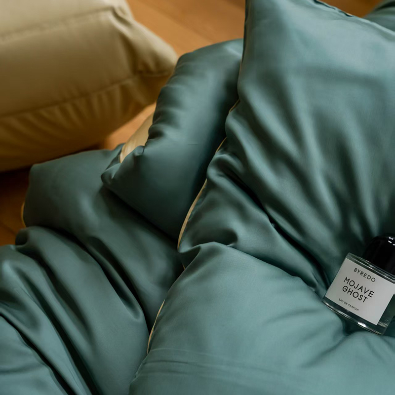 当前位置: 91家纺网 > 商品网购 > 床品套件 > 四件套 > 莱赛尔四件套 > 未来家居 2025新款60S兰精天丝纯色四件套 天青色-香槟金