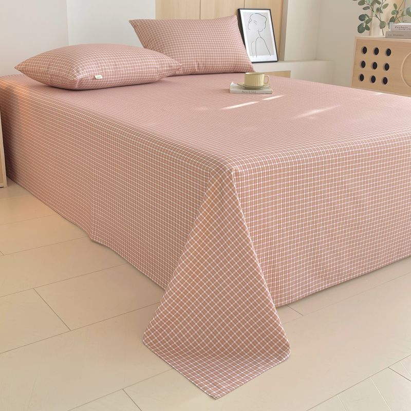 萌飞 2025新款全棉纯棉老粗布席子凉席条格床单 塞约-粉