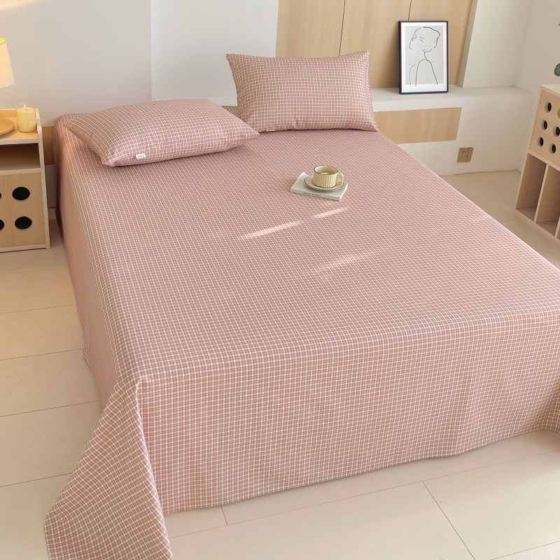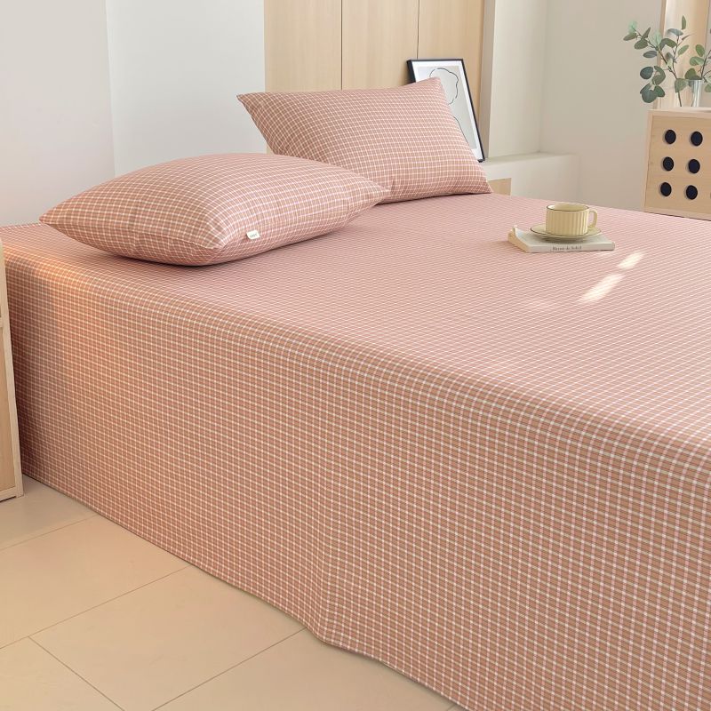 • 91家纺网 家纺一手货源 找家纺 萌飞 2025新款全棉纯棉老粗布席子凉席条格床单 塞约-粉