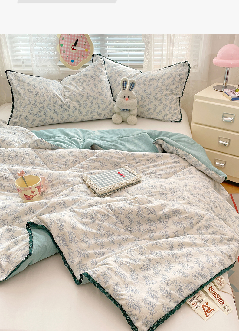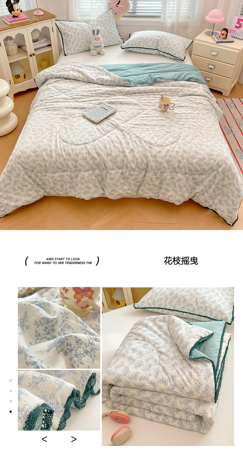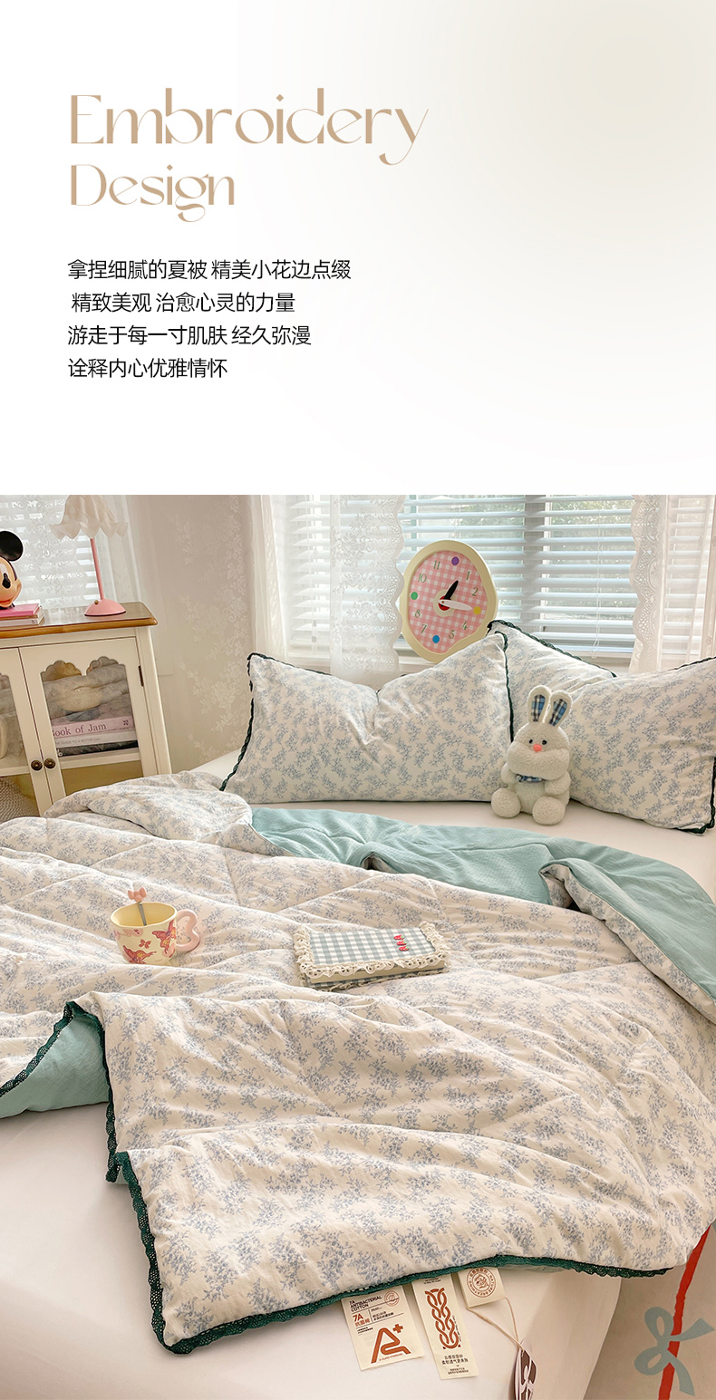 商品名称:优承佳生活馆 2025新款云感双层纱浪漫小花边抗菌夏被子被芯 花枝摇曳