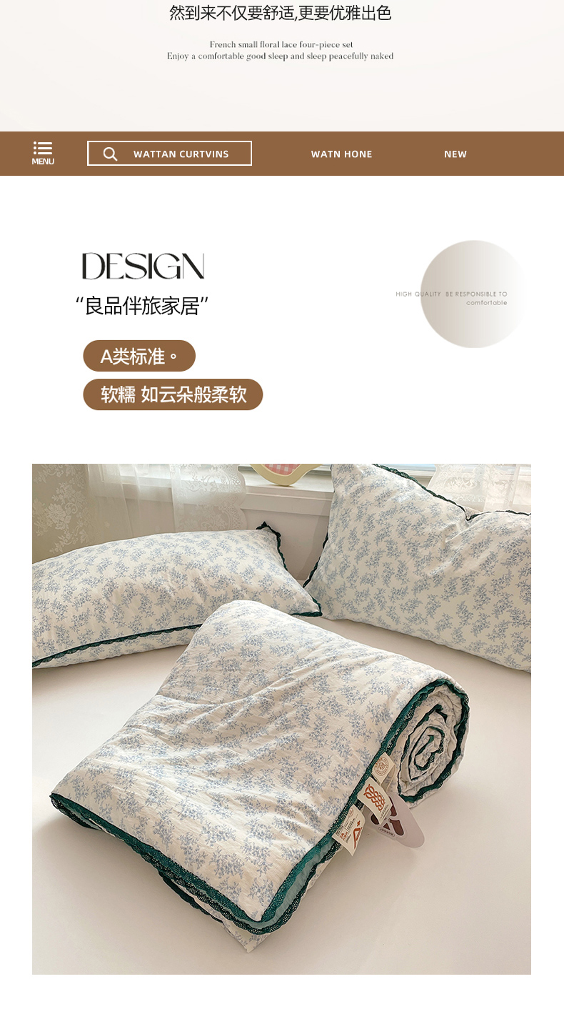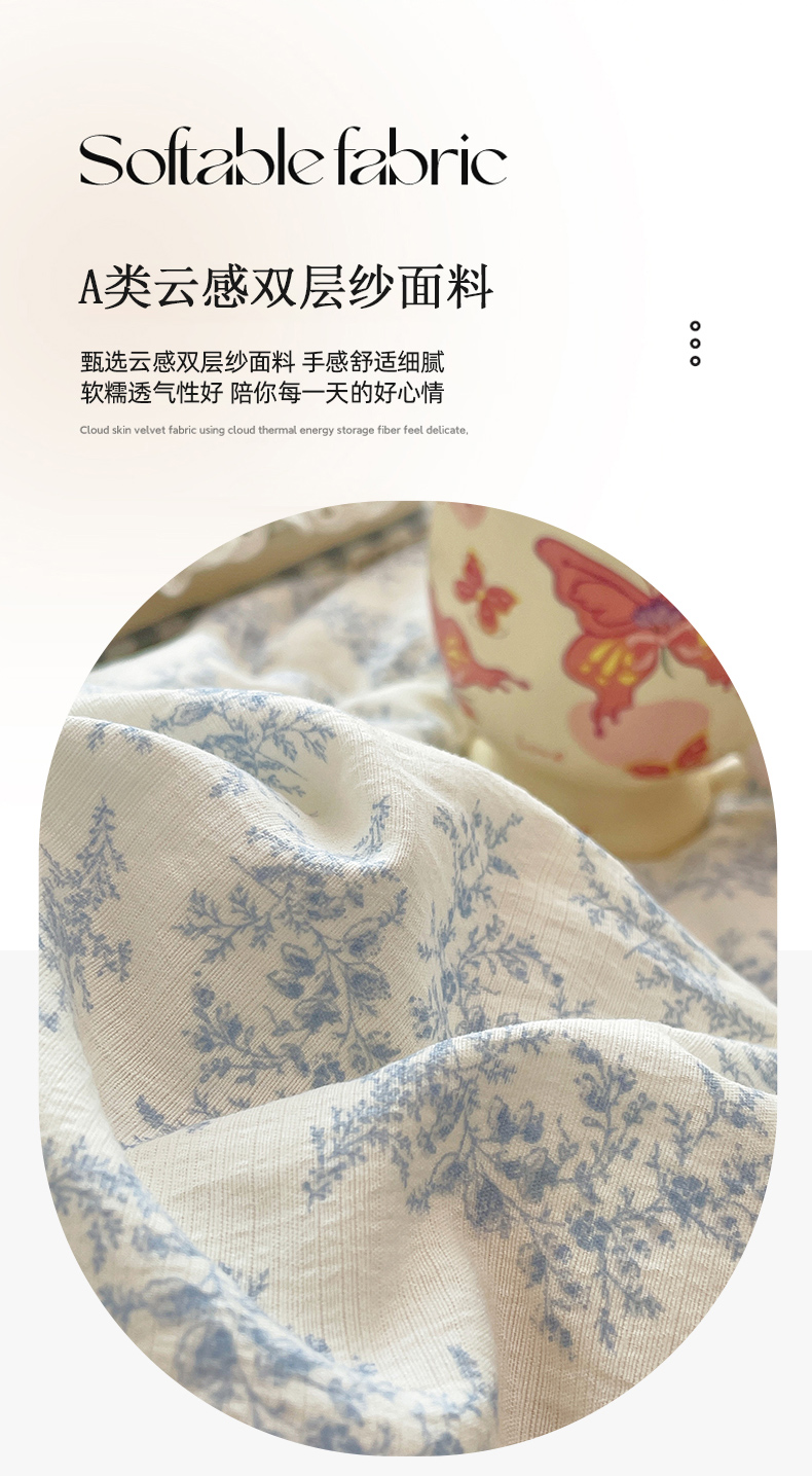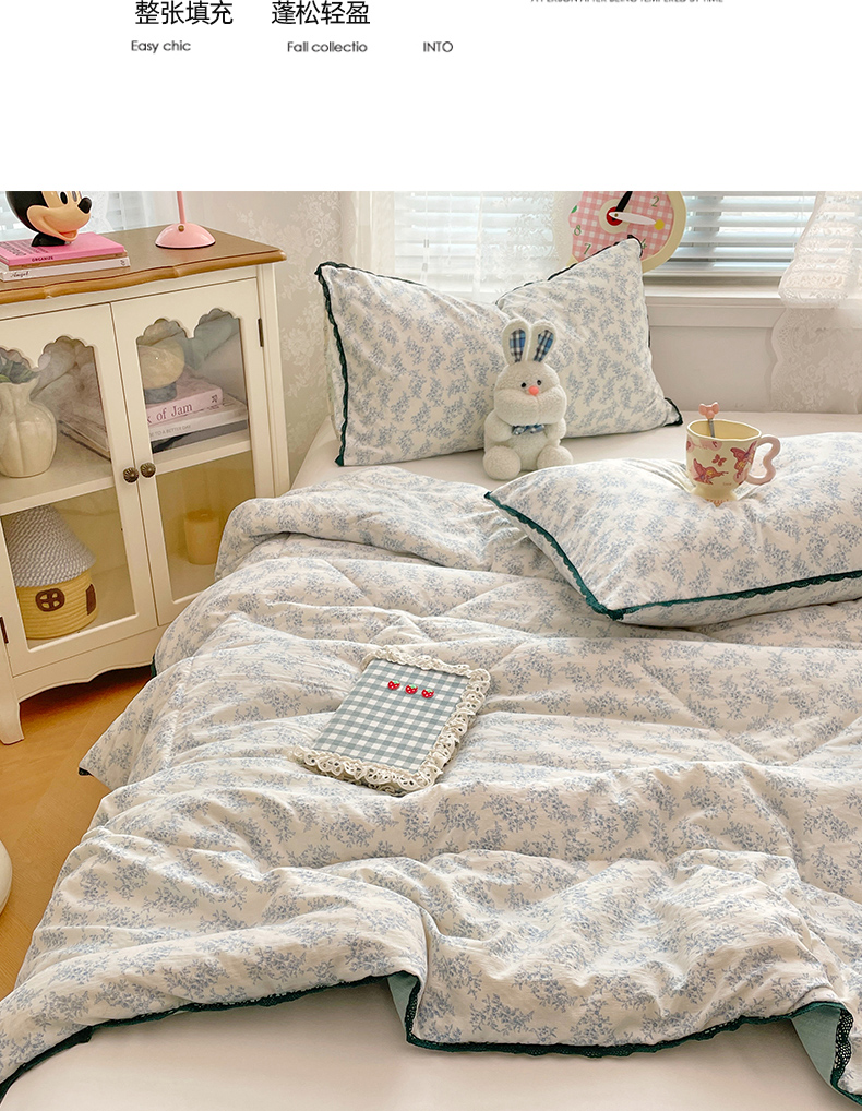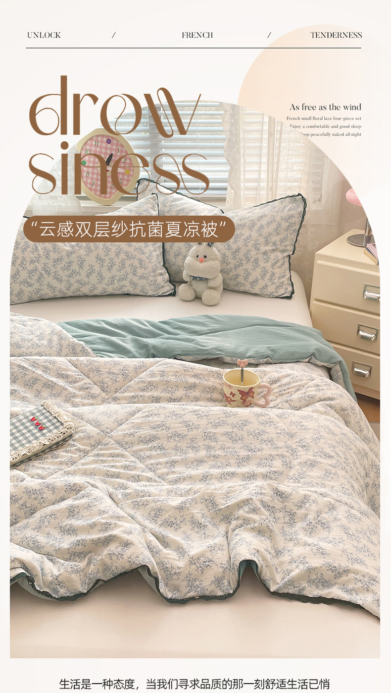 商品名称:优承佳生活馆 2025新款云感双层纱浪漫小花边抗菌夏被子被芯 花枝摇曳