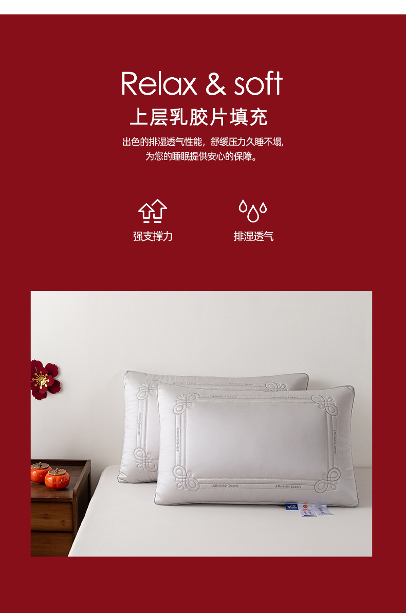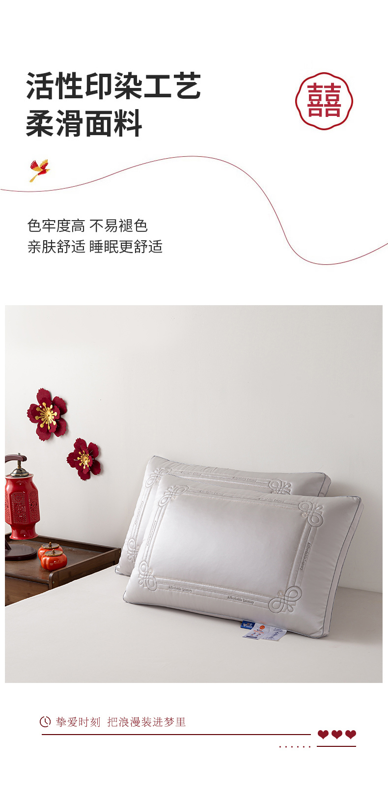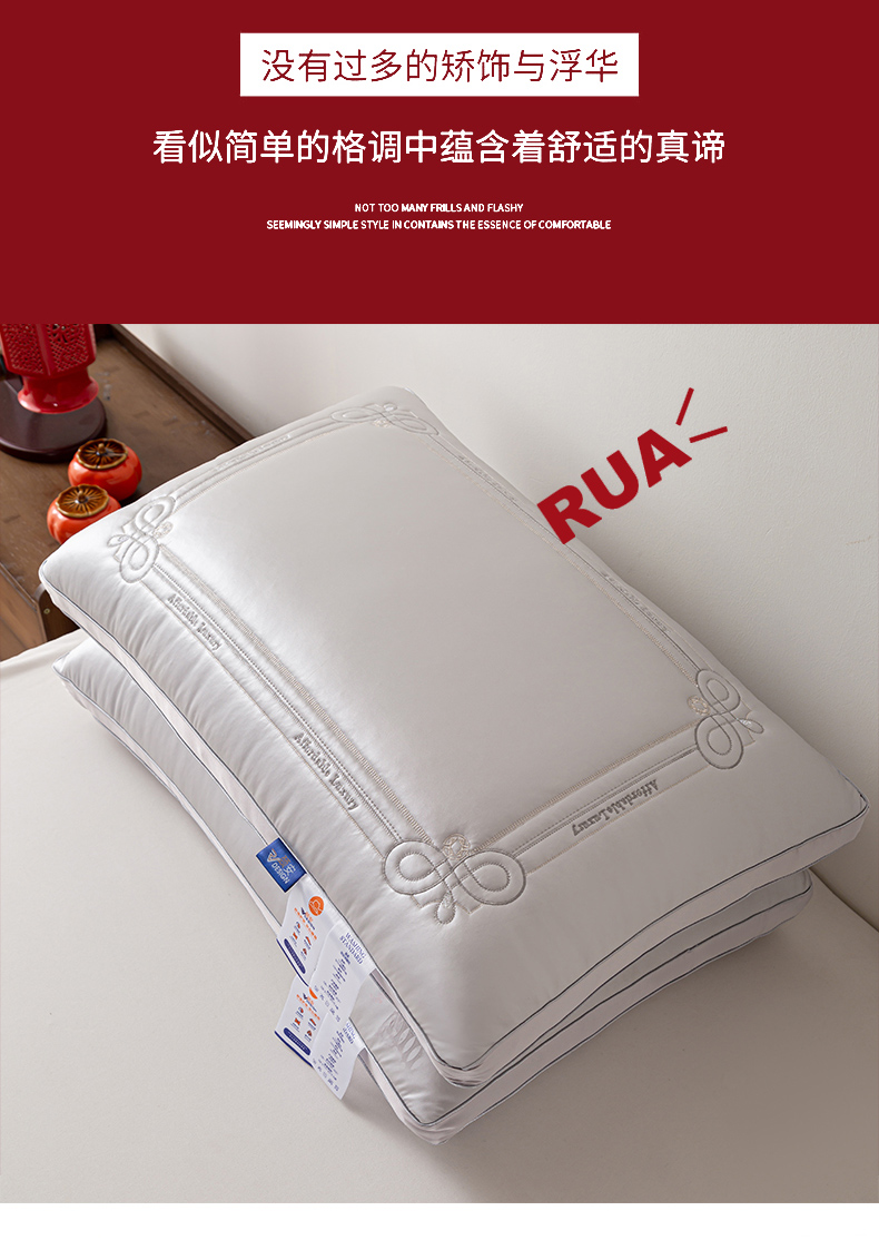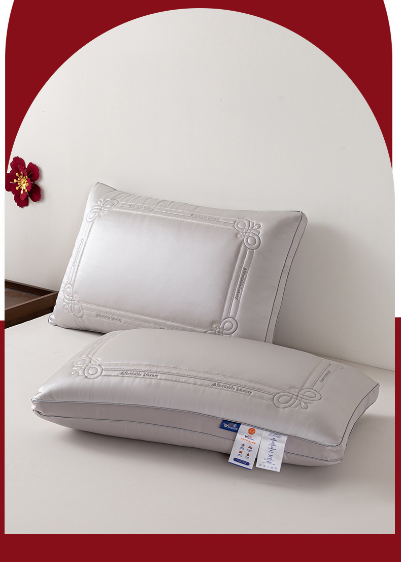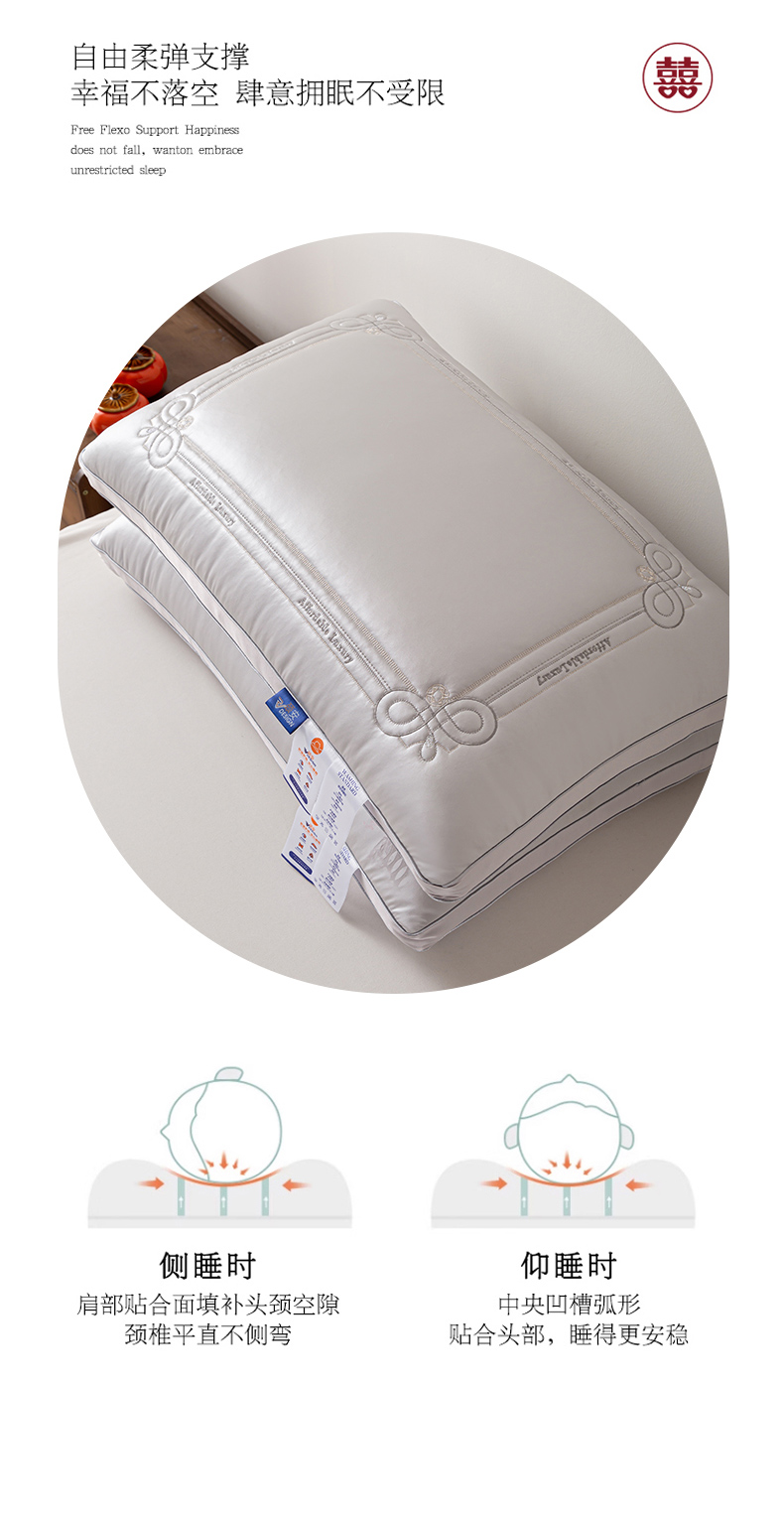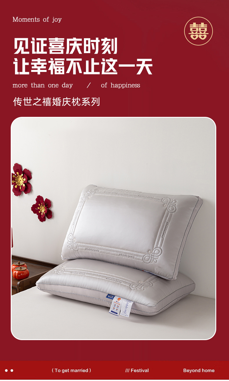 当前位置: 91家纺网 > 商品网购 > 枕头/枕芯/保健枕/颈椎枕 > 普通枕芯 > 贤内助家纺 2025新款传世之禧婚庆羽丝枕头枕芯保健枕护肩枕-大红 银灰