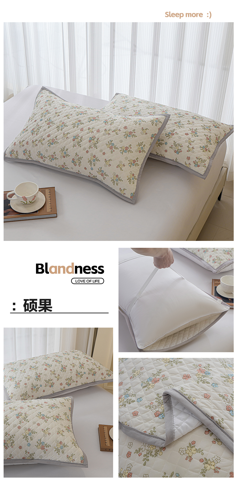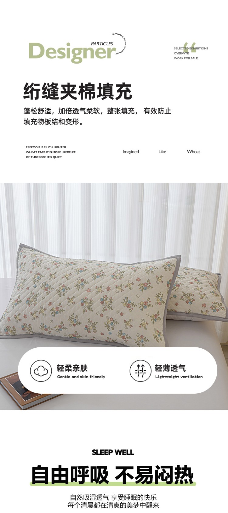 (总)美宜家 2026新款全棉枕头套高密色织水洗加棉绗缝高端纯色枕套,极简山灰,极简米其,极简兰灰,极简仔兰