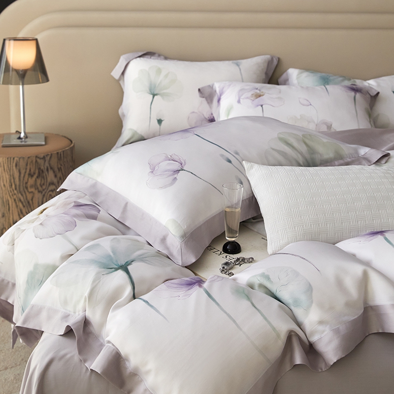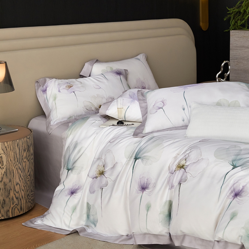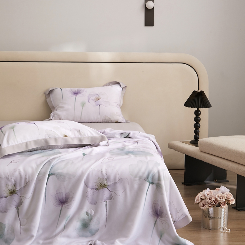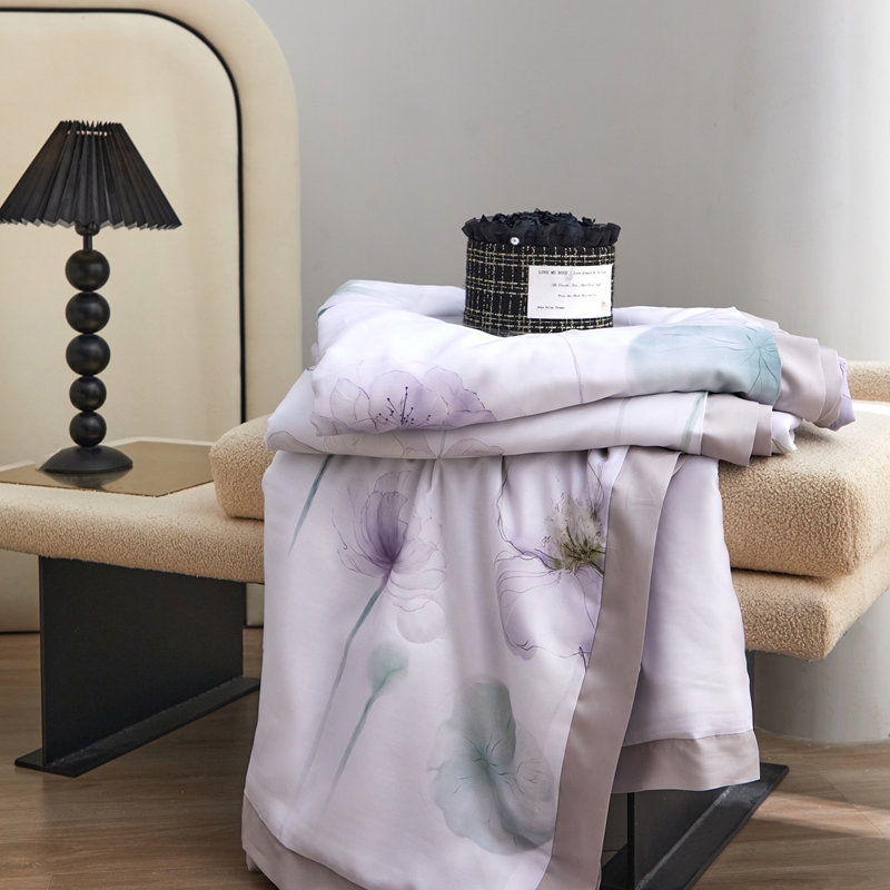 薏思家纺 2025新款50支莱赛尔天丝数码印花夏被四件套(礼盒包装) 花想容