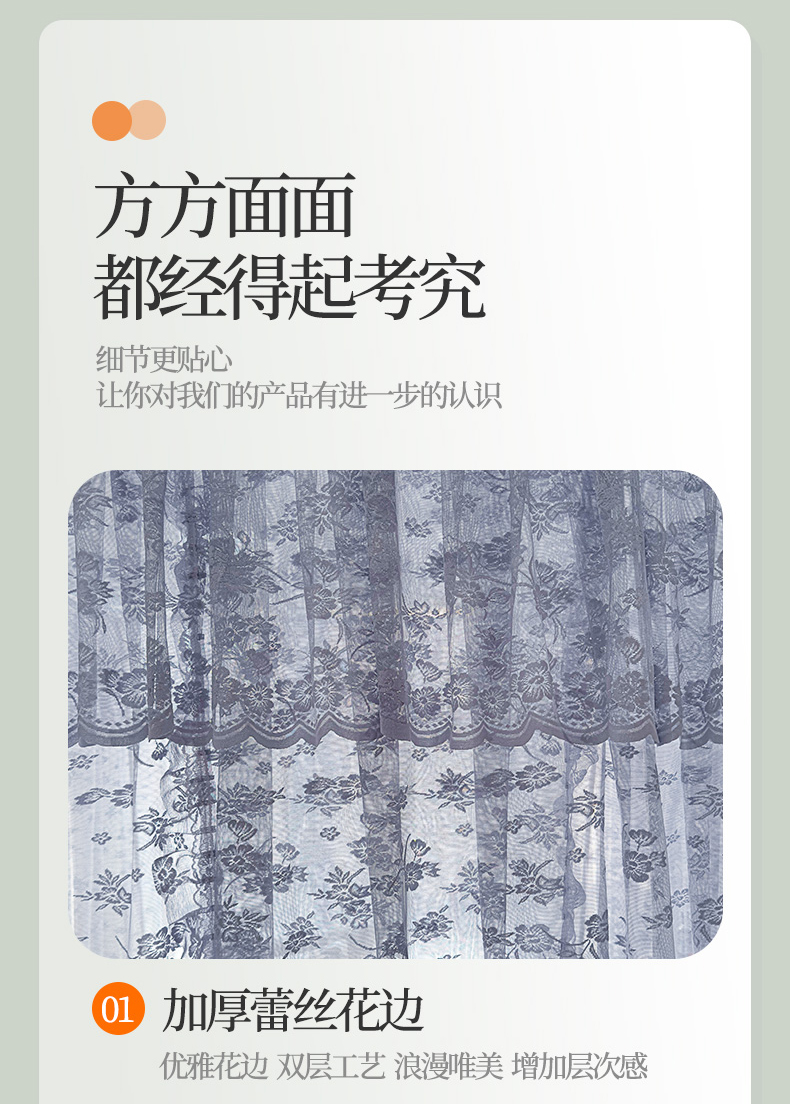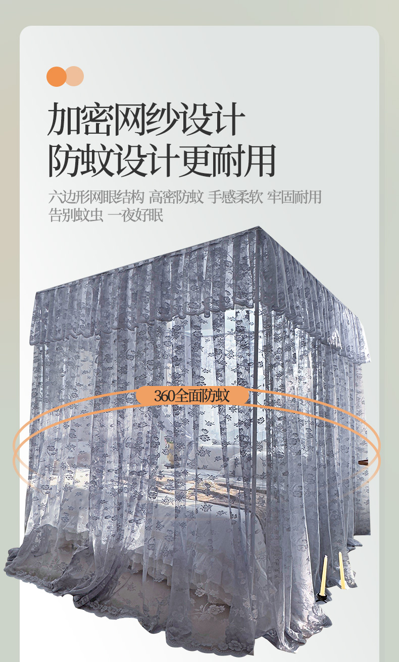 (总)夏彩 2025新款蕾丝U型防摔坐床蚊帐-88630,绿雅灰,藕玉色,香槟色